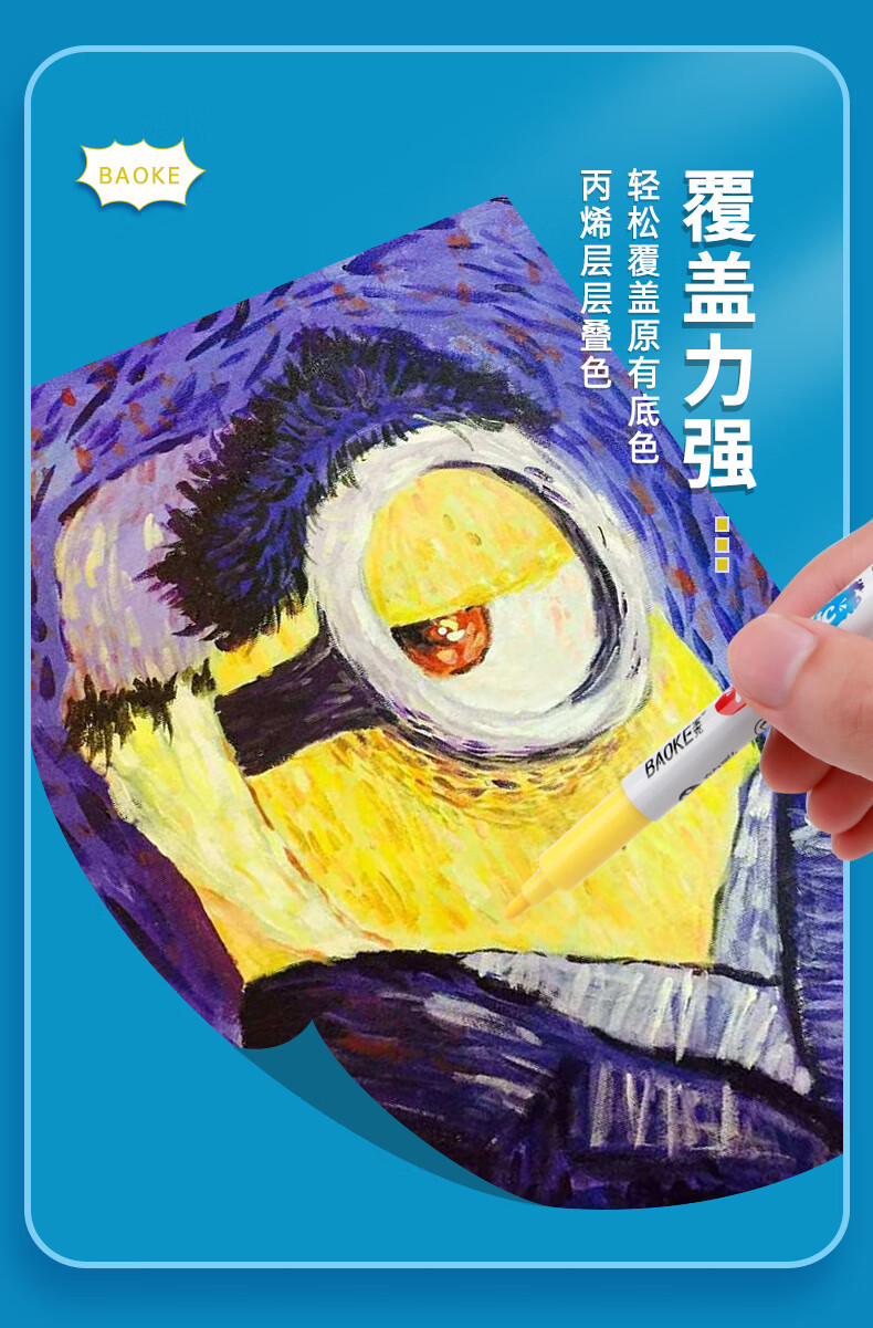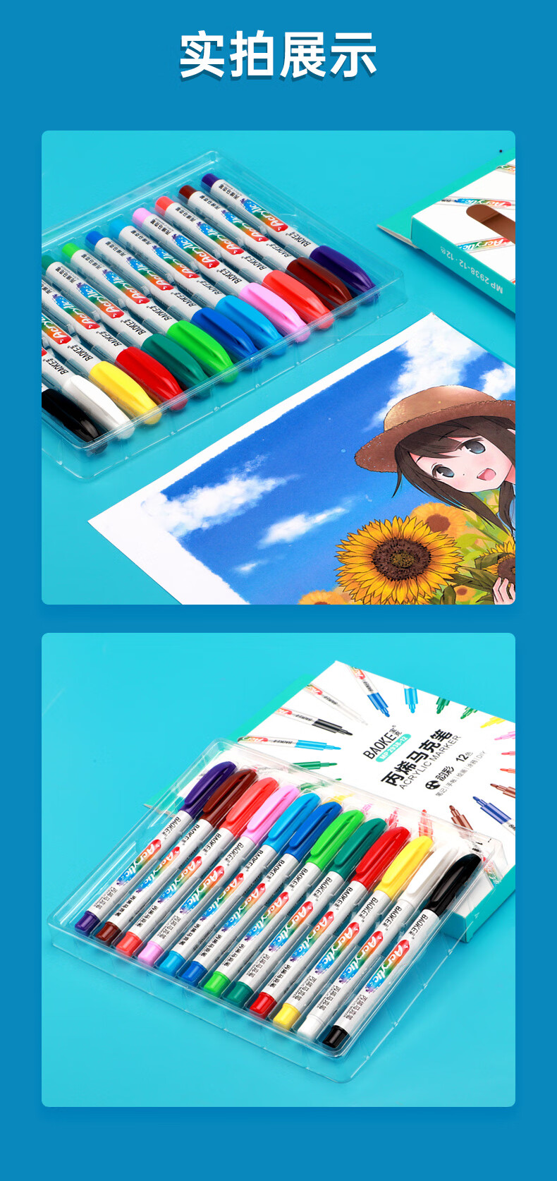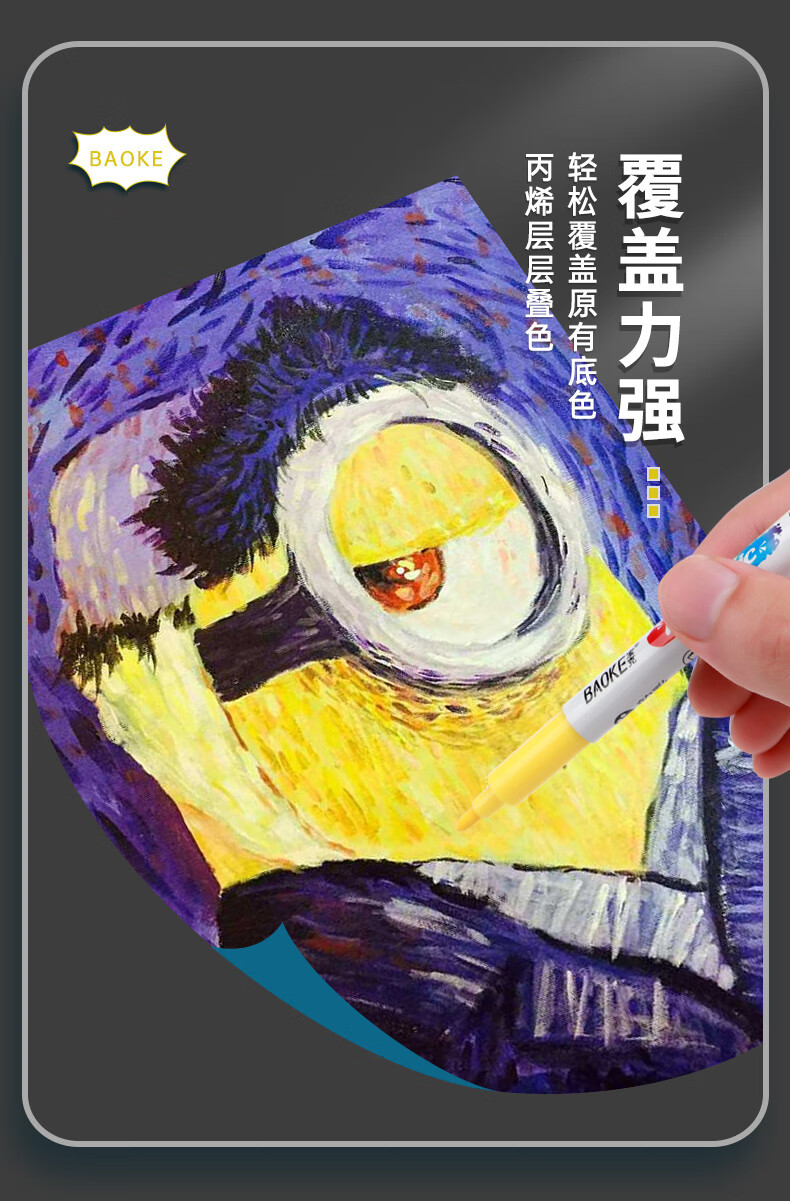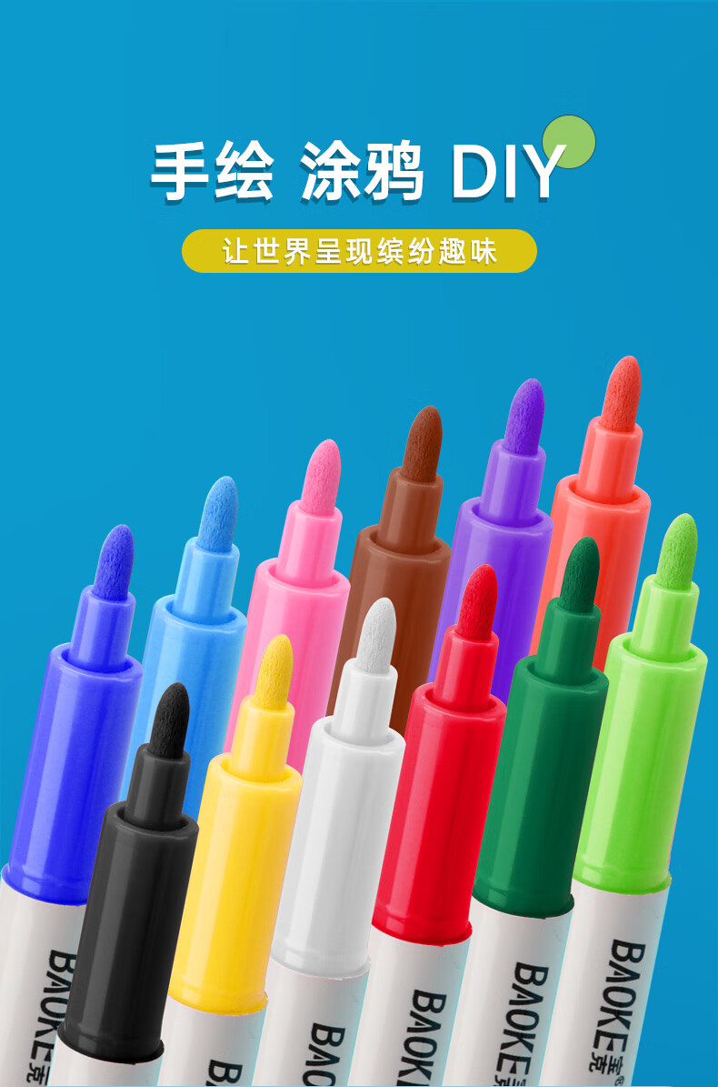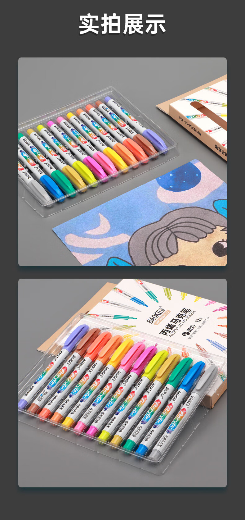 宝克(BAOKE)丙烯双头马克笔 覆盖力强不易褪色安全无异味 儿童小学生美术画画专用涂鸦MP2955 双头软绘爆闪闪绘马克笔-24色 MP2976