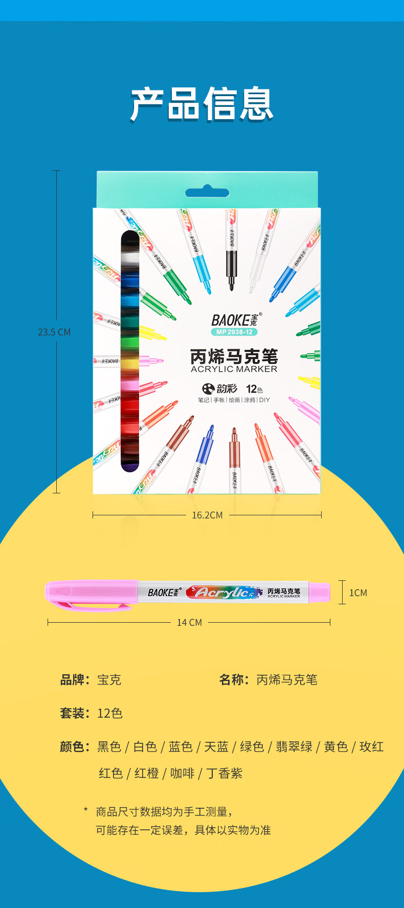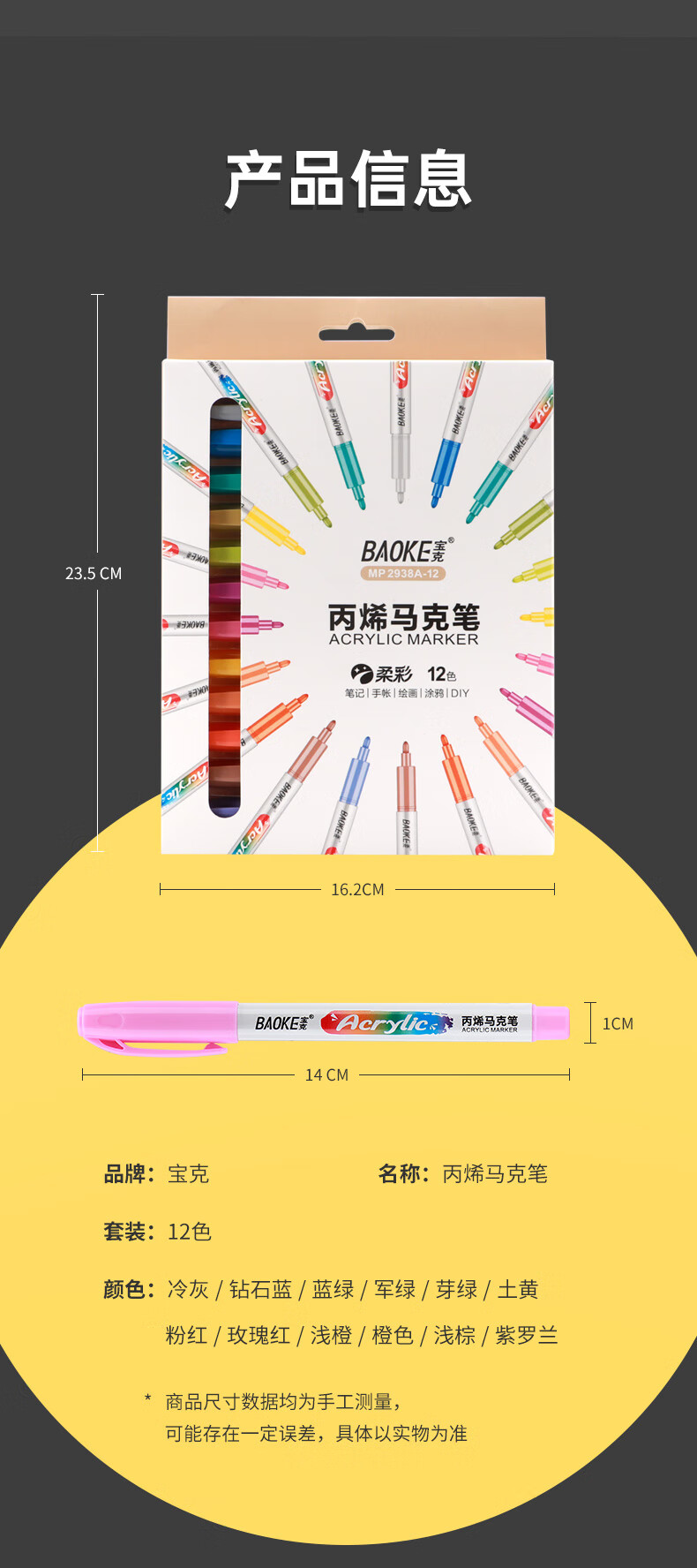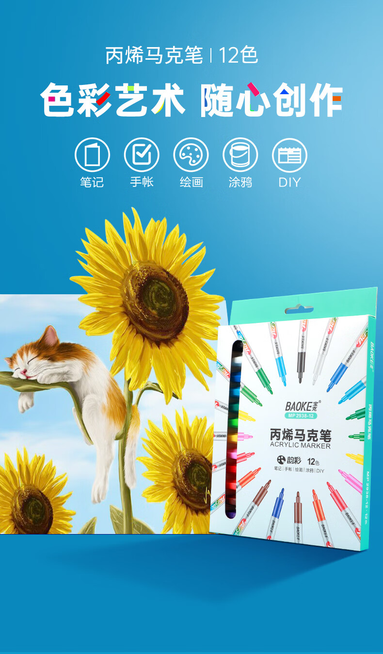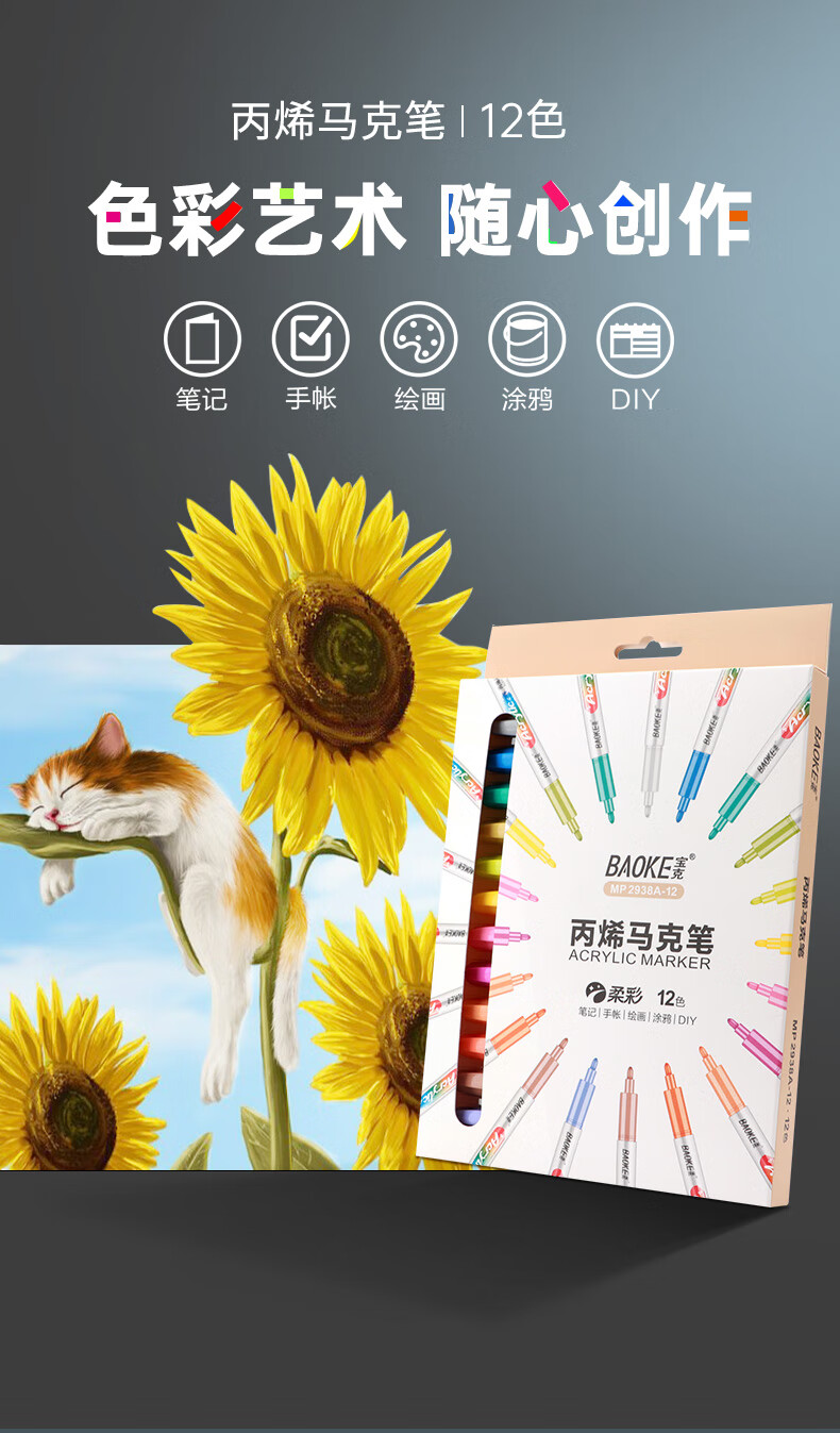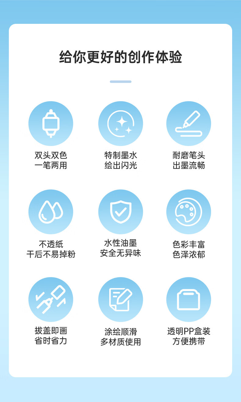 宝克(BAOKE)丙烯双头马克笔 覆盖力强不易褪色安全无异味 儿童小学生美术画画专用涂鸦MP2955 双头软绘爆闪闪绘马克笔-24色 MP2976
