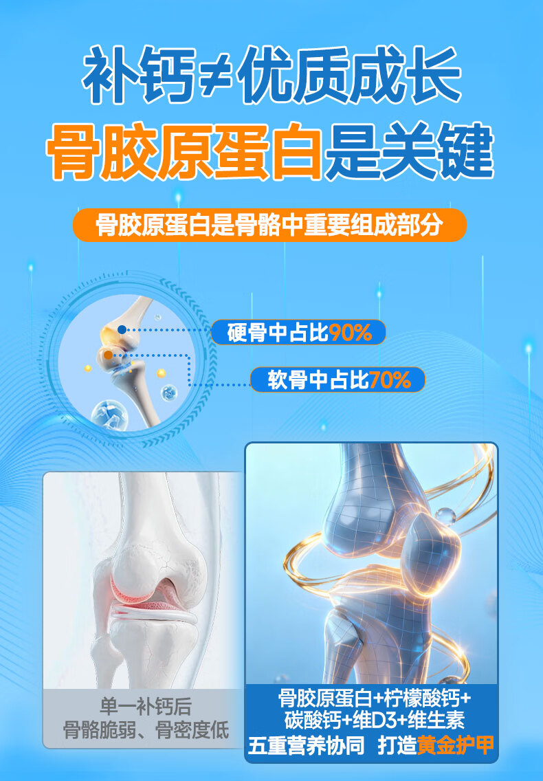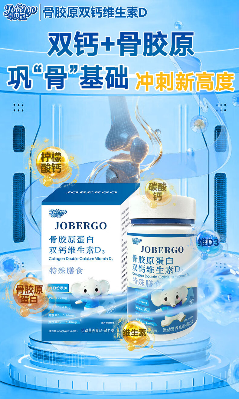 卓贝冠骨胶原蛋白氨基丁酸γ青少年生长素补钙6-18岁补钙助长高 【体验装】 60片*1盒