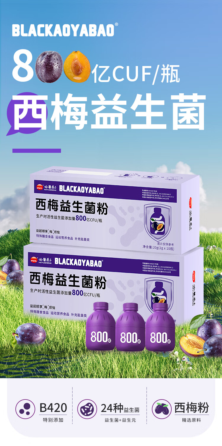 哈醫集正西梅益生菌粉 10瓶/盒 膳食纤维 B420益生菌 西梅益生菌 2g*30瓶