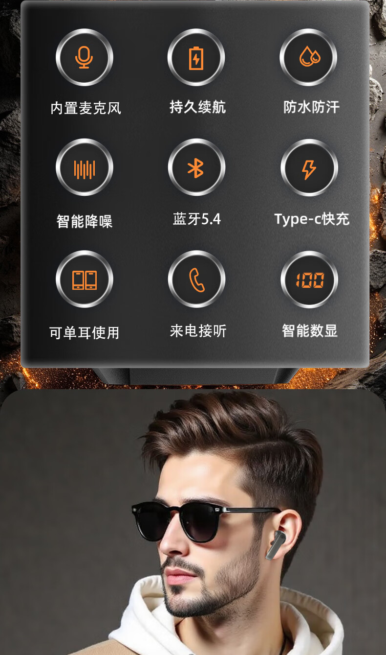 鑫羽音【甄选直发】2025新款蓝牙耳机真无线不入耳运动跑步开车骑行适用苹果华为小米 黑色【HiFi无损环绕音质+LED数显+超长续航】