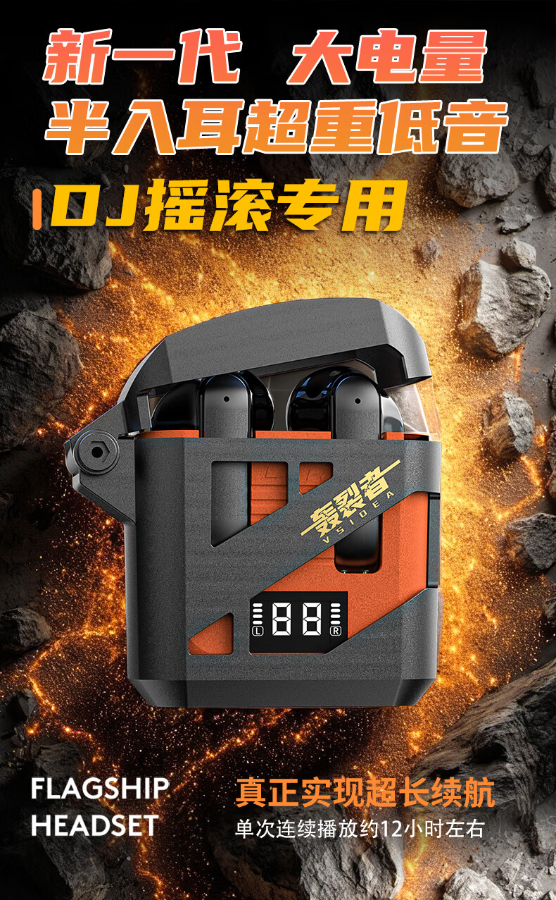 vsidea超重低音大音量DJ专用无线耳机蓝牙半入耳式耳塞超大电量时尚新款 荣耀黑
