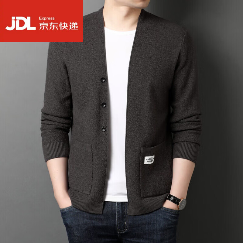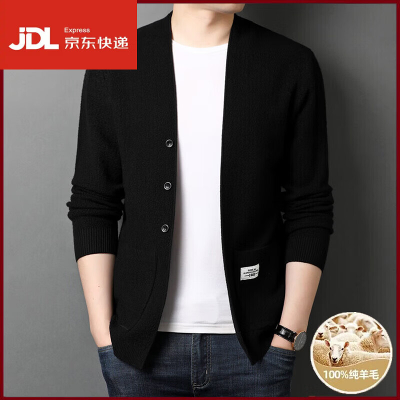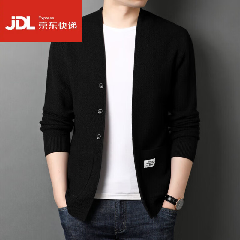 丨利郎丨秋季v领羊毛开衫针织衫男士薄款休闲外套韩版潮流上衣毛衣男 TL-K1610 黑色 XL 175码 建议140-160斤