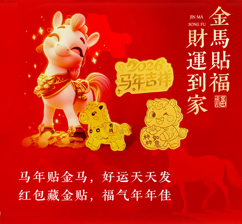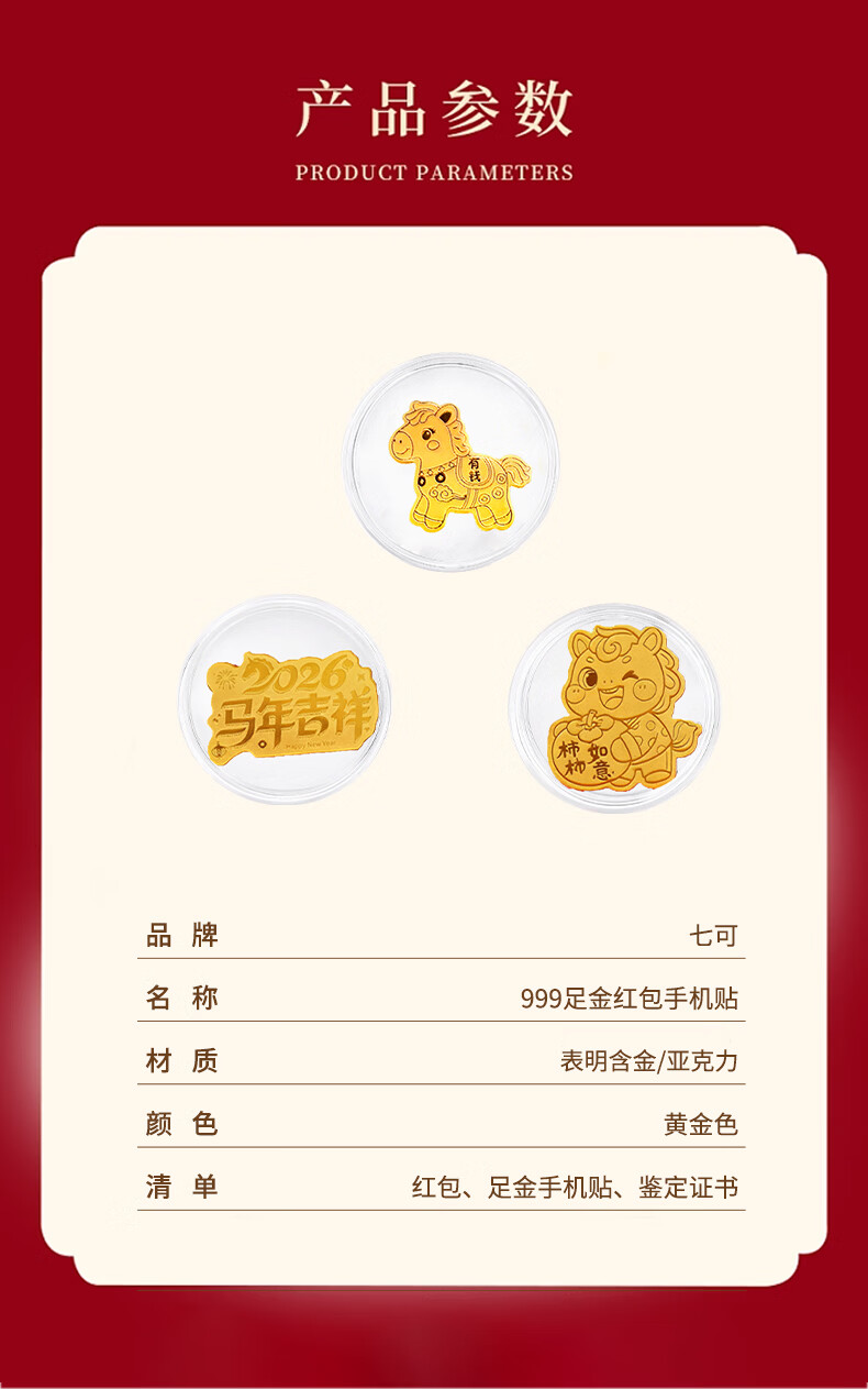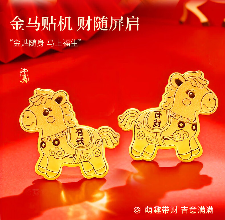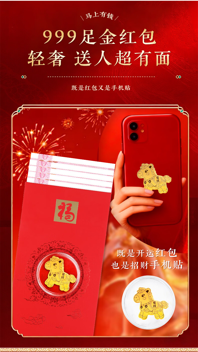 七可马年生肖999足金红包手机贴黄金利是封新年送女友老婆