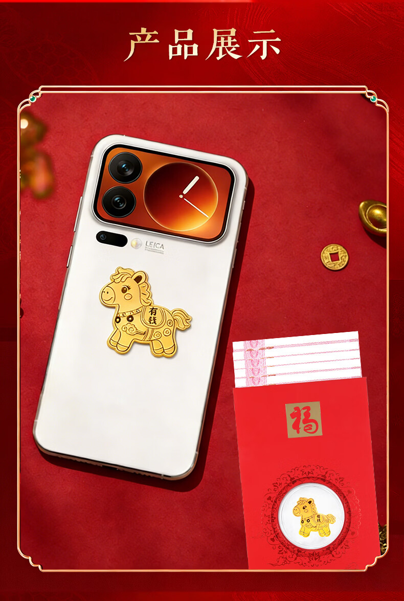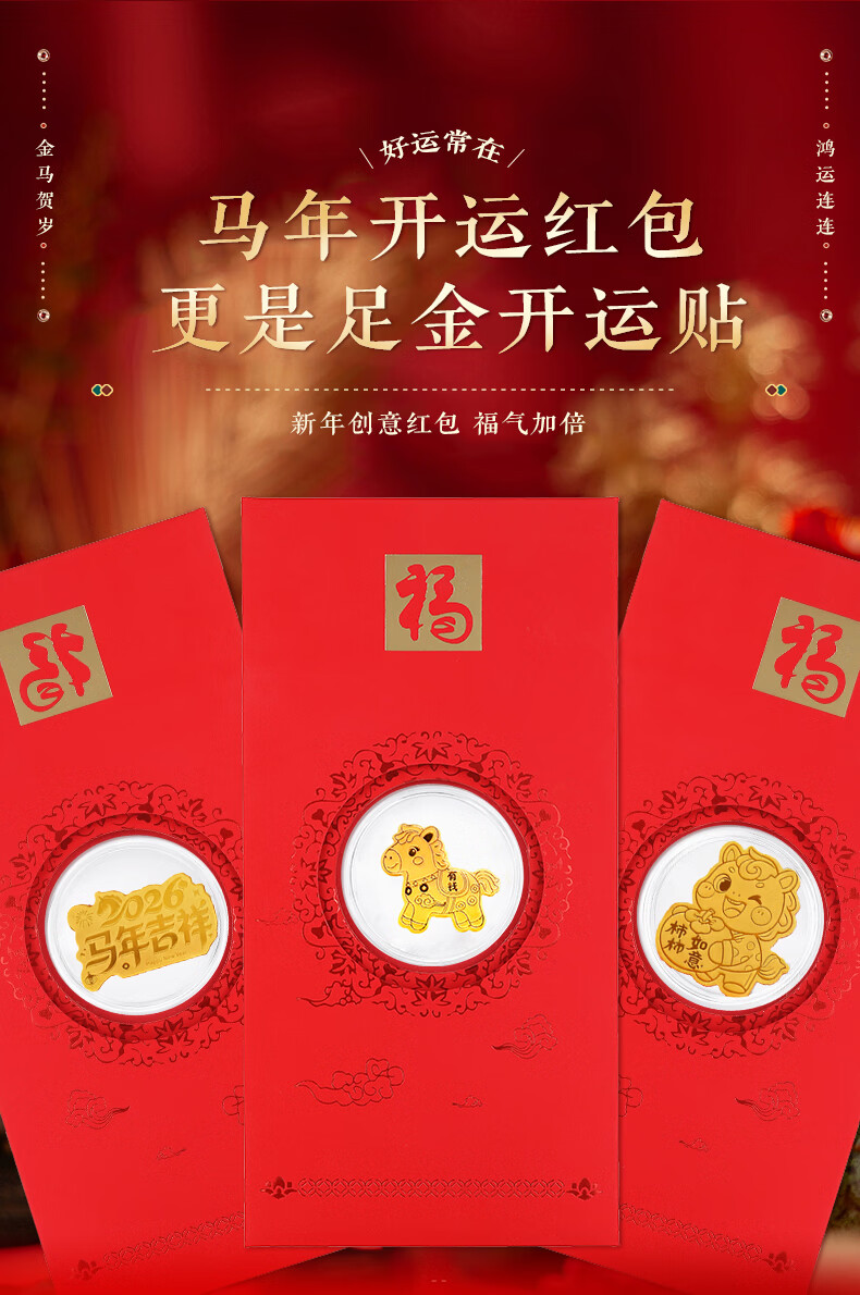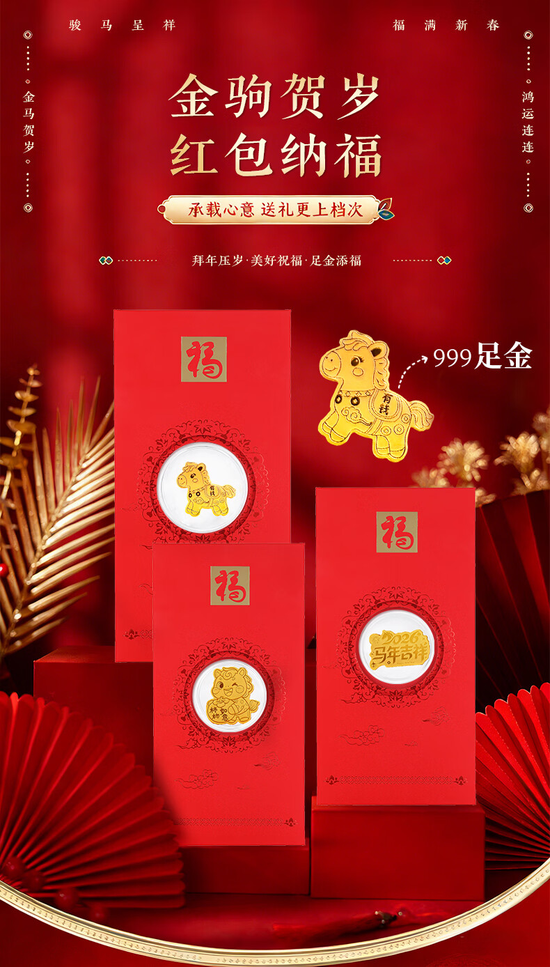 七可马年生肖999足金红包手机贴黄金利是封新年送女友老婆