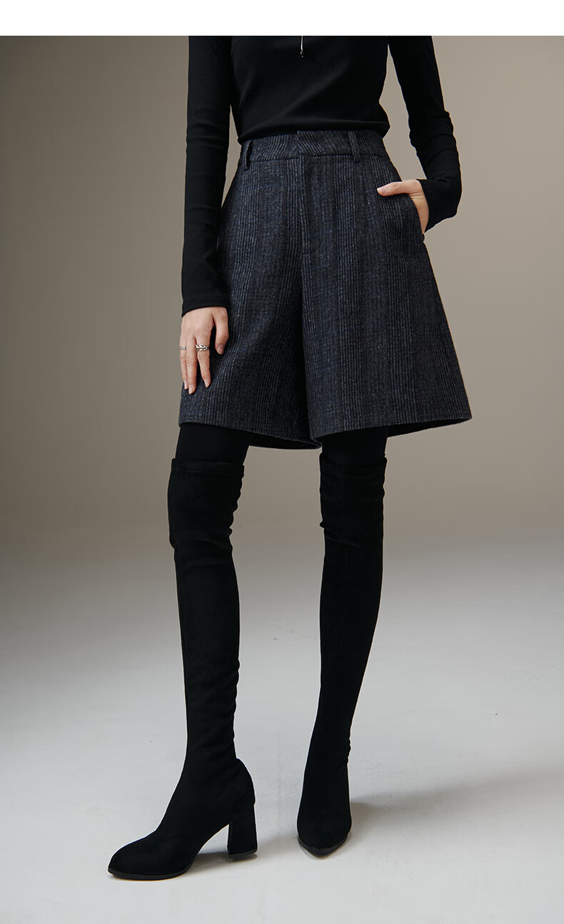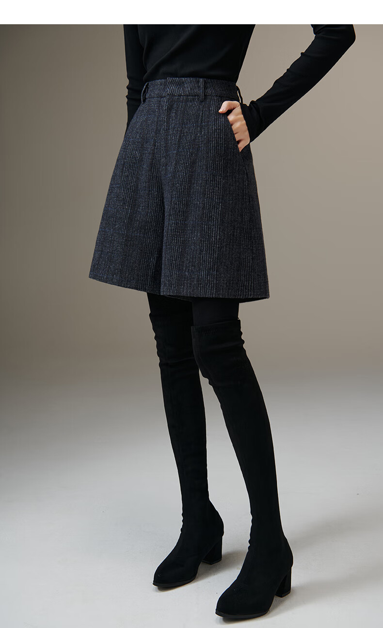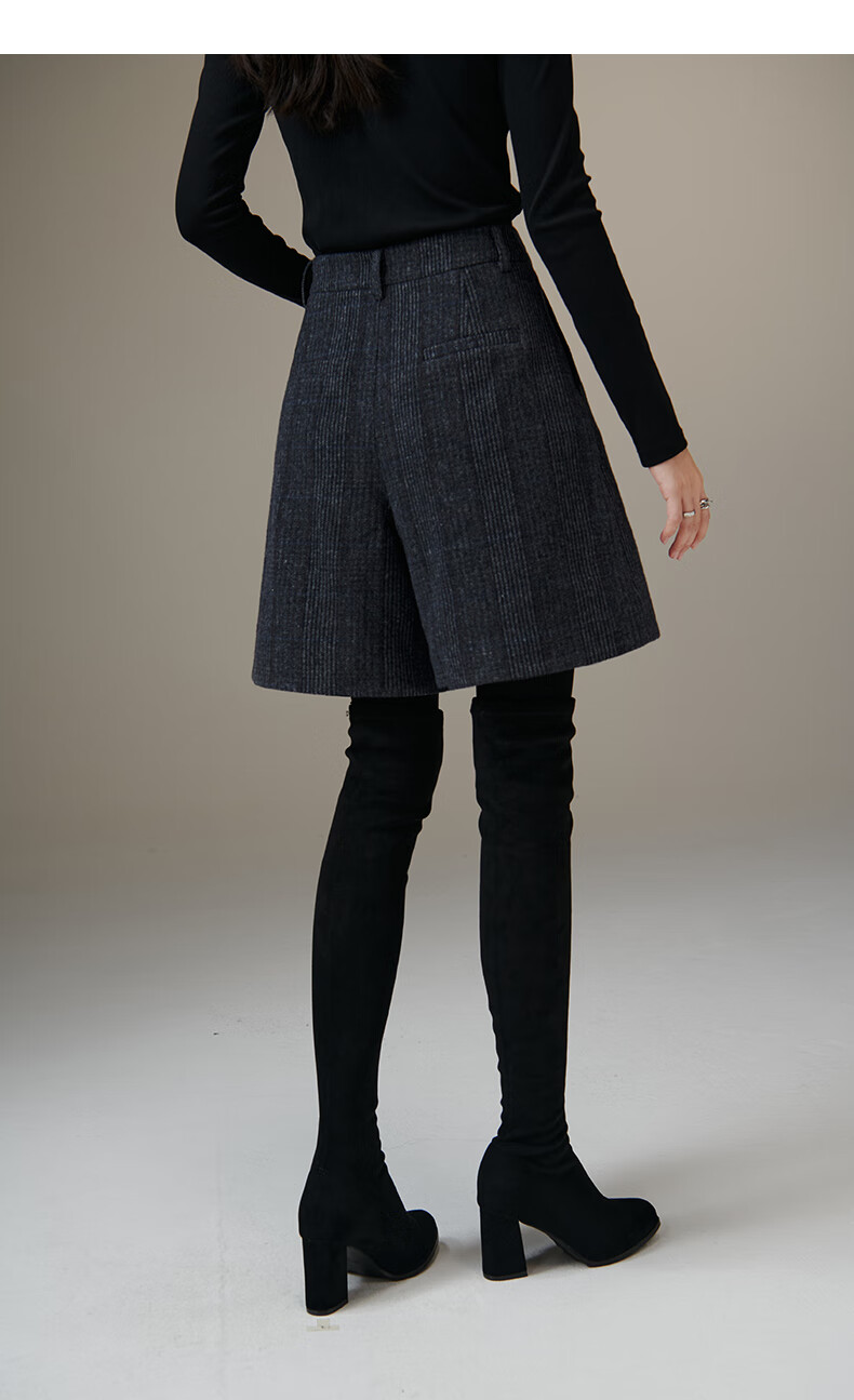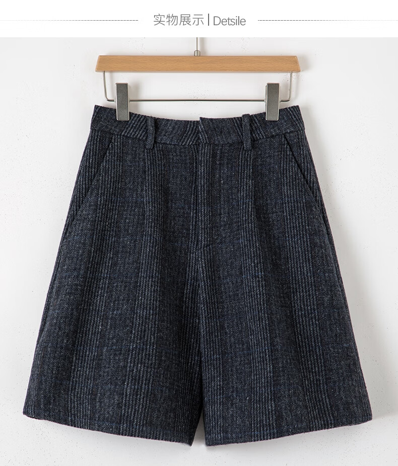 晚白【断码清仓】绵羊毛时尚小个子穿搭裙裤大方舒适高腰休闲短裤女 蓝灰色 26