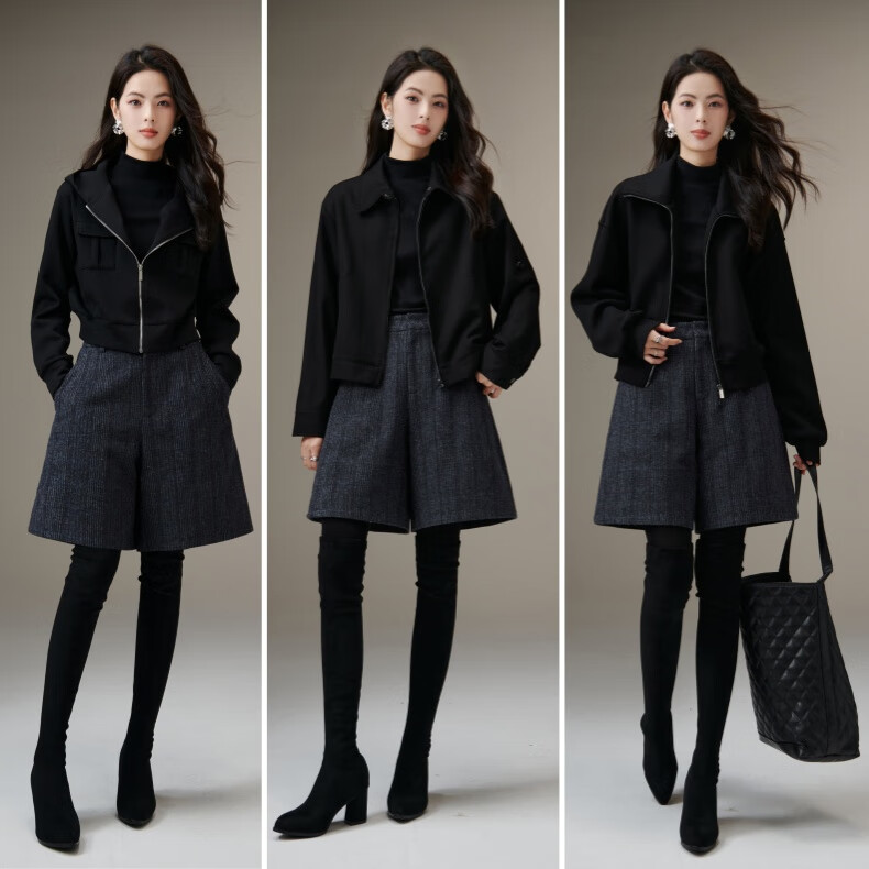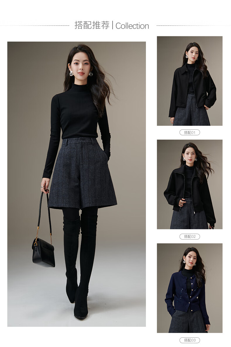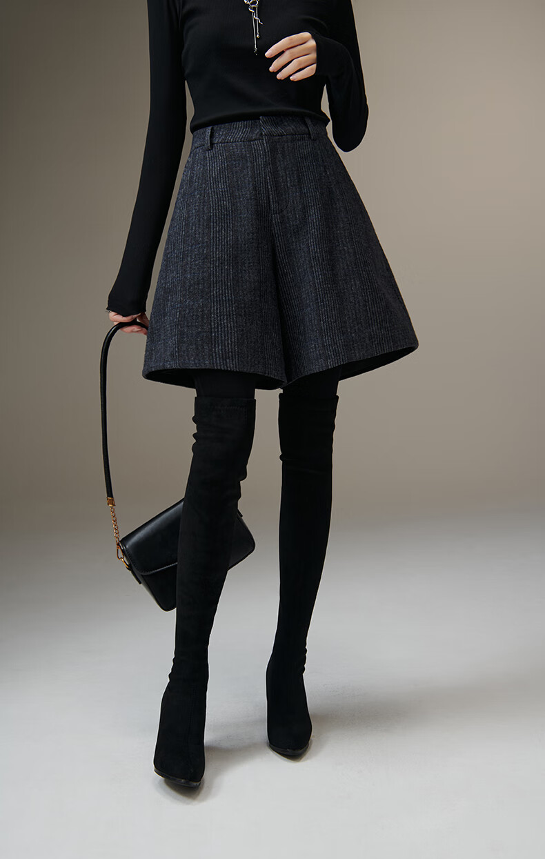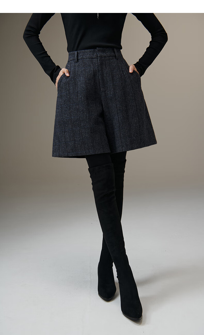 晚白【断码清仓】绵羊毛时尚小个子穿搭裙裤大方舒适高腰休闲短裤女 蓝灰色 26