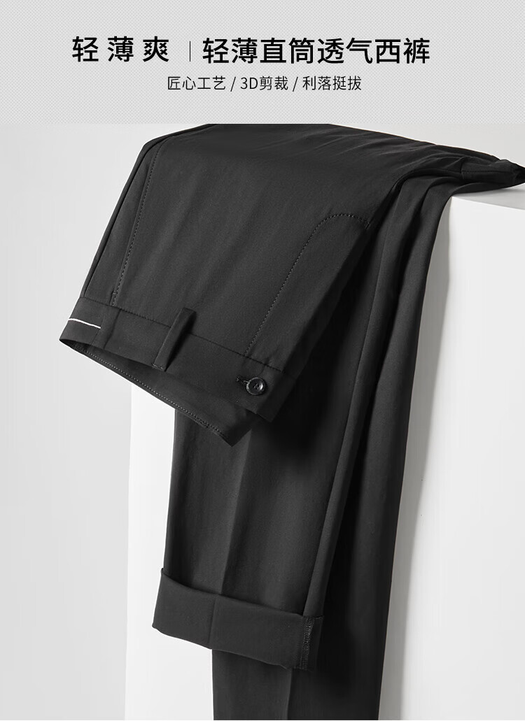 杉杉(FIRS)【轻薄透气】休闲裤男春夏弹力舒适直筒裤商务通勤亲肤修身长裤子 黑色 30 170/76A