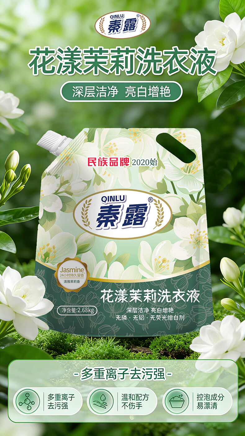 秦露花漾茉莉洗衣液洁净衣物深层洁净清雅茉莉持久留香正品 2.68kg*1袋