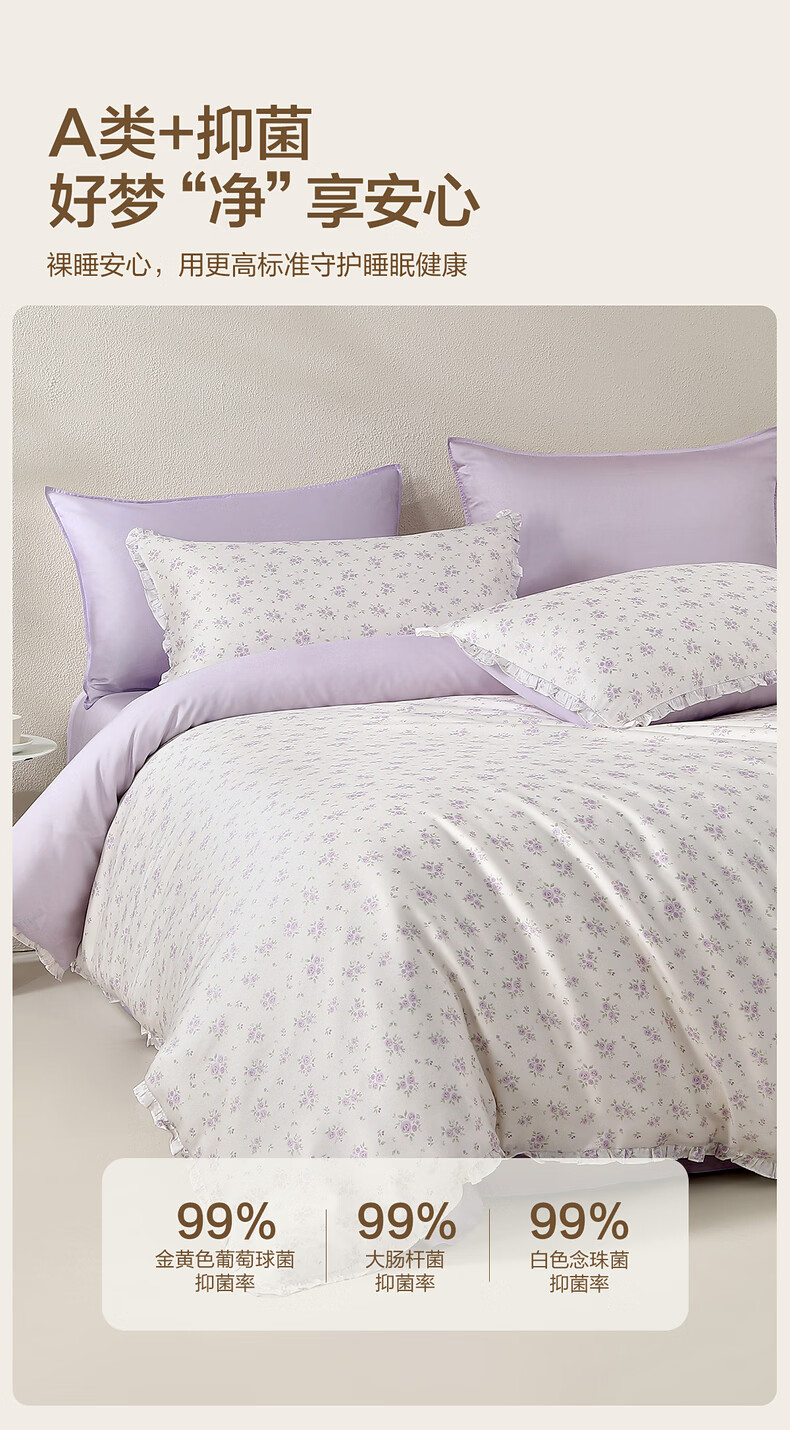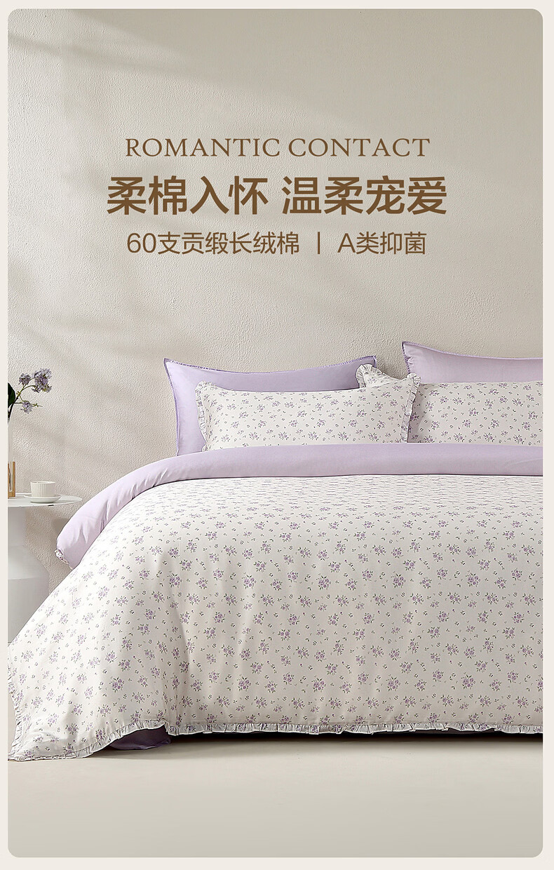 水星家纺床上四件套60支长绒棉纯棉100%A类轻奢高级26年春夏新品 春野花序·忆 床单款 (被套150*210cm)
