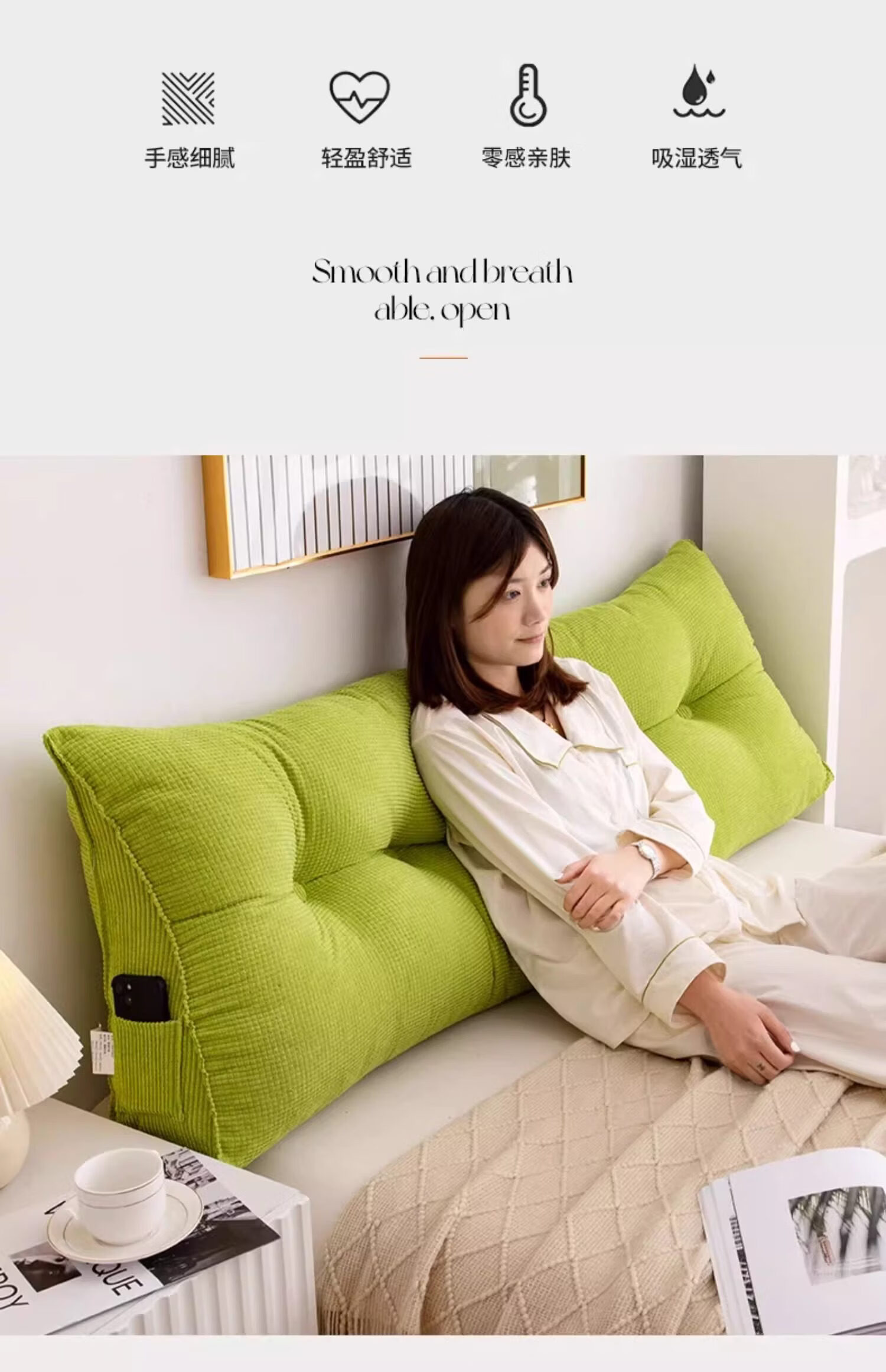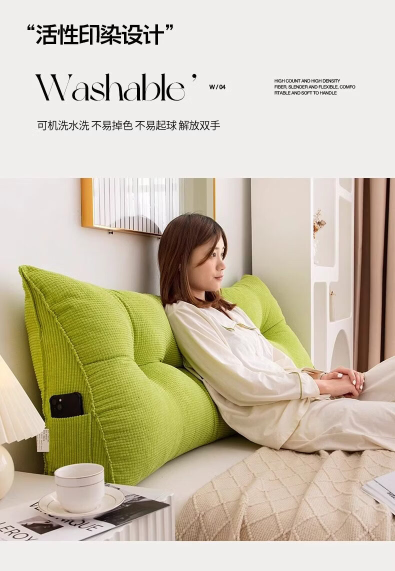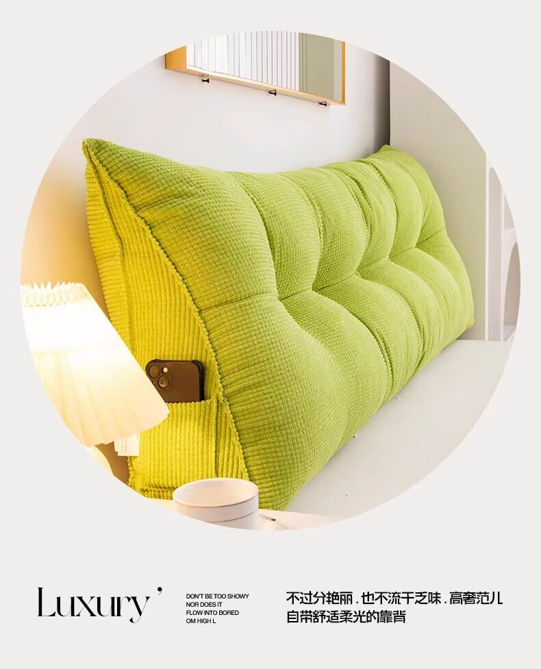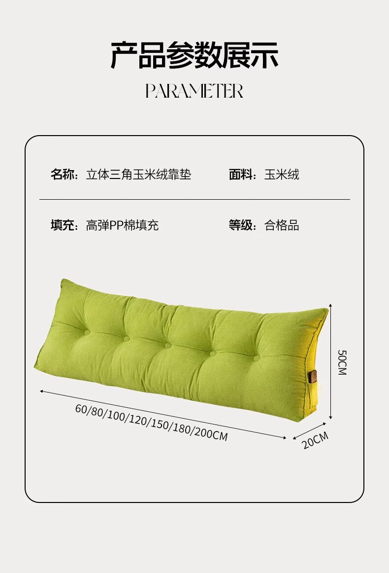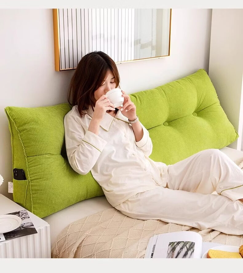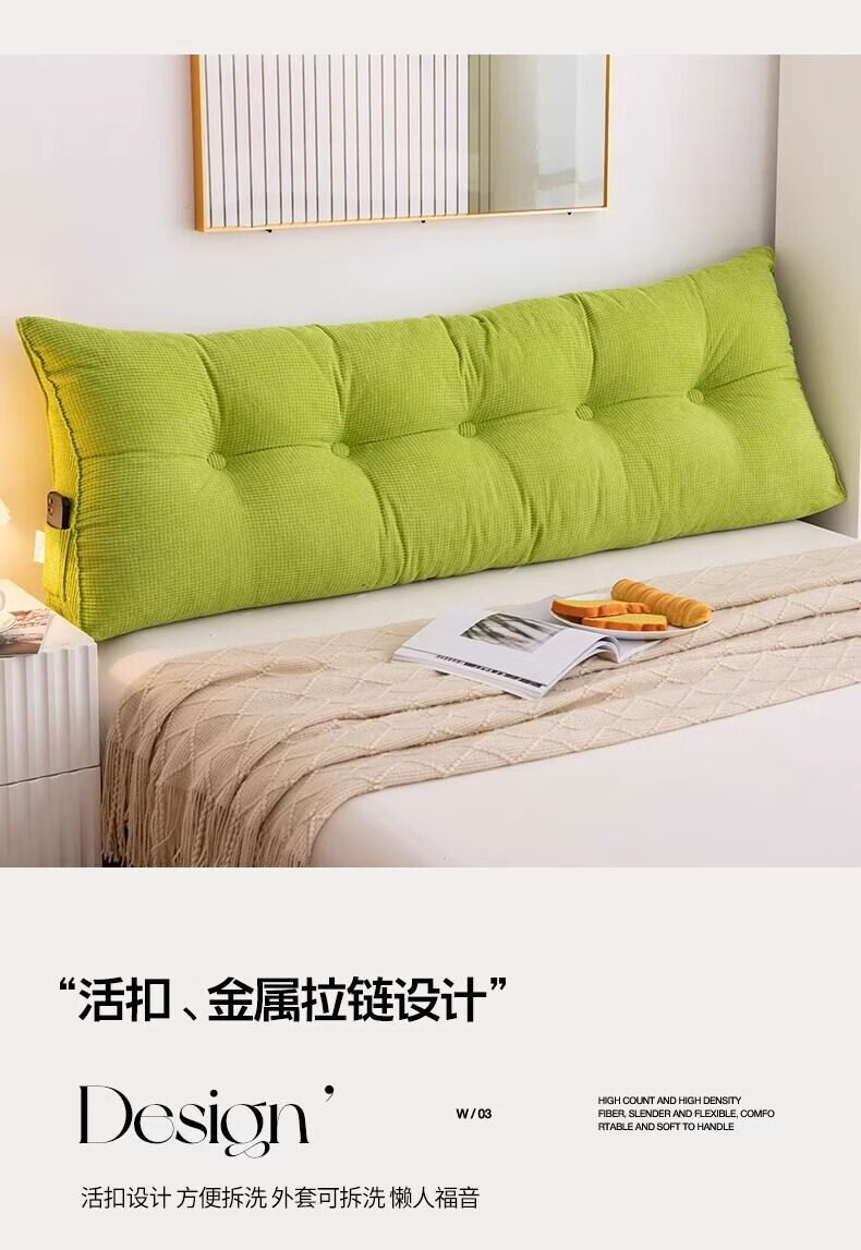 名创优品(MINISO)床头靠垫软包 可拆洗三角靠背大靠枕靠背垫床头腰部靠垫 果绿 120cm*20cm*50cm 含枕芯 【4扣】