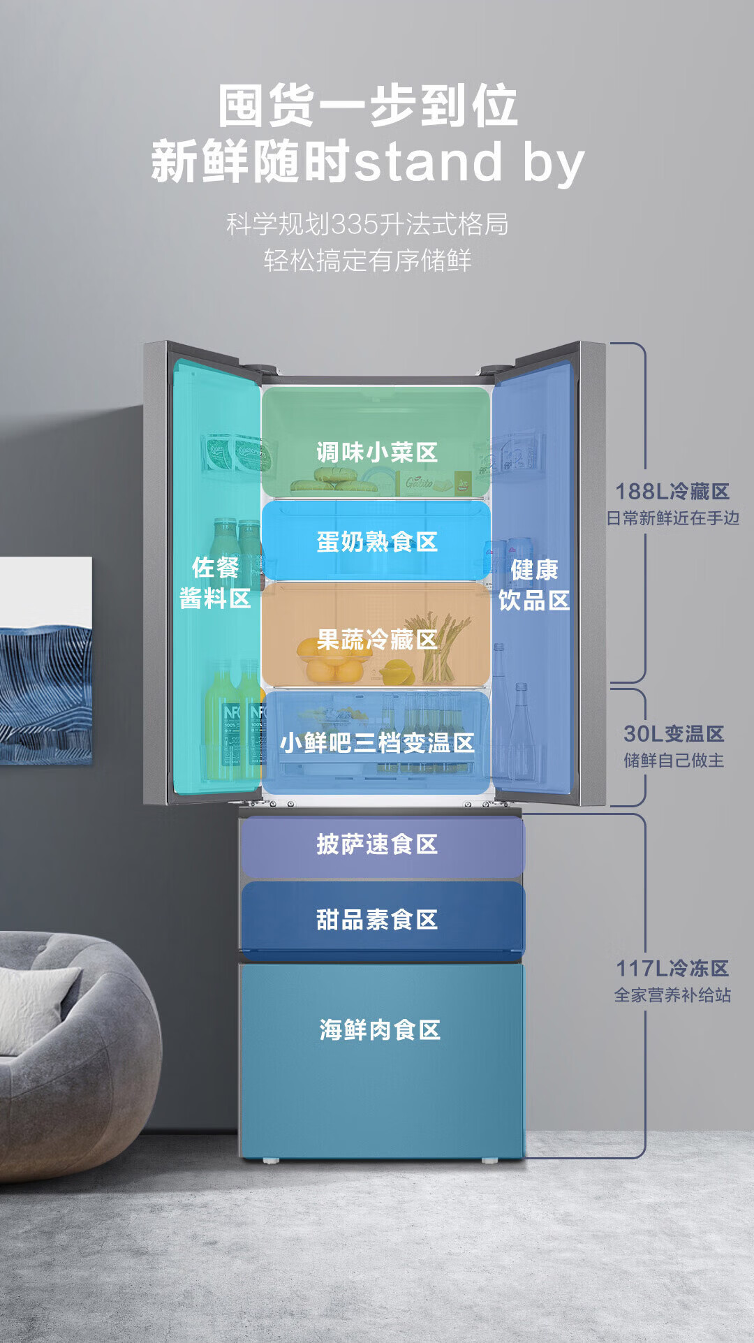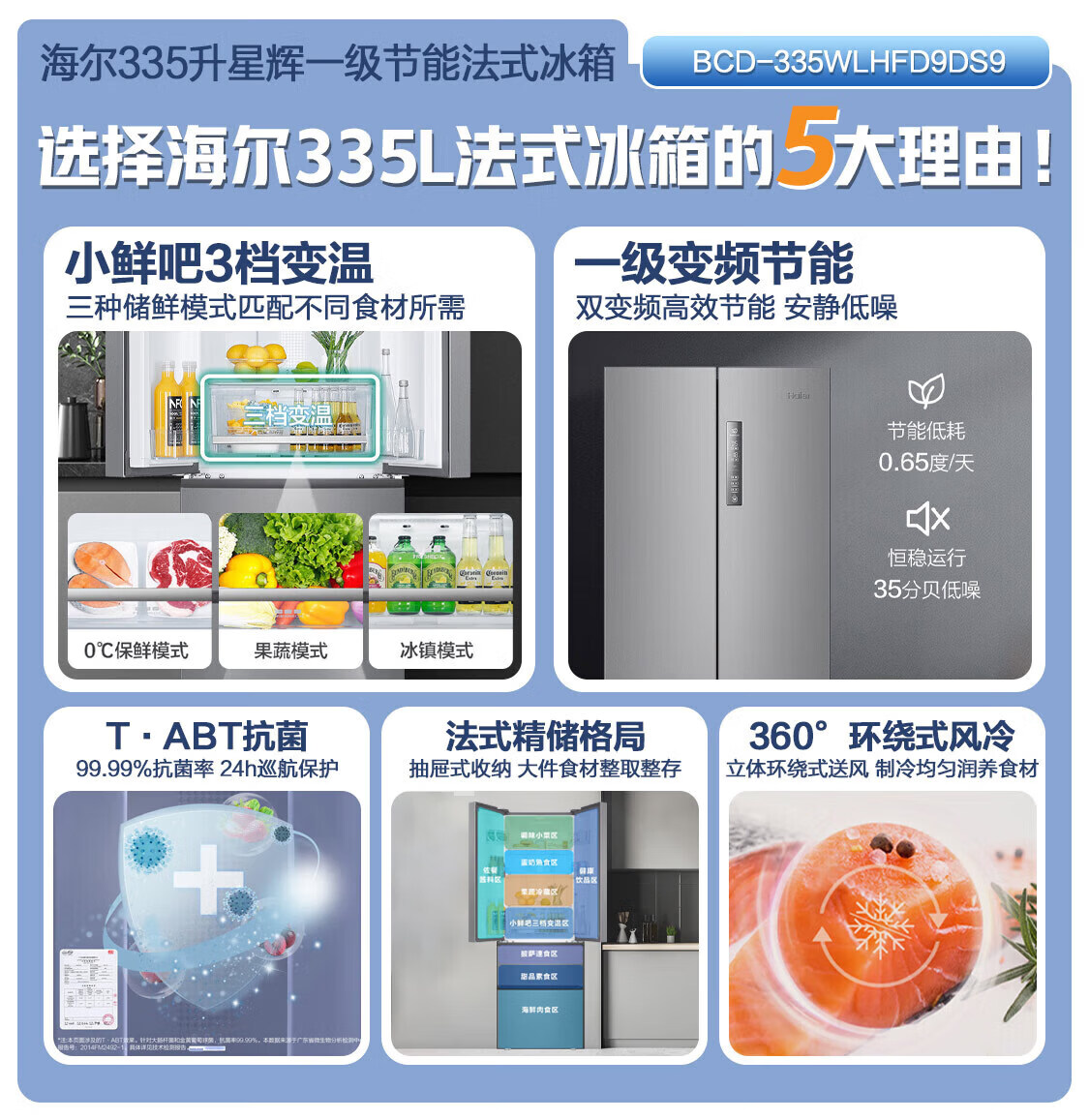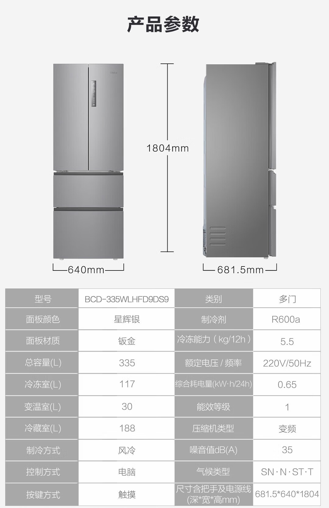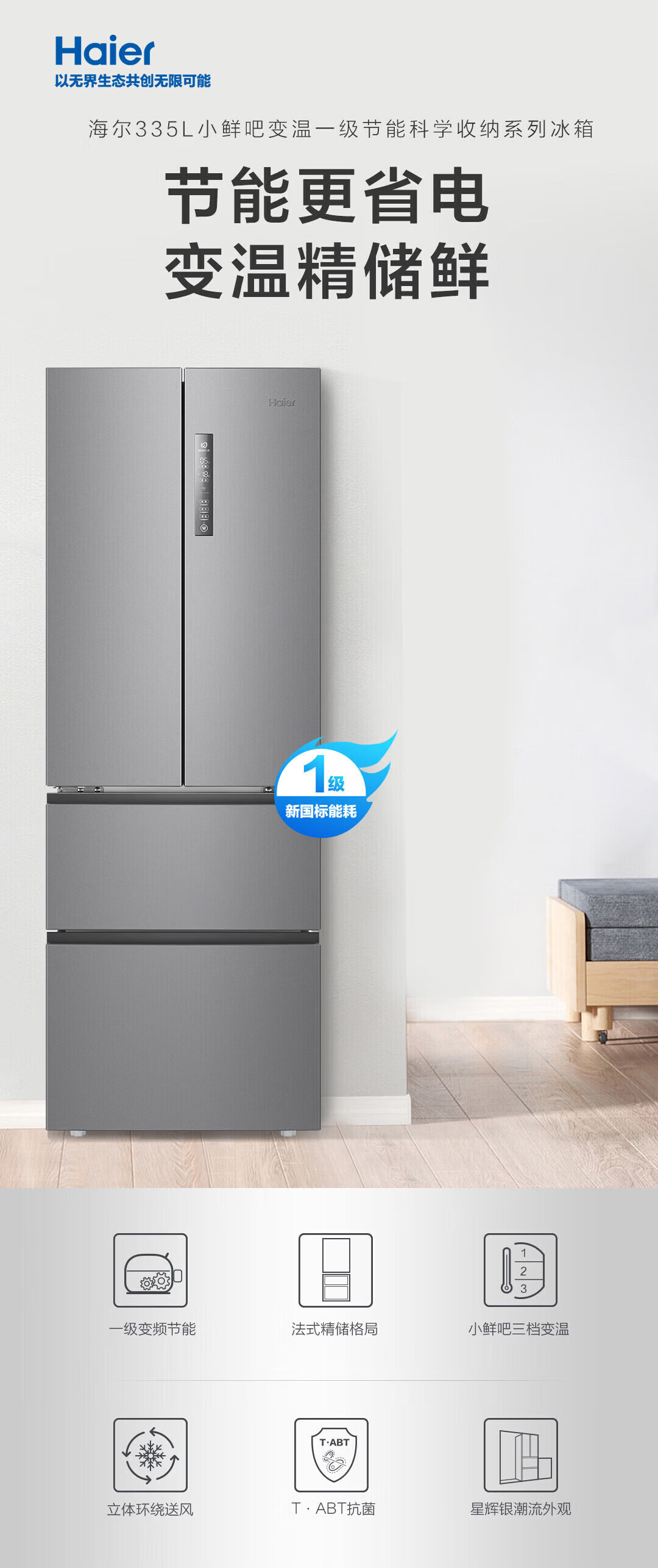 海尔(Haier)冰箱335升星辉法式多门四开门小户型家用一级能效变频节能风冷租房三档变温家用电冰箱 【新一级+三档变温+晒图送压缩机10年保修】