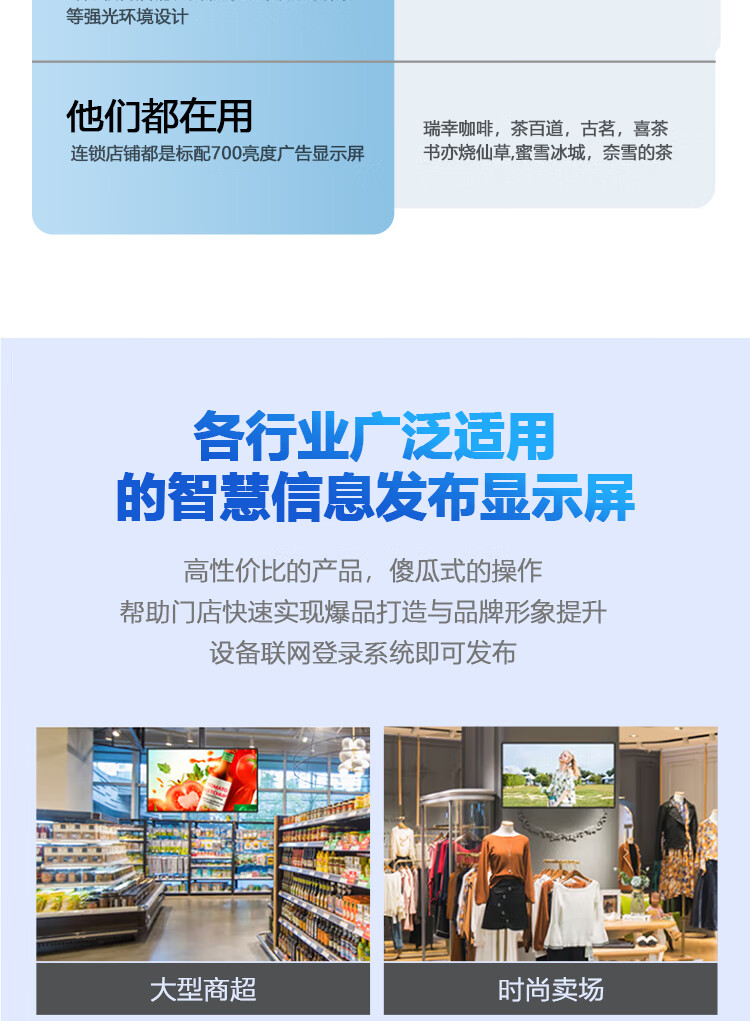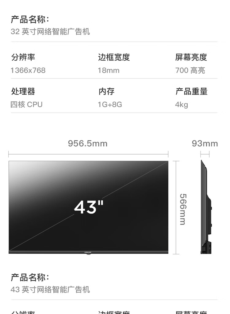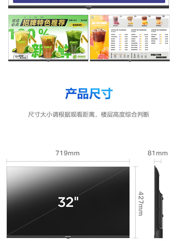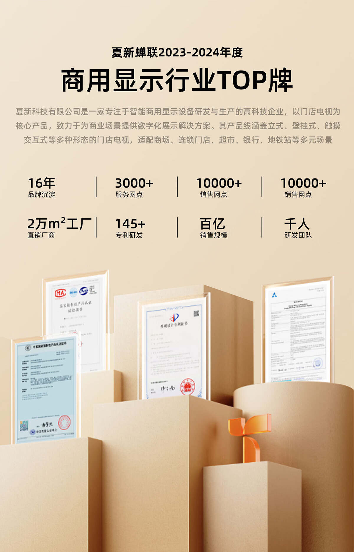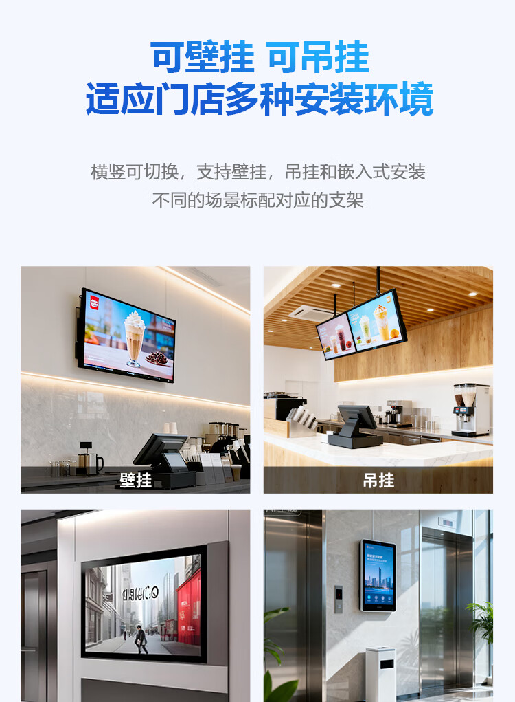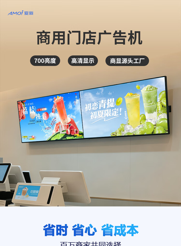 夏新广告机显示屏32英寸壁挂高清高亮广告屏奶茶店餐饮店吊挂营销屏商场党建电子宣传屏