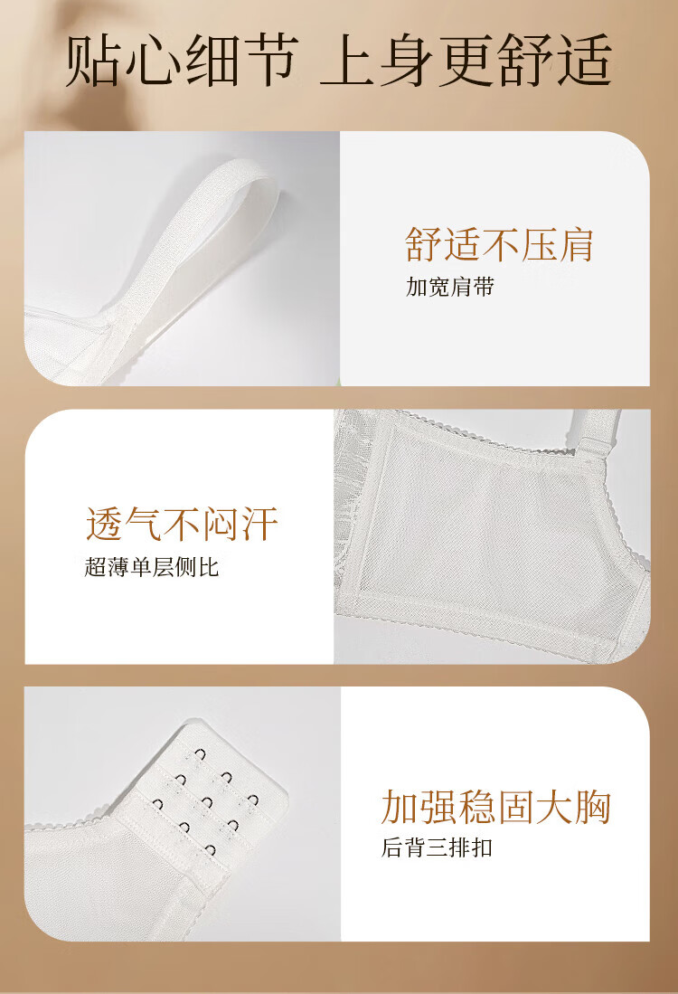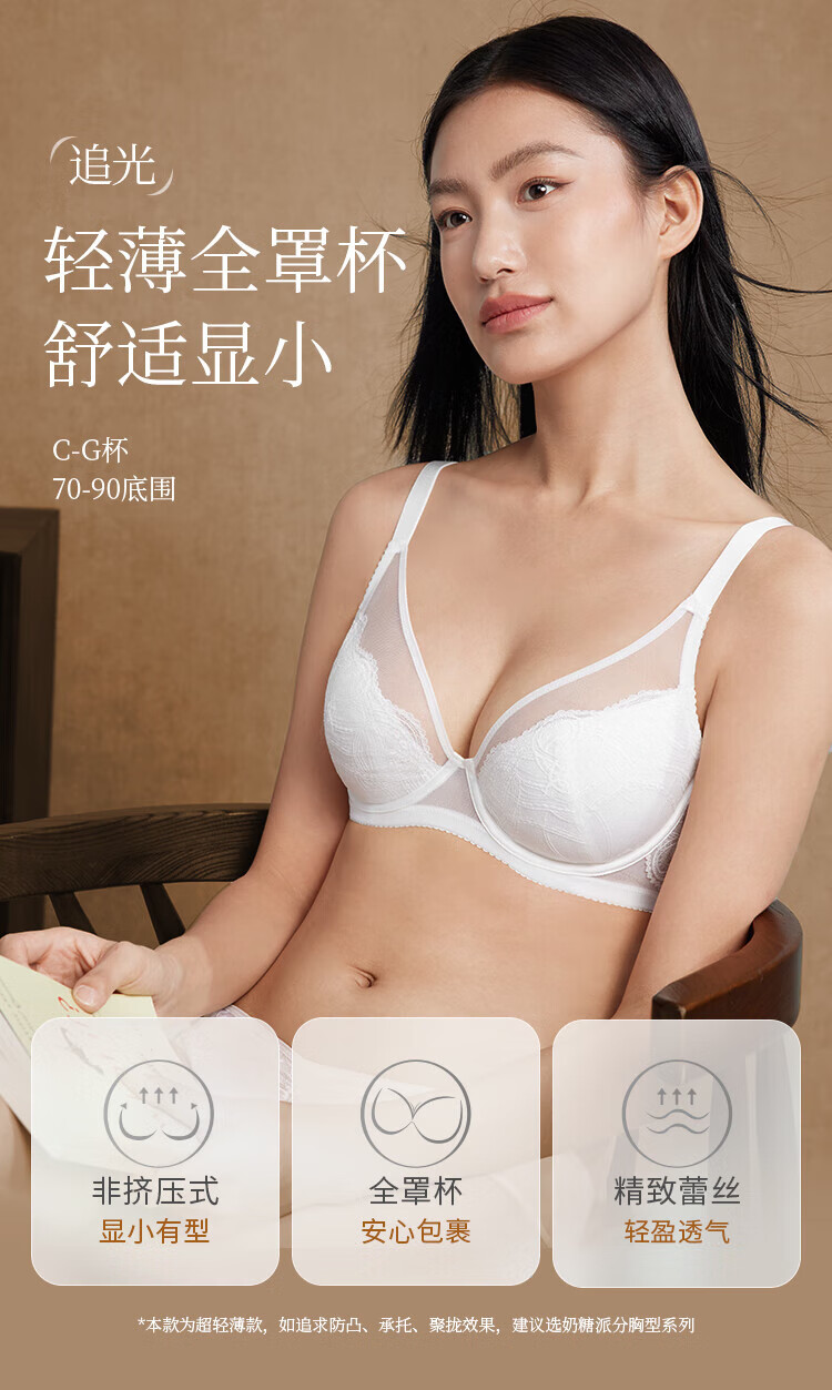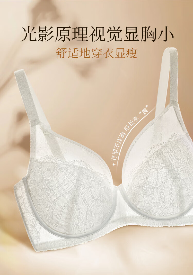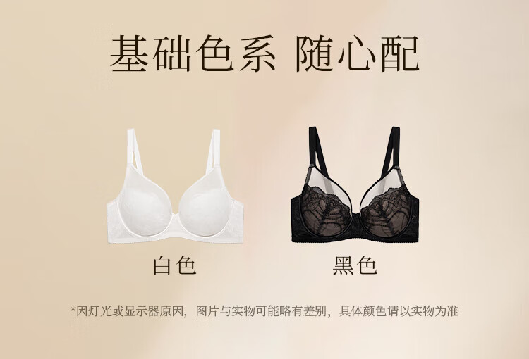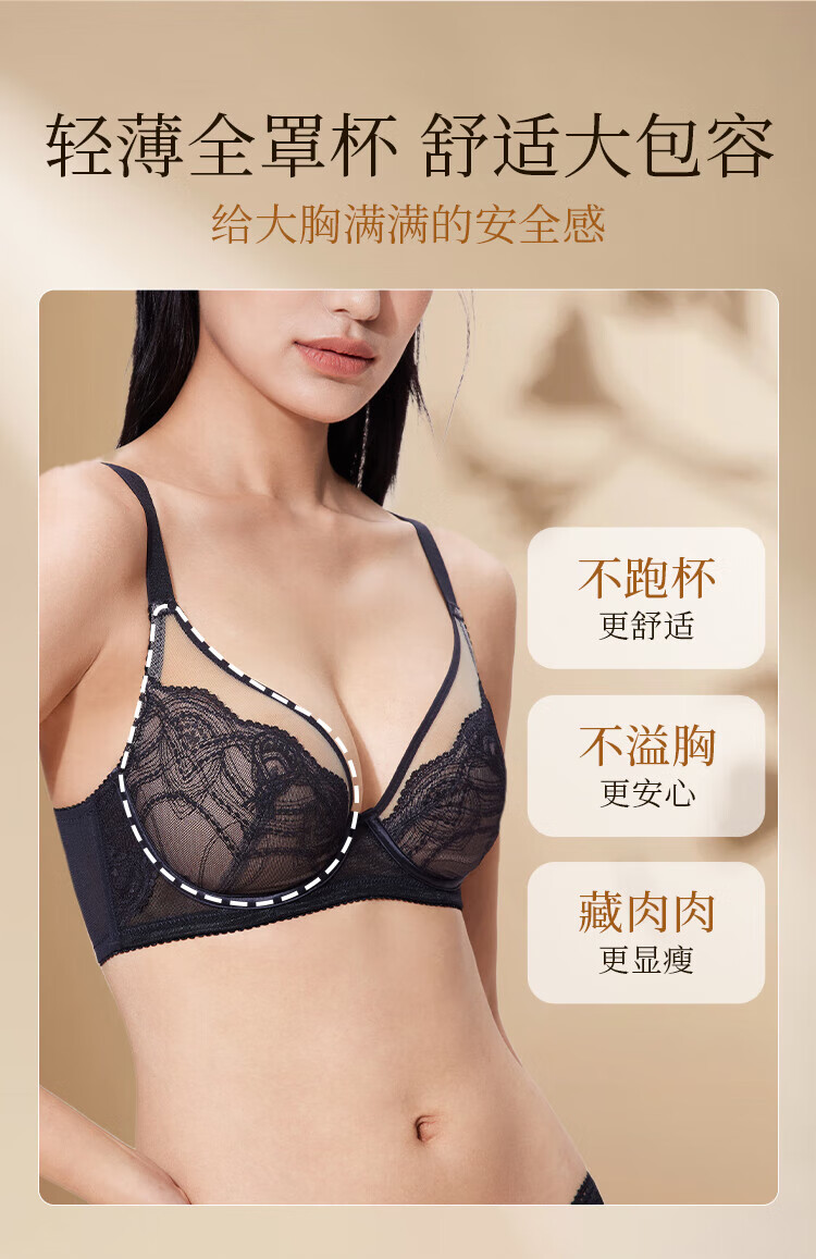 奶糖派追光轻薄全罩杯大胸显小空气感柔软蕾丝透气文胸内衣女送女友 黑色【赠防凸点棉垫】 80C