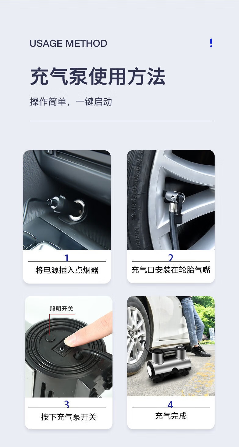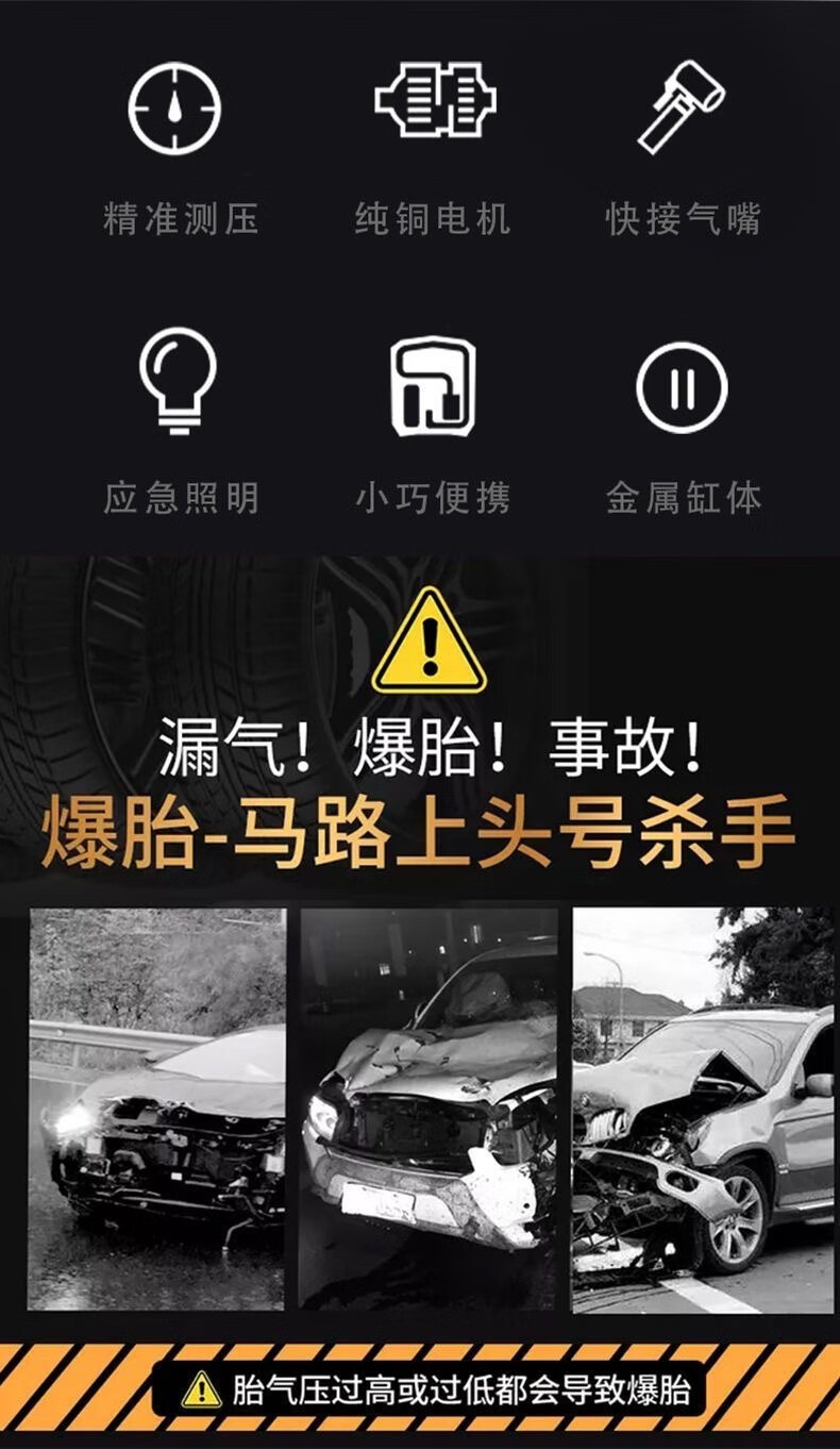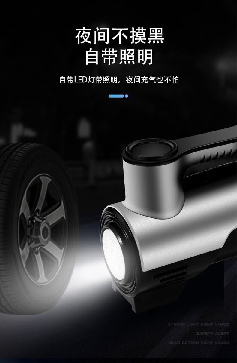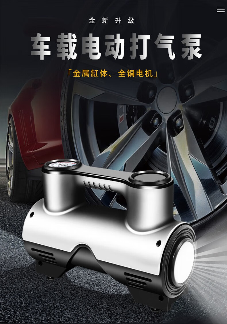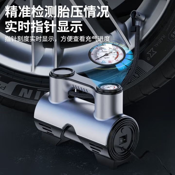 【年底冲销量】车载充气泵轮胎打气泵大功率便携智能测胎压303 【12V带线指针款】便携充气泵