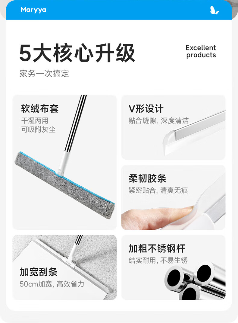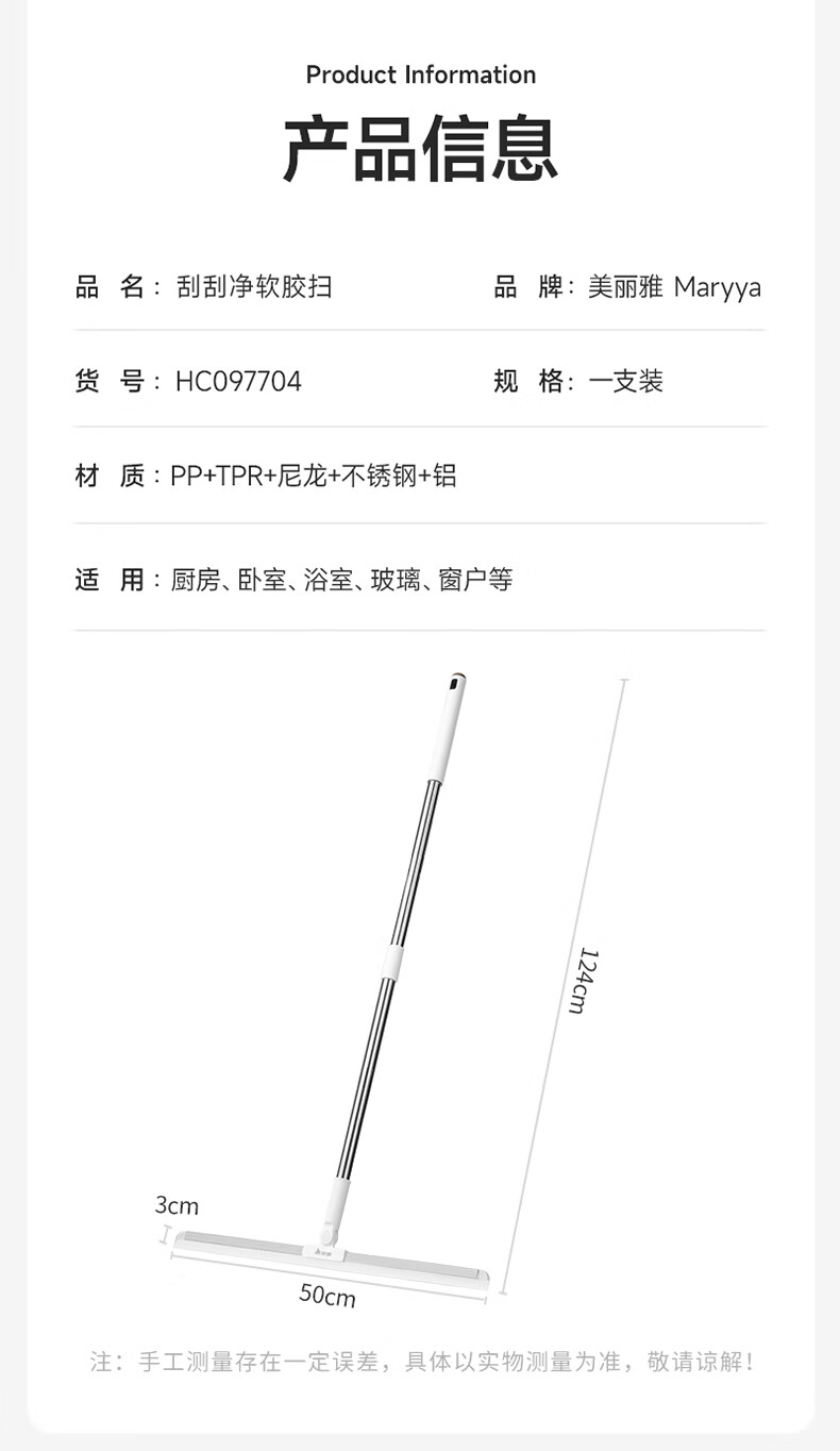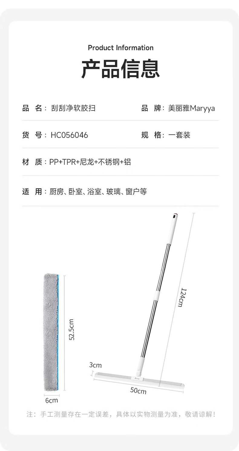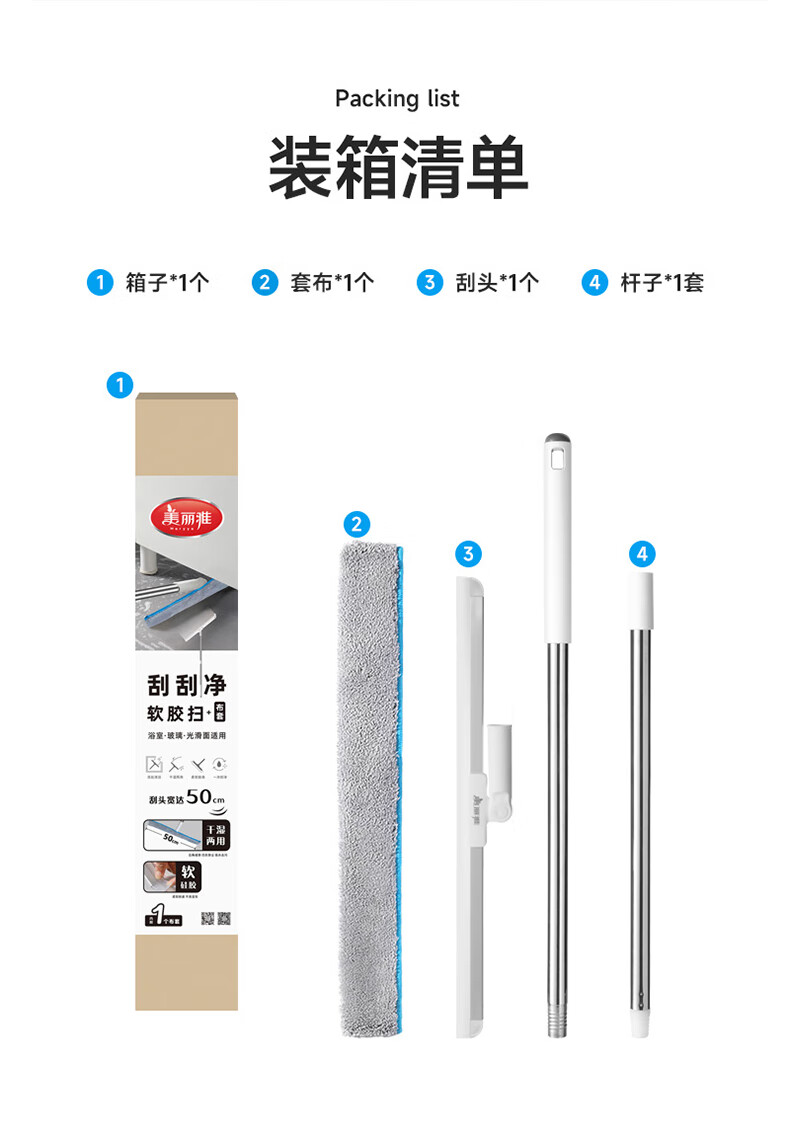 美丽雅(MARYYA)净无痕魔术扫把扫地 笤帚卫生间扫水地刮多功能玻璃刮水器 刮刮净软胶扫36CM
