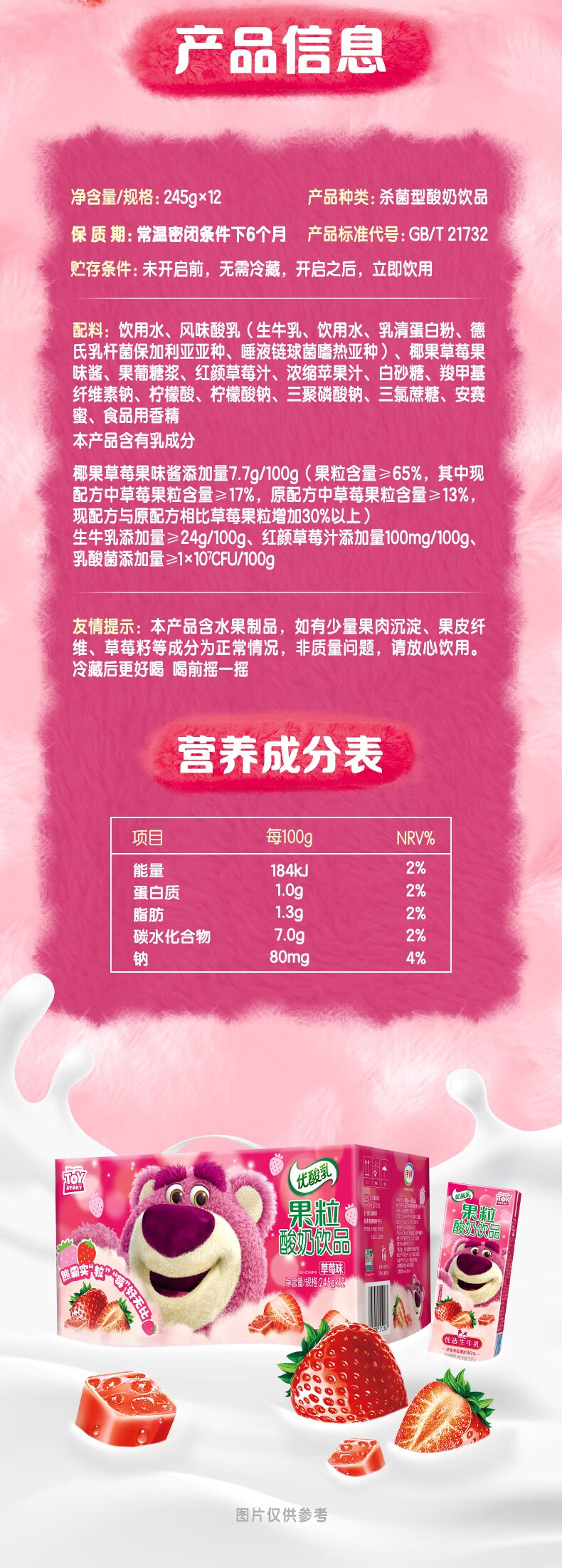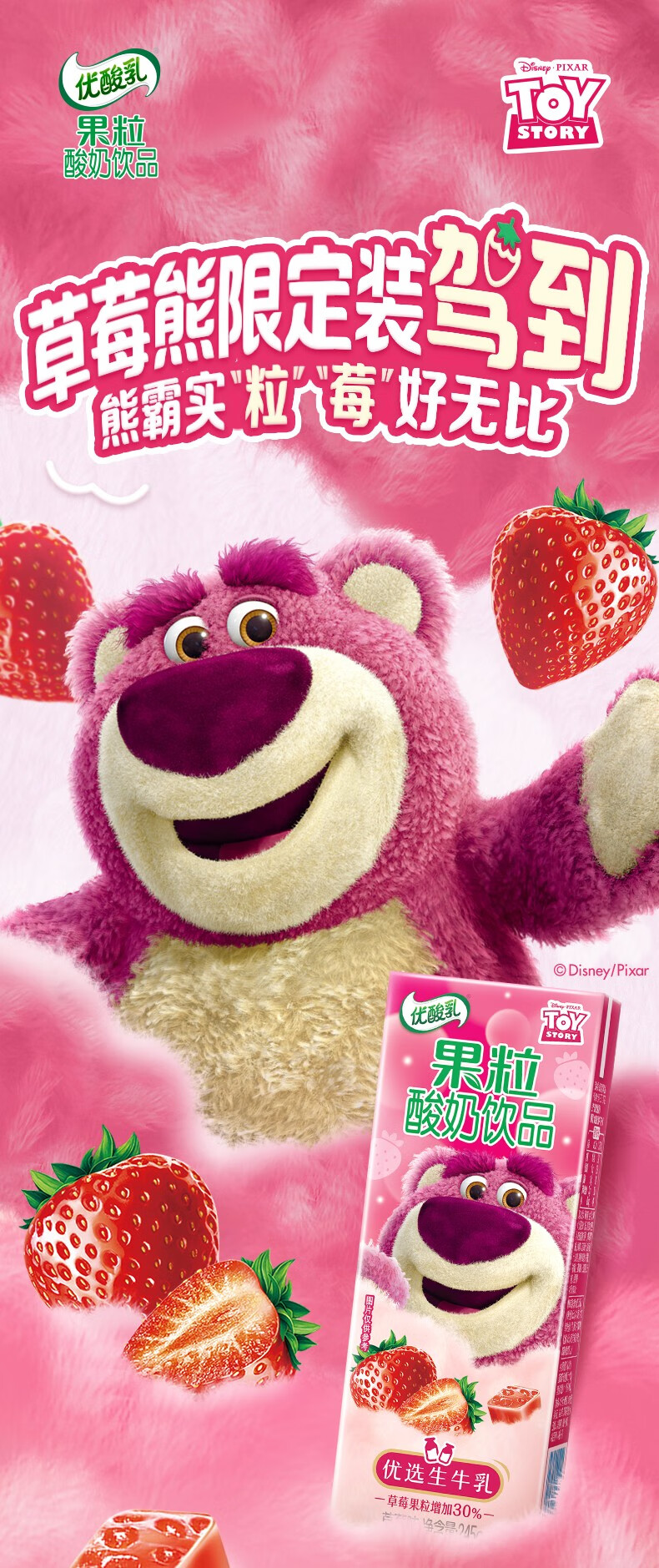 伊利优酸乳果粒草莓味245g*12盒/箱 真实果粒 牛奶饮品