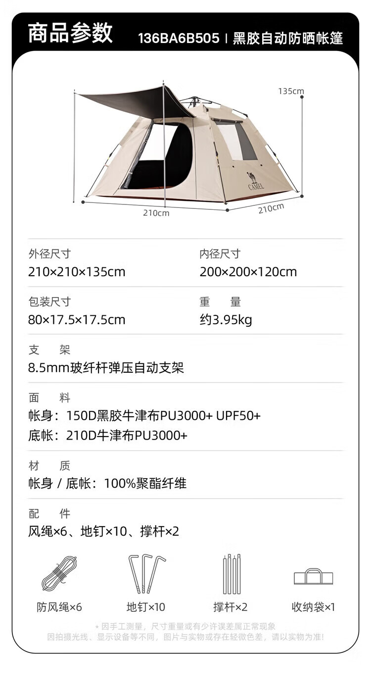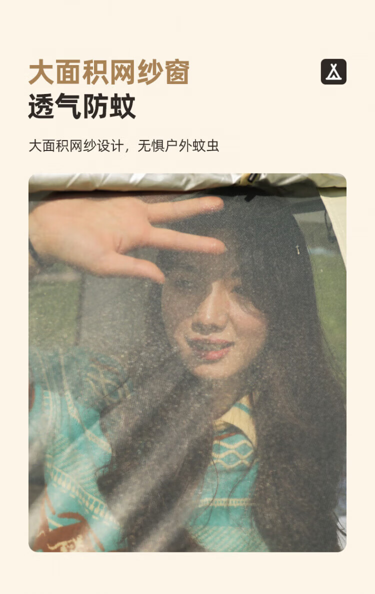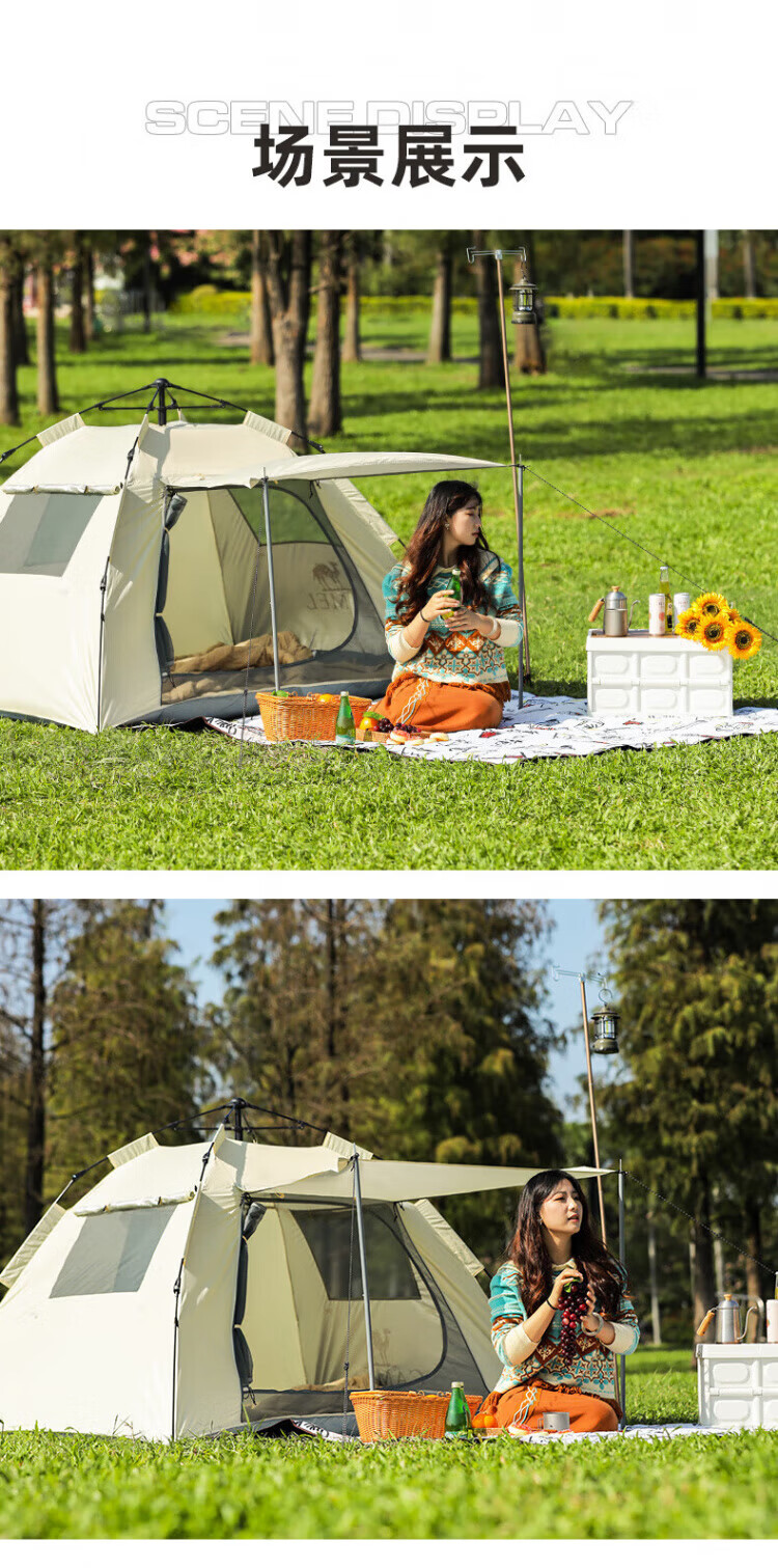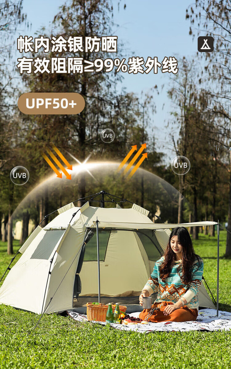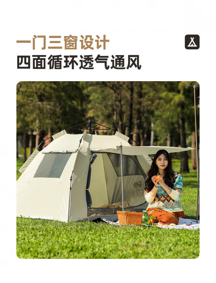 骆驼(CAMEL)【山房】帐篷户外天幕便携式折叠自动防风公园露营野外野营装备 无门杆 涂银防晒 奶酪色 7681