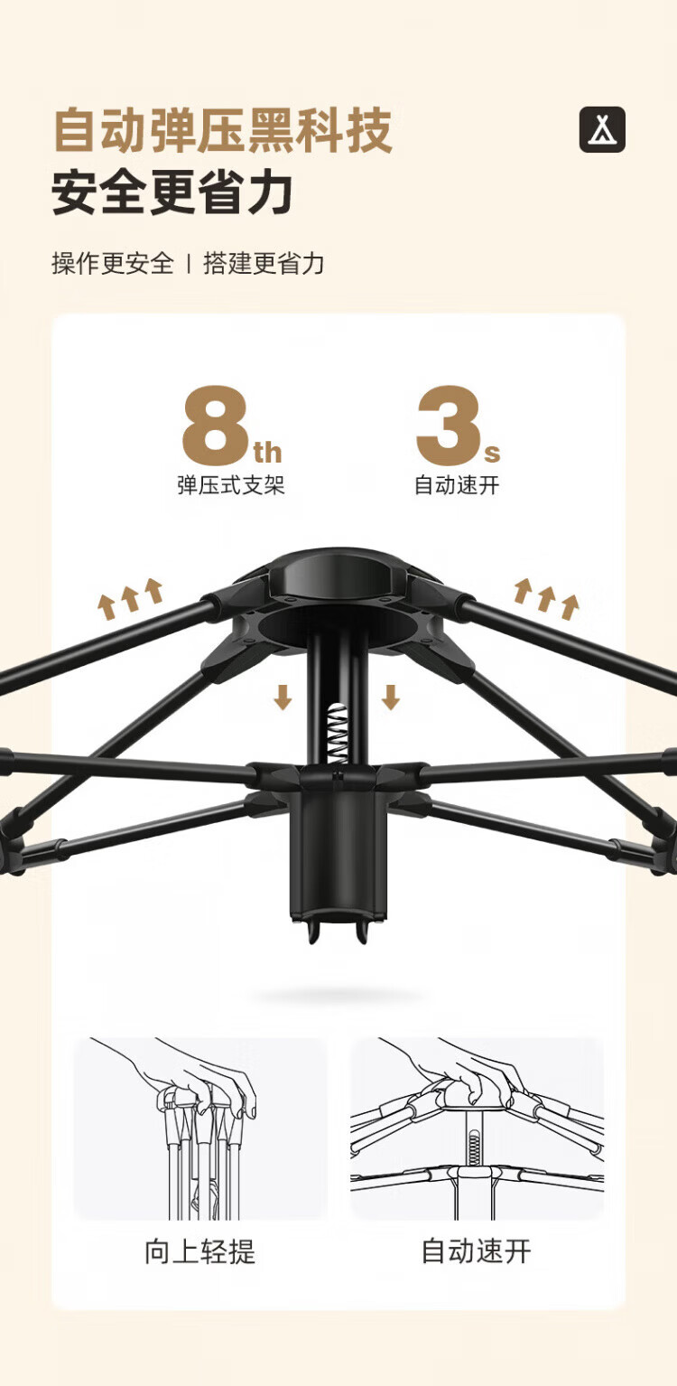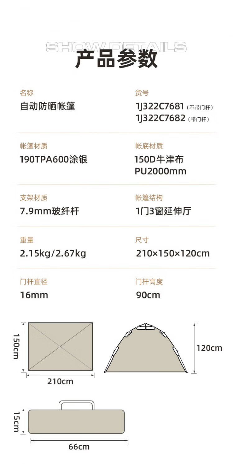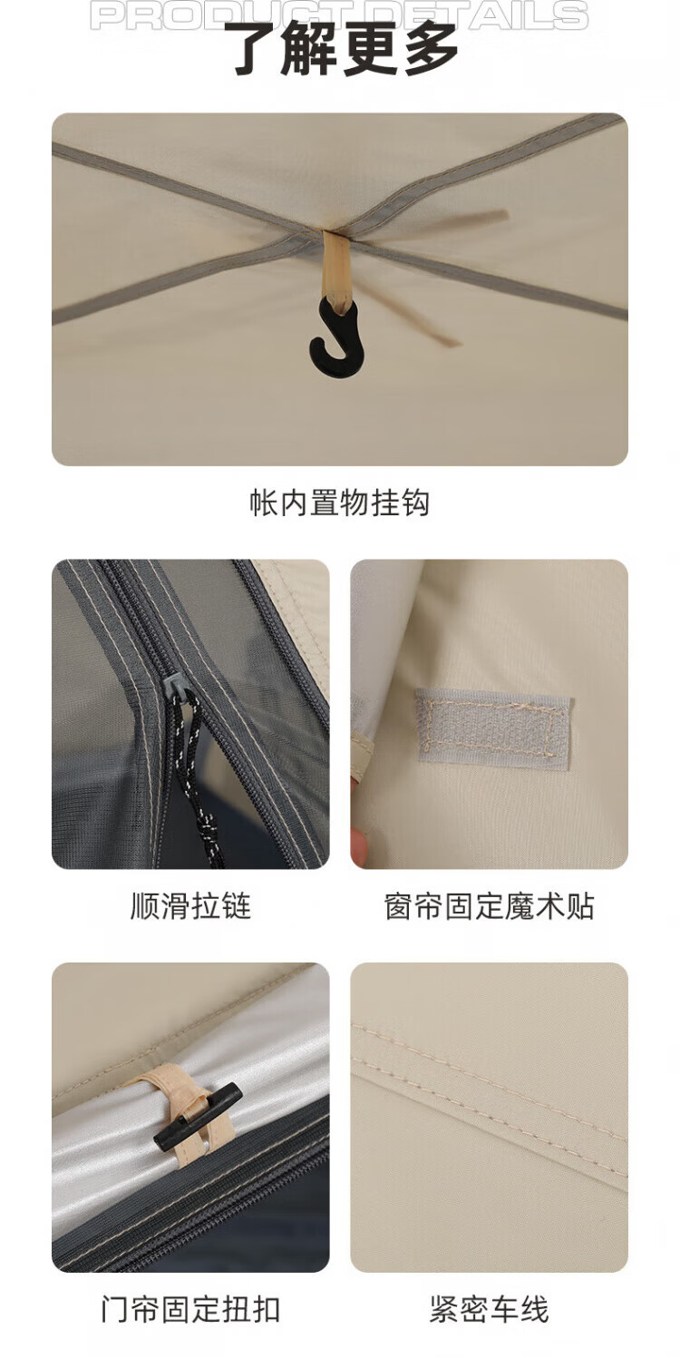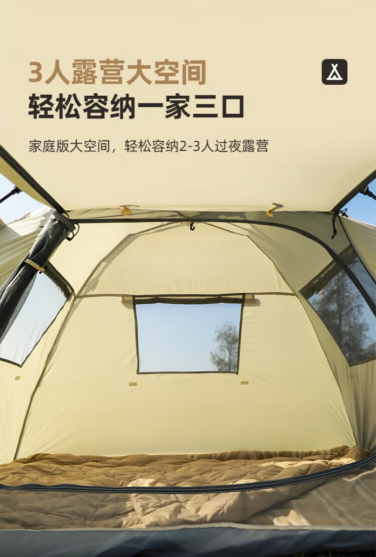 骆驼(CAMEL)【山房】帐篷户外天幕便携式折叠自动防风公园露营野外野营装备 无门杆 涂银防晒 奶酪色 7681