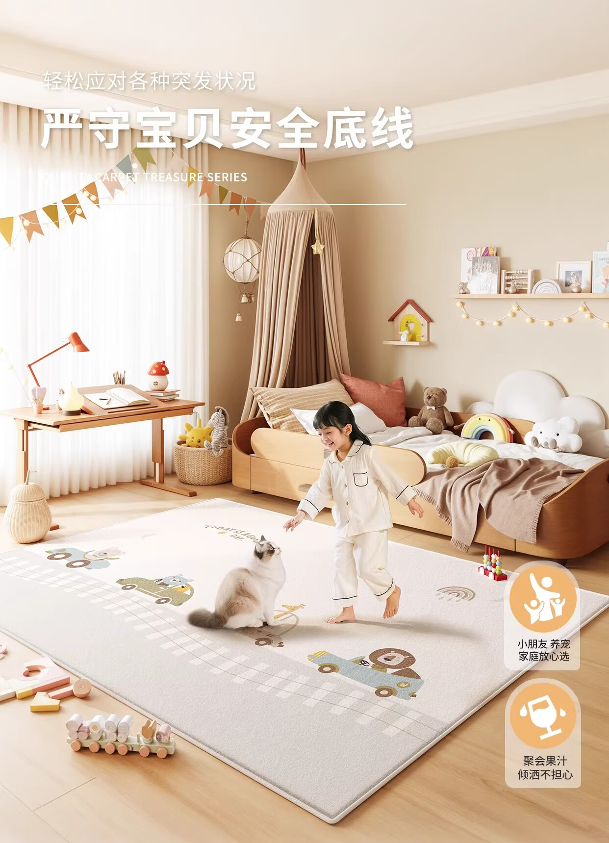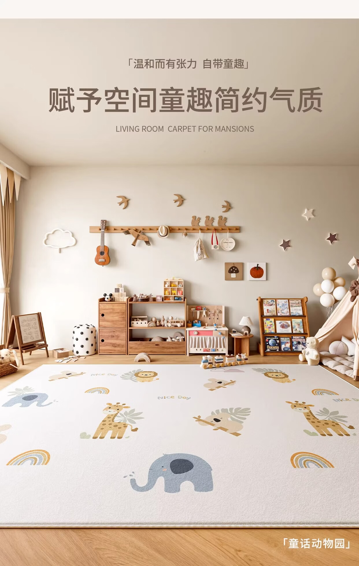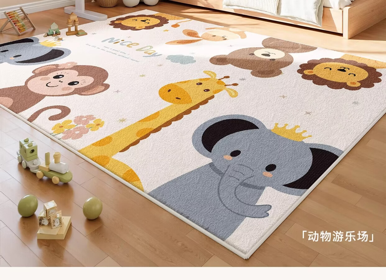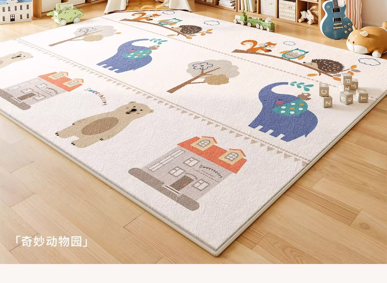 著忆地毯儿童房阅读区地垫卧室床边客厅2026新款女孩免打理毛绒多巴胺 S波斯绒-童话动物园 140x200CM【当季新款】