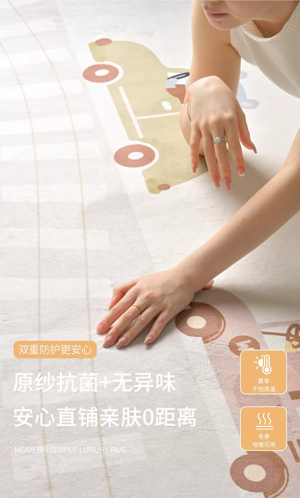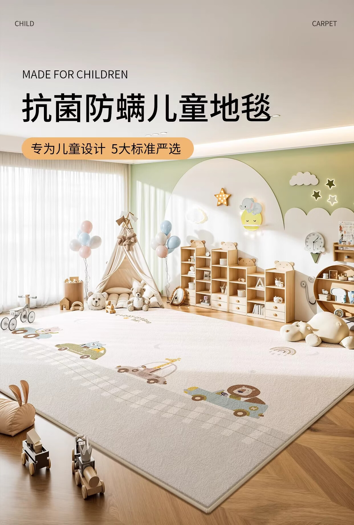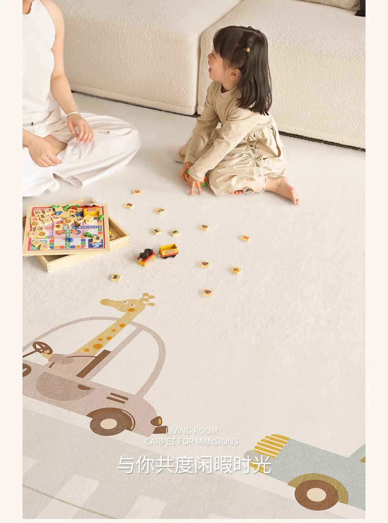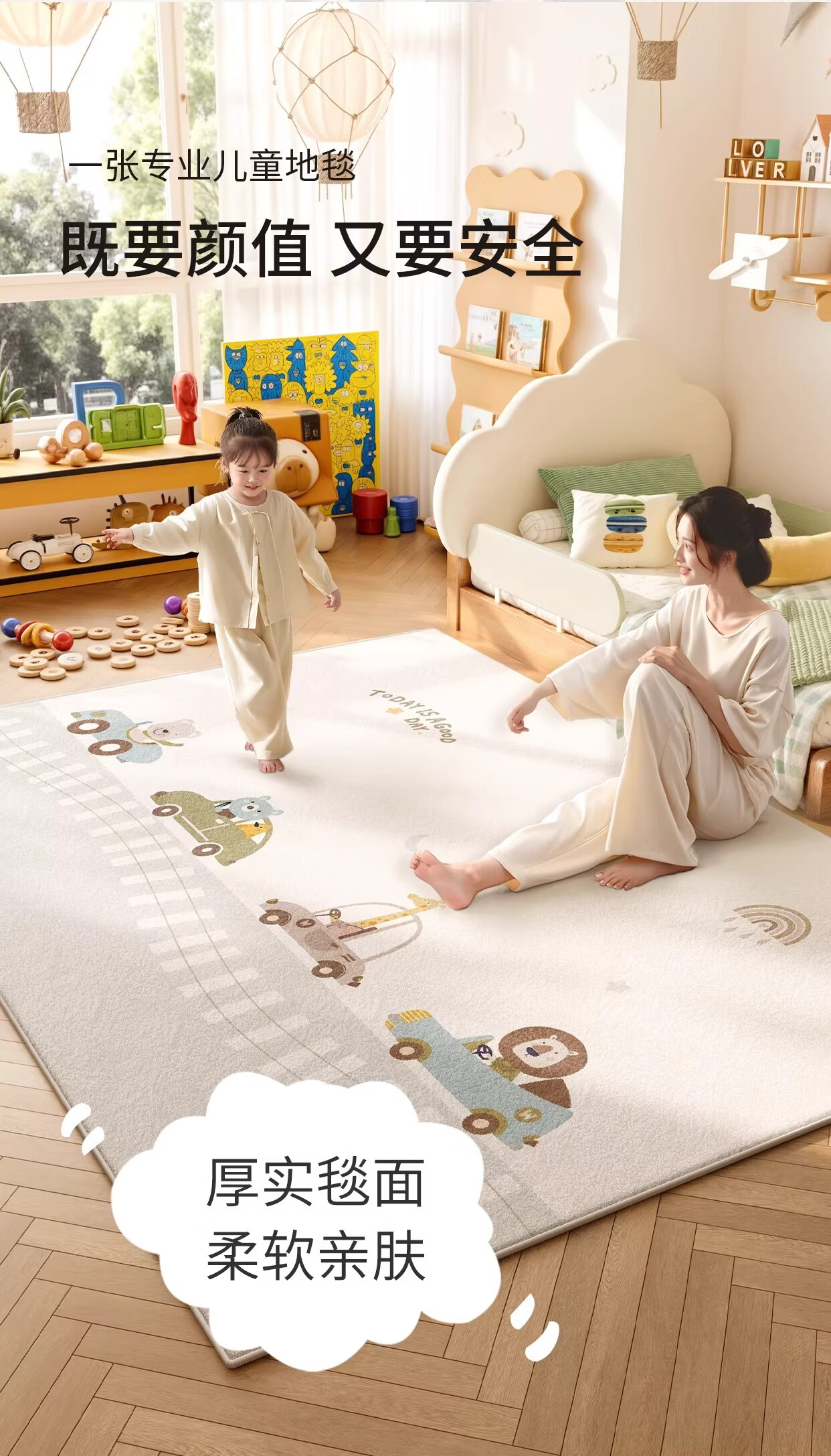 著忆地毯儿童房阅读区地垫卧室床边客厅2026新款女孩免打理毛绒多巴胺 S波斯绒-童话动物园 140x200CM【当季新款】
