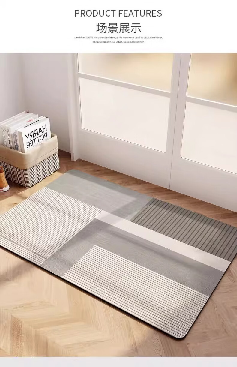 KAYE浴室吸水地垫卫生间门口速干防滑垫浴卫洗手间厕所脚垫硅藻泥垫子 GZN-Y白瓷-诗意相依 40X60cm