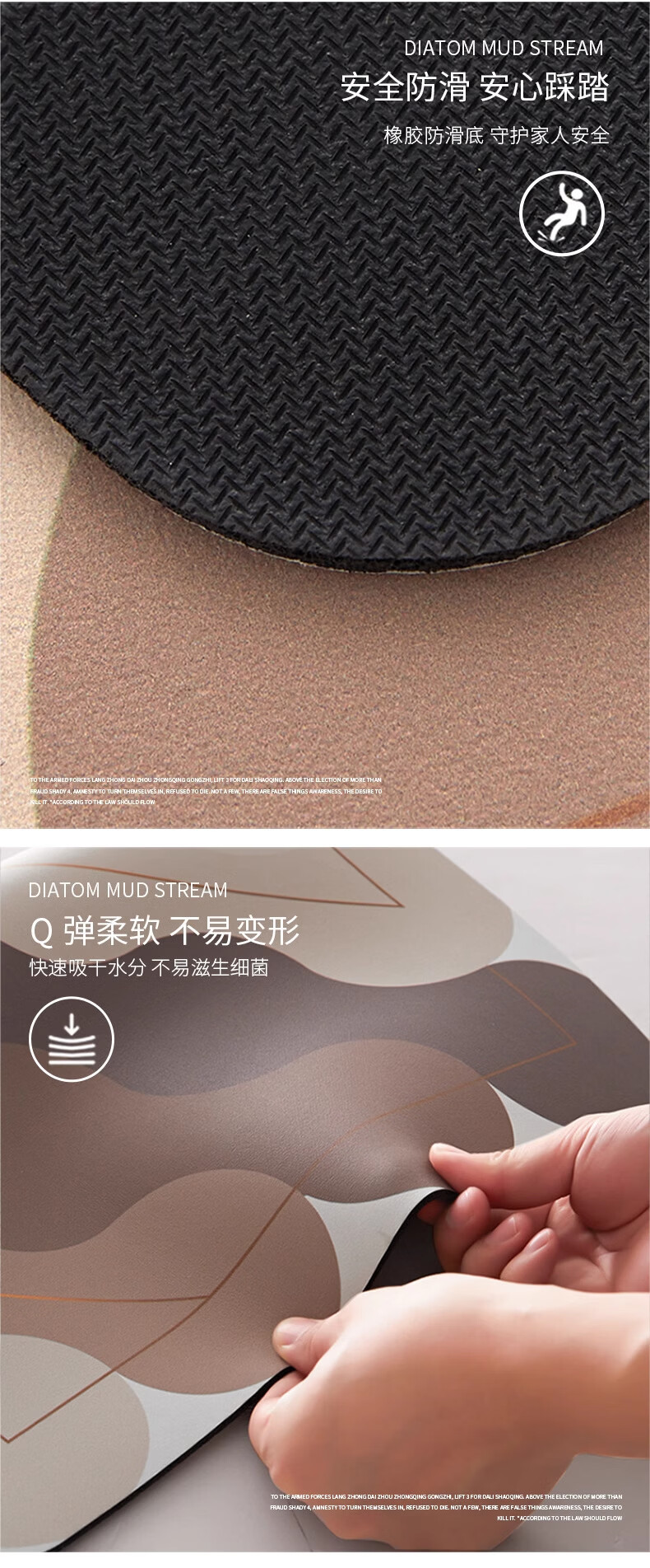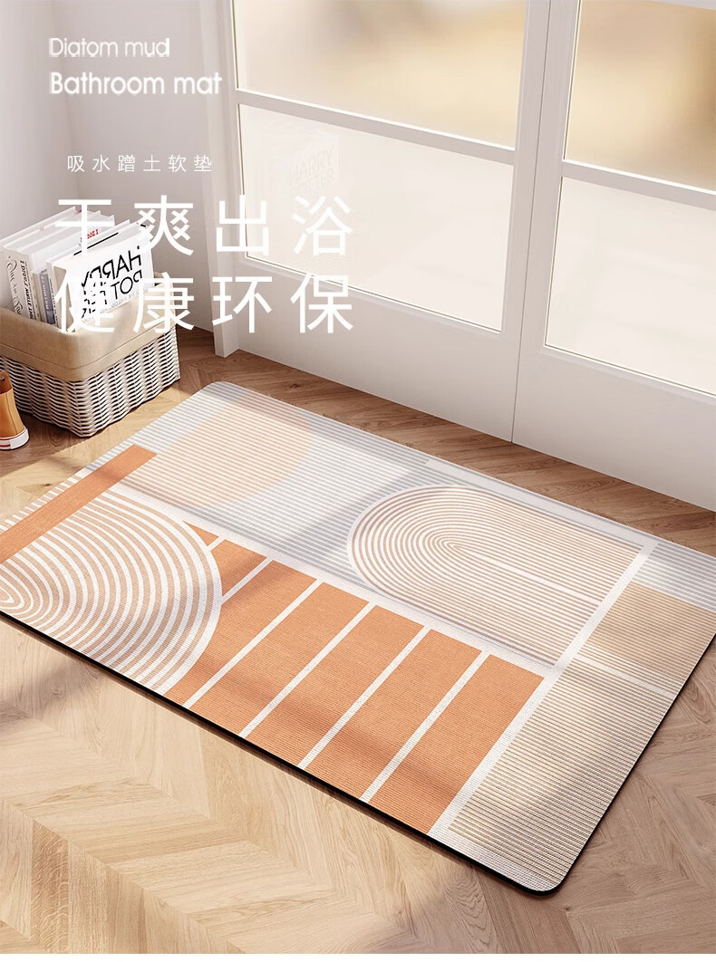 纤苏浴室地垫硅藻泥吸水速干脚垫卫生间防滑耐脏垫子家用厕所门口地毯 素色回纹棕 40*60cm(多数人的选择)