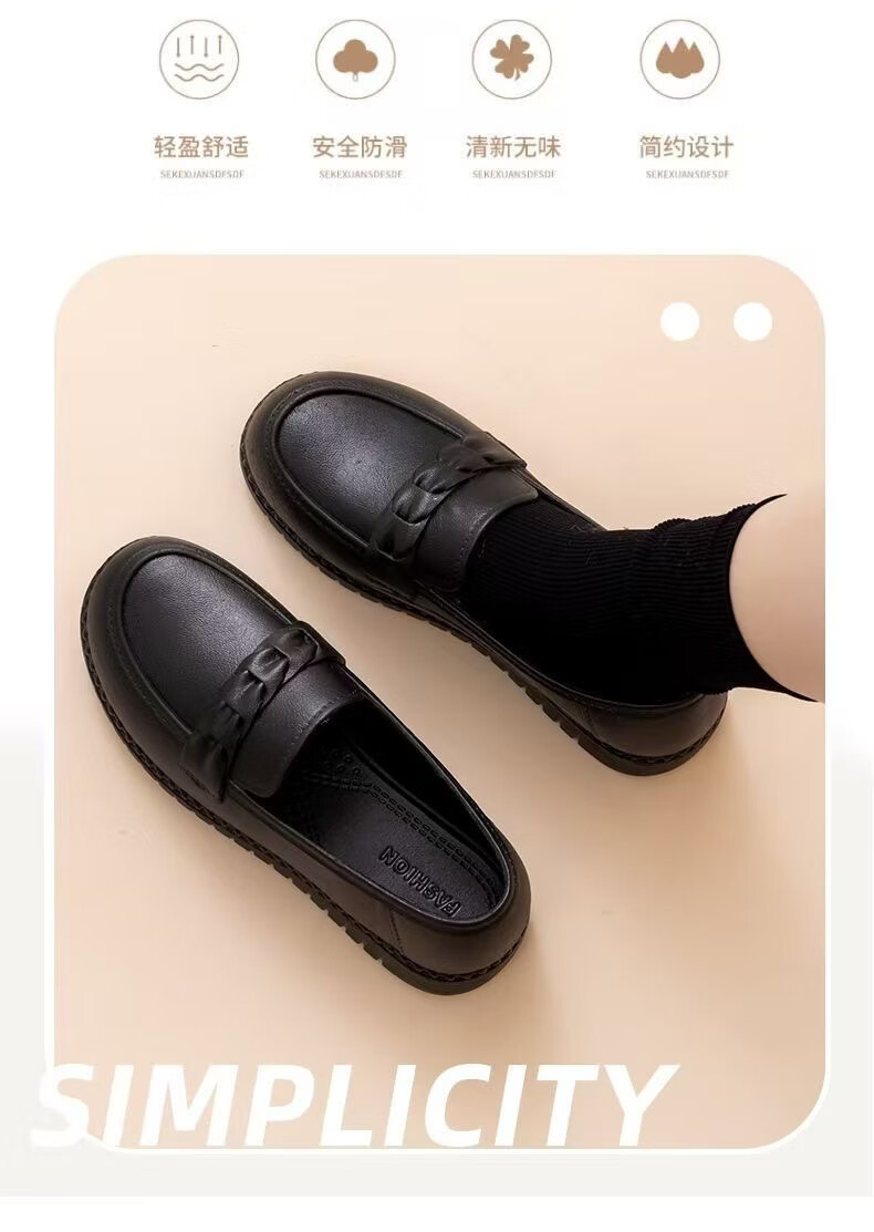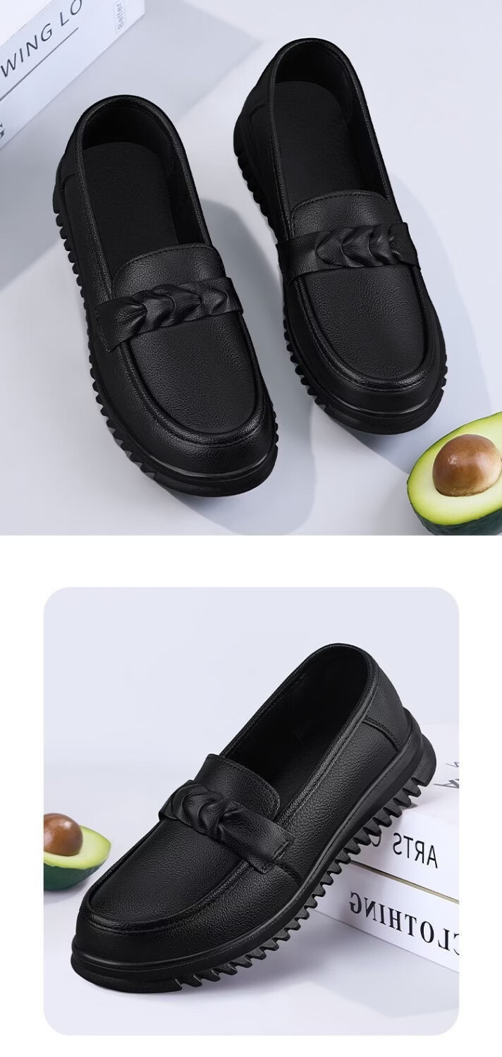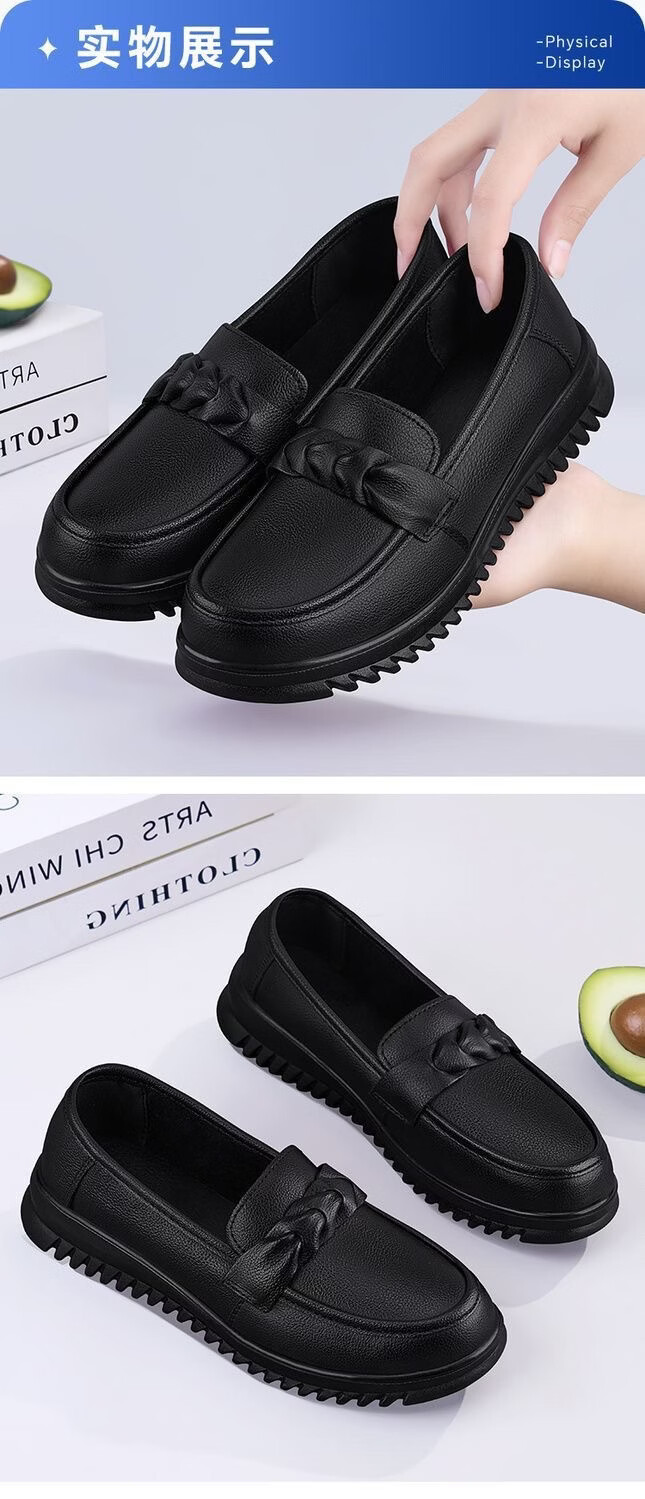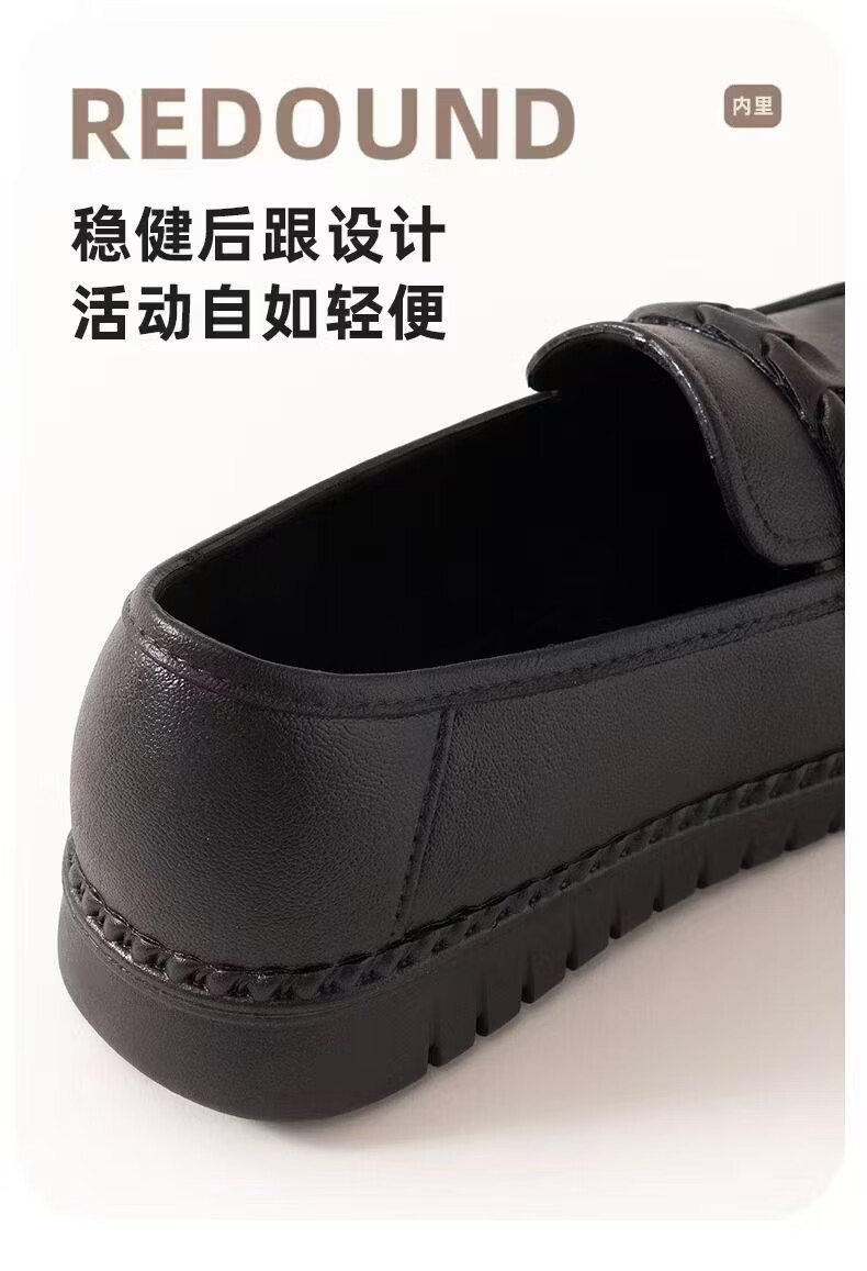 福虹辰2026新款春季女鞋纯色厨师鞋圆头乐福鞋休闲平底百搭防滑豆豆鞋Z 0212豆豆鞋-黑色 36-37 脚宽较大拍大一码