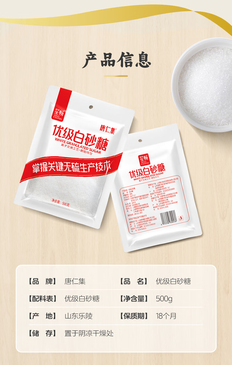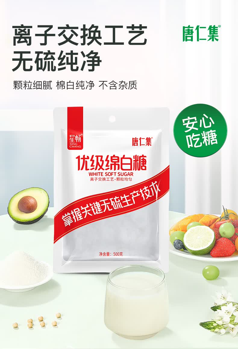 唐仁集优级绵白糖500g 家庭小包装厨房烹饪烘焙调味调料 冲饮咖啡伴侣