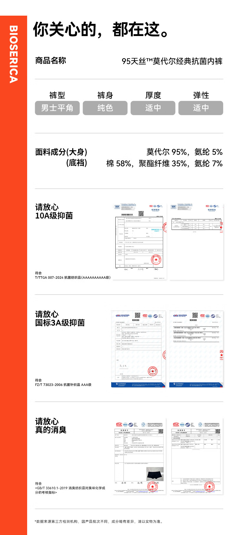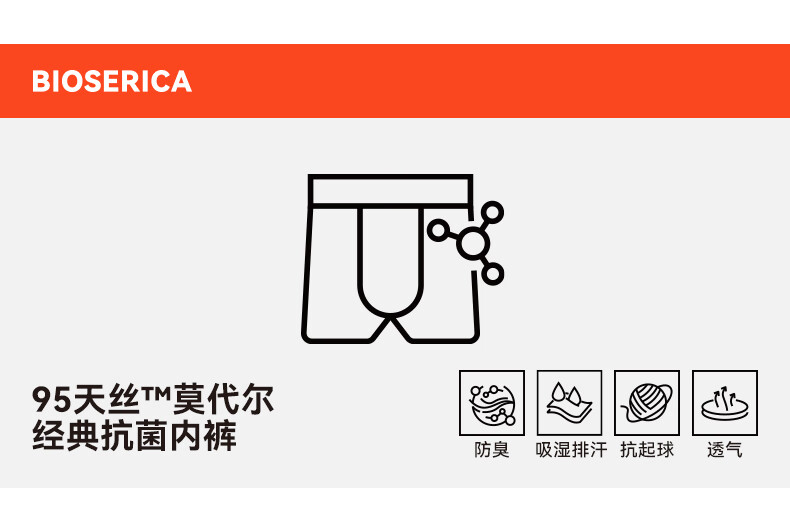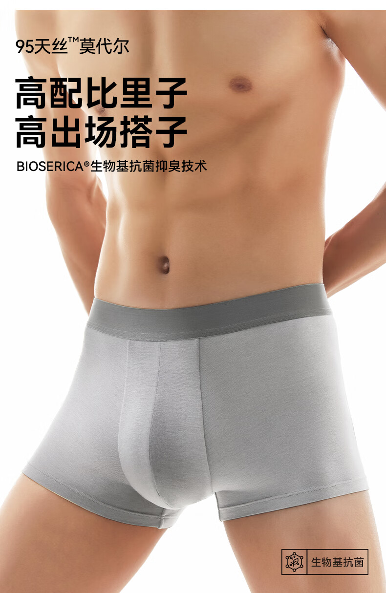禾素时代(Bioserica ERA)10A抑菌底裆男士内裤莫代尔平角裤抗菌抑菌裆透气排湿男裤衩内裤 颜色随机 5条 2XL