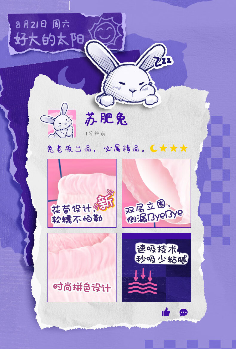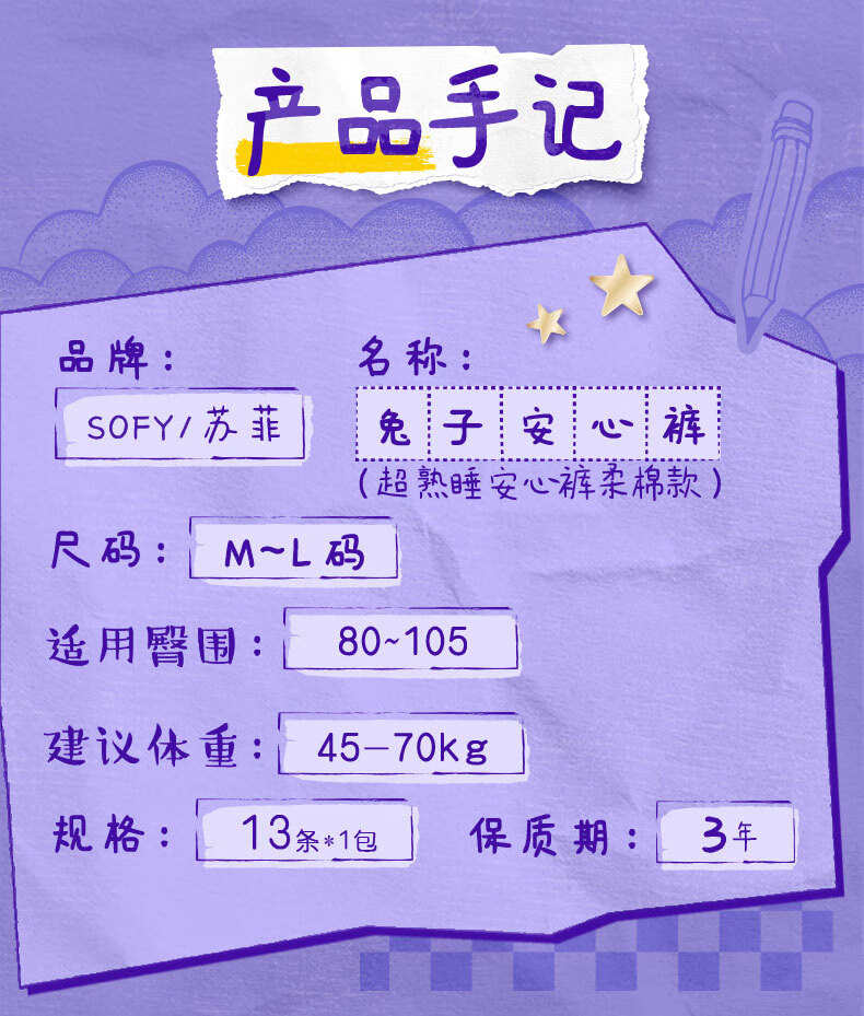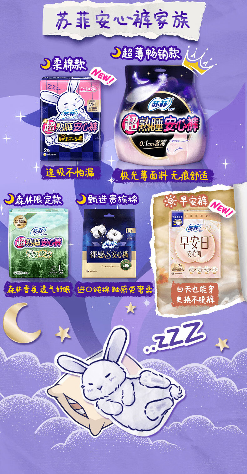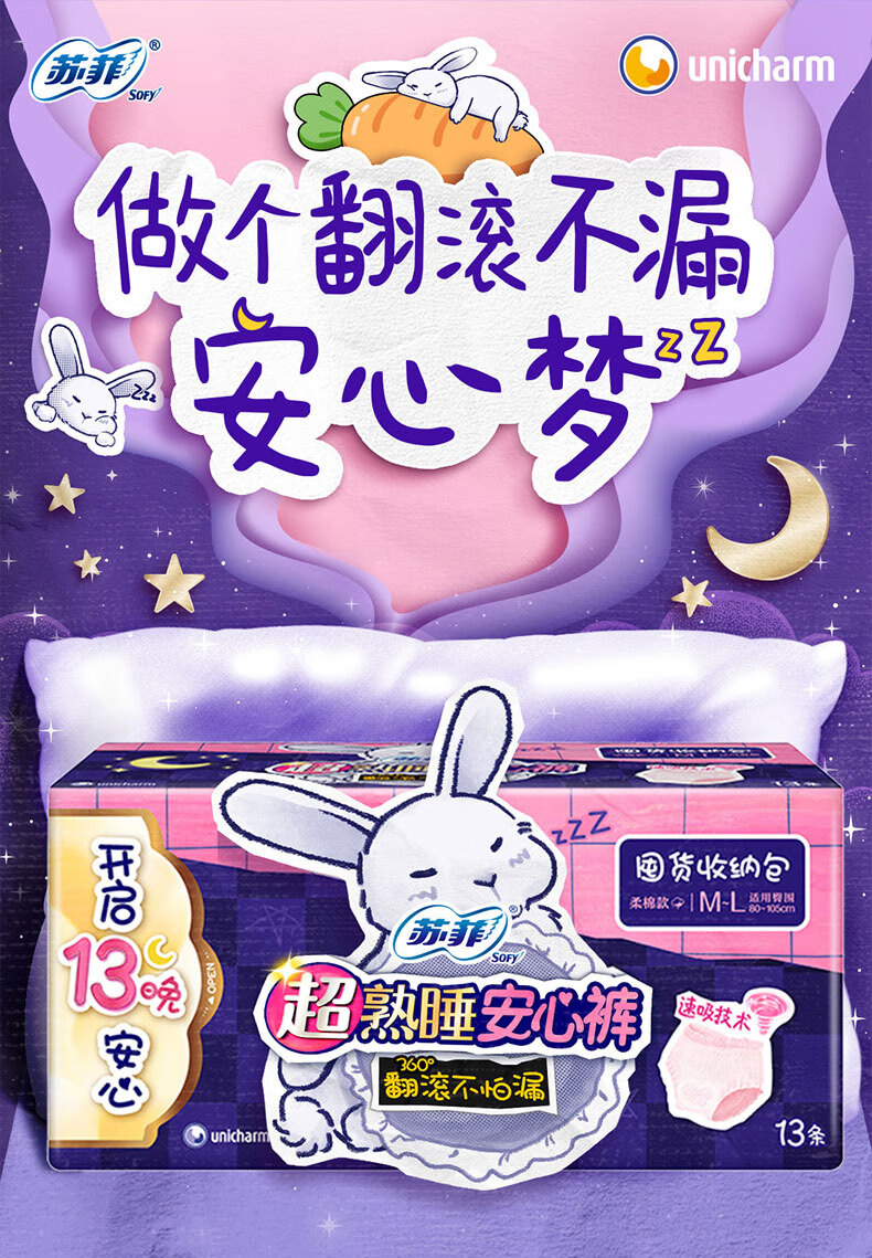 苏菲超熟睡兔子安心裤加量装M~L码13条 少女速吸安睡裤自营官方旗舰店