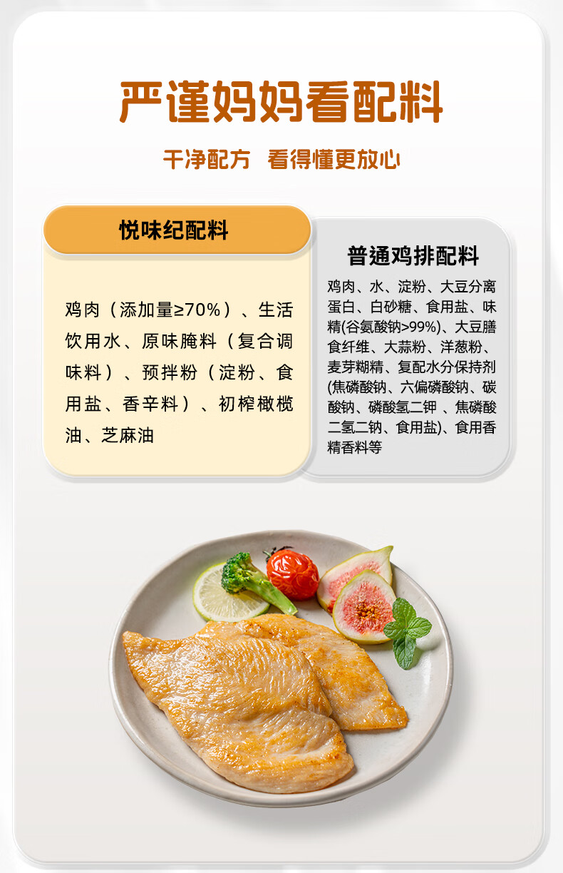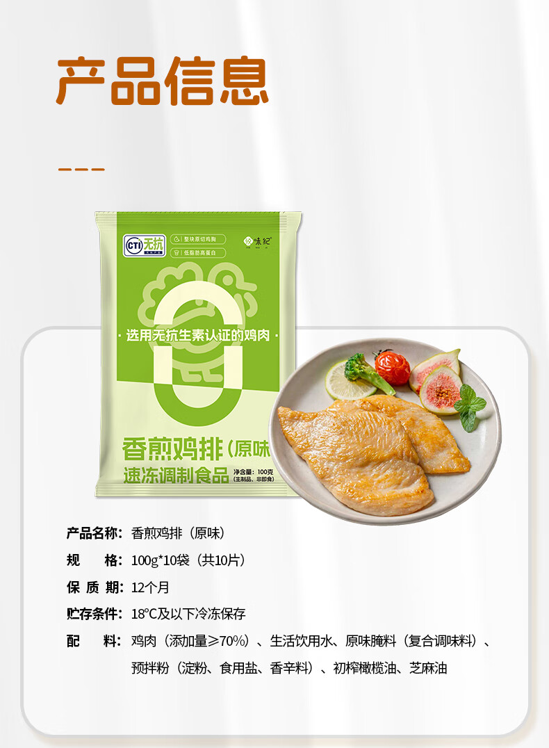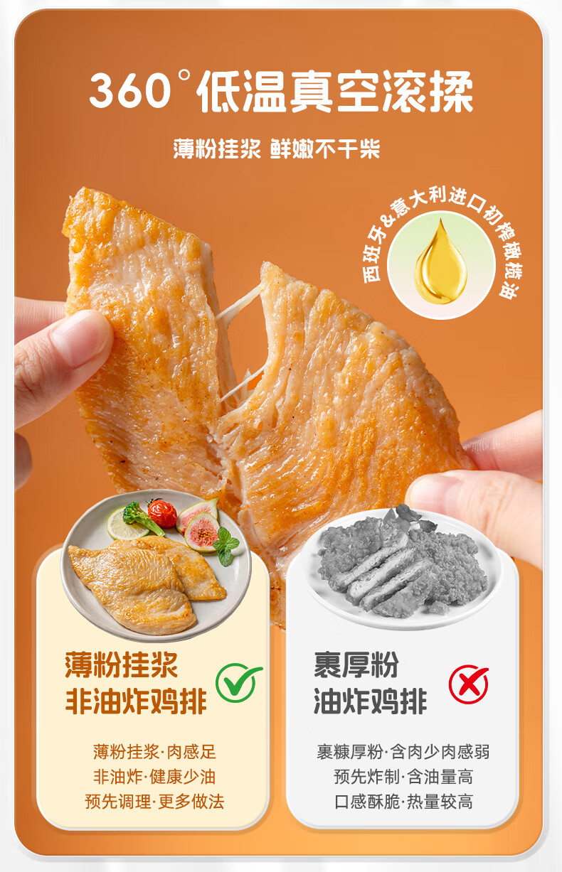悦味纪 无抗橄榄油鸡排100g*10片(原味)儿童早餐低脂高蛋白鸡胸肉轻食
