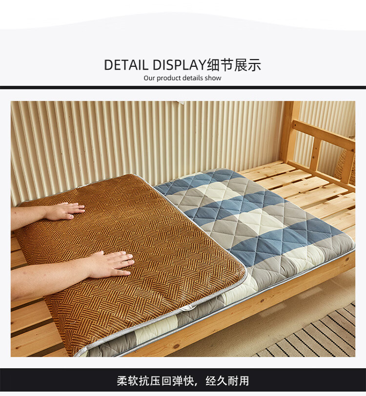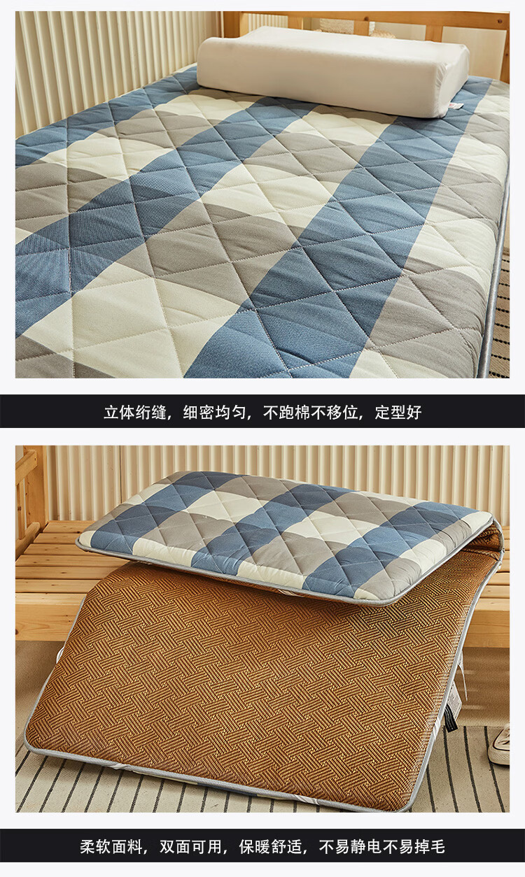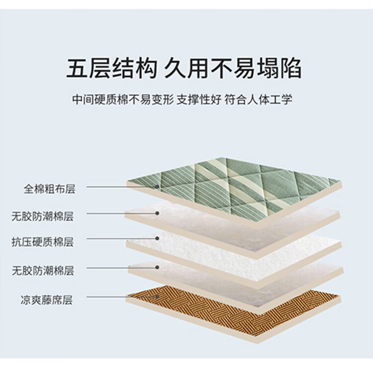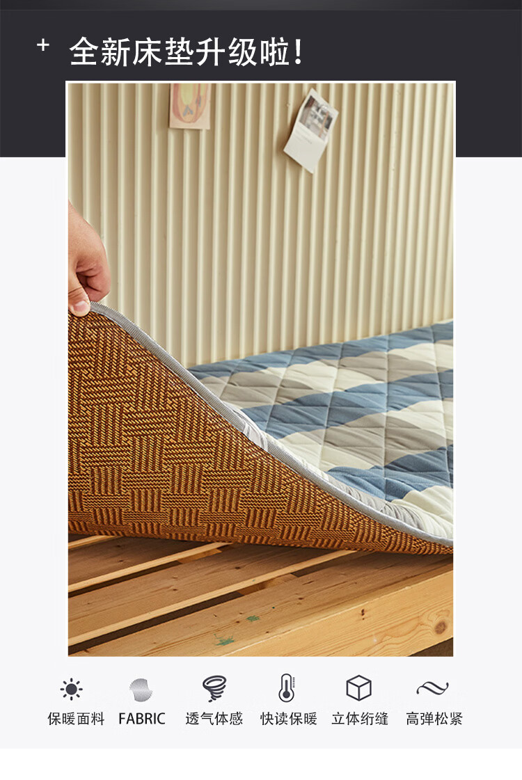 富安娜A类抗菌凉席可机洗冰丝席夏季凉感席子可折叠软席三件套1.8米x2米