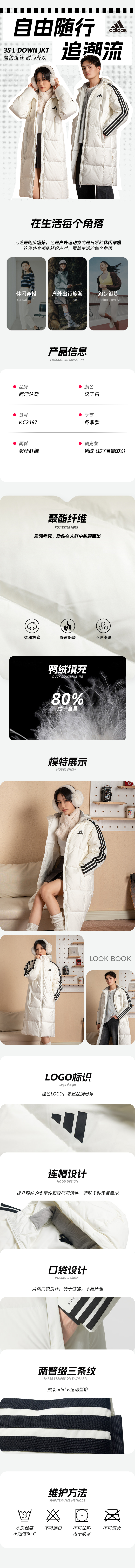 阿迪达斯(adidas) 长款羽绒服男款女款 25冬季防寒保暖运动休闲连帽过膝鸭绒服外套 KC2497 白色/男女同款 M
