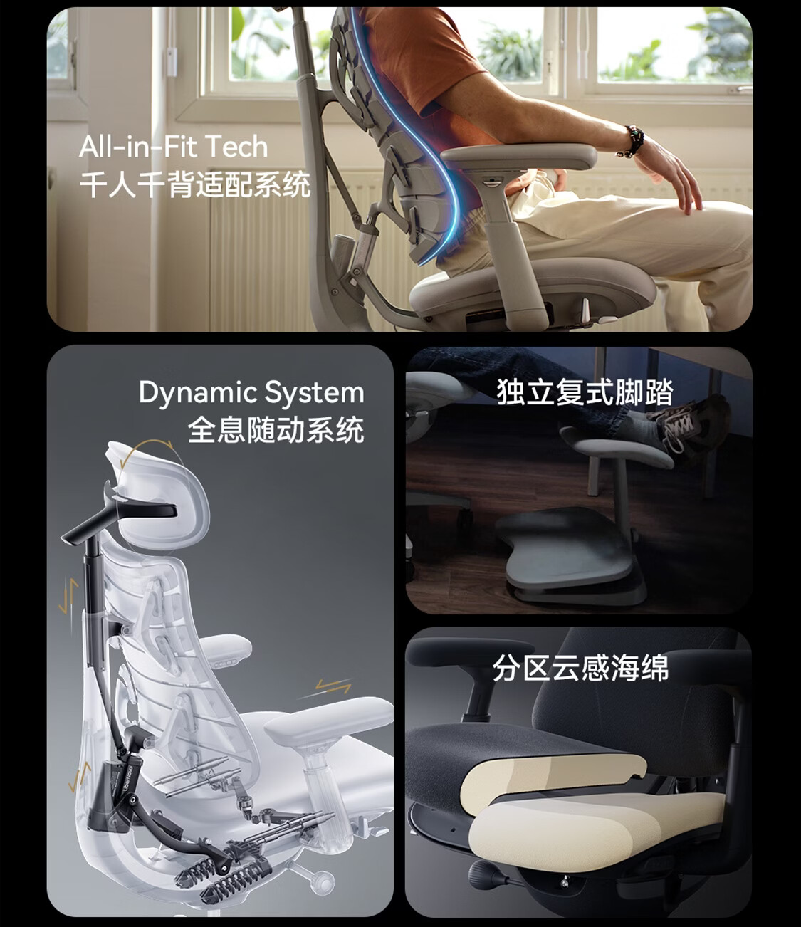 清闲LiberNovo Omni动态人机工学椅人体电脑办公OC-1Pro石墨灰加长版