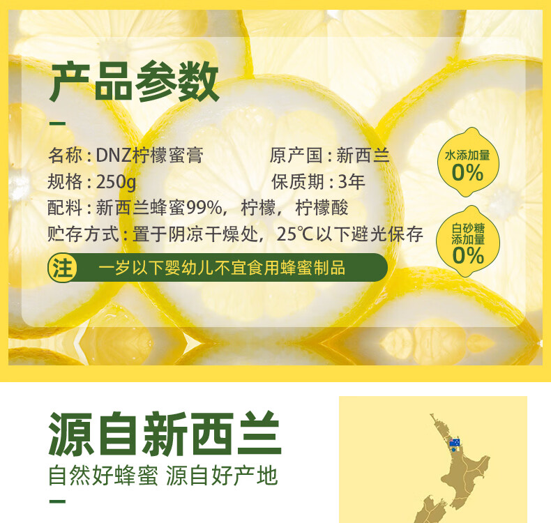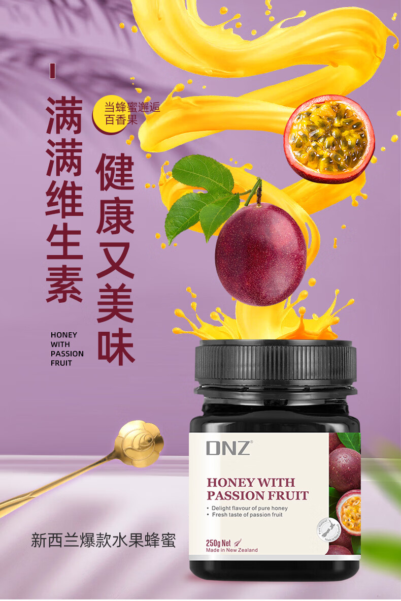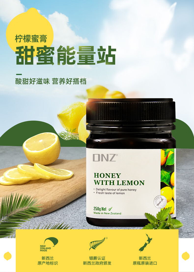 DNZ新西兰原装进口多花百香果柠檬蜜膏多口味250g 节日礼物品伴手礼 柠檬蜜 250g*1瓶