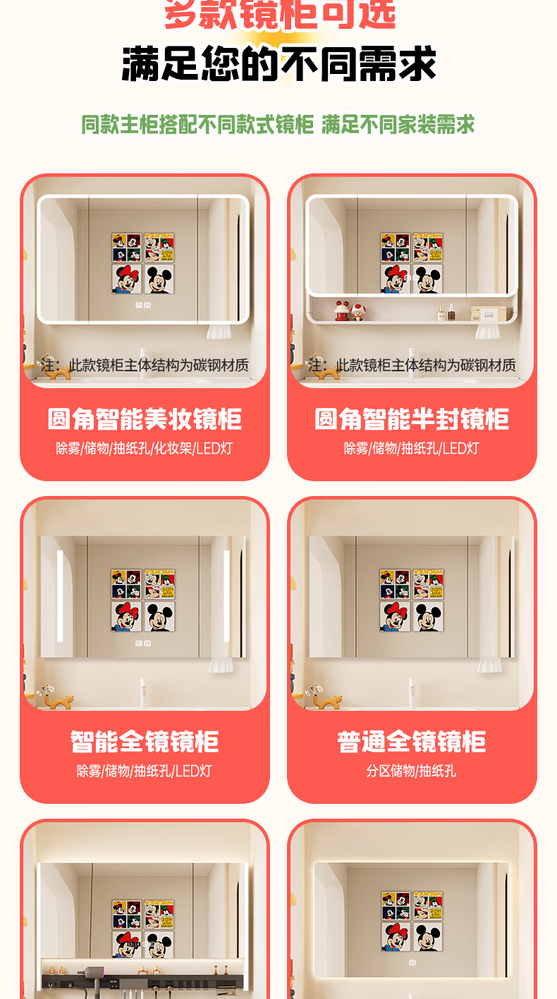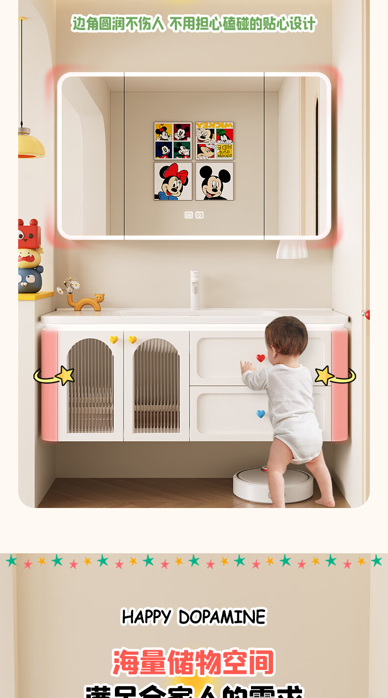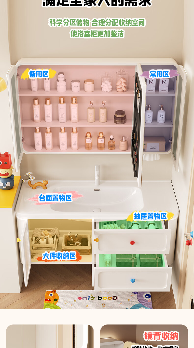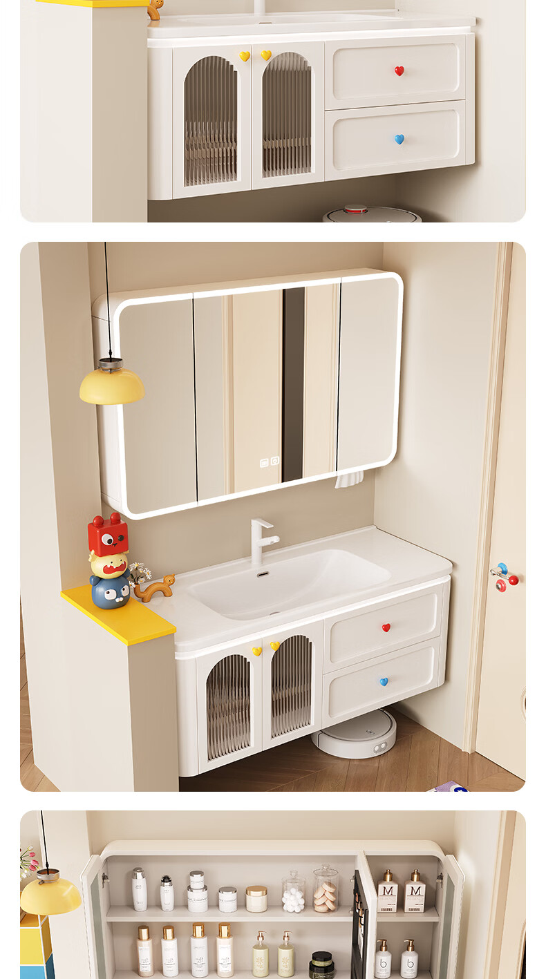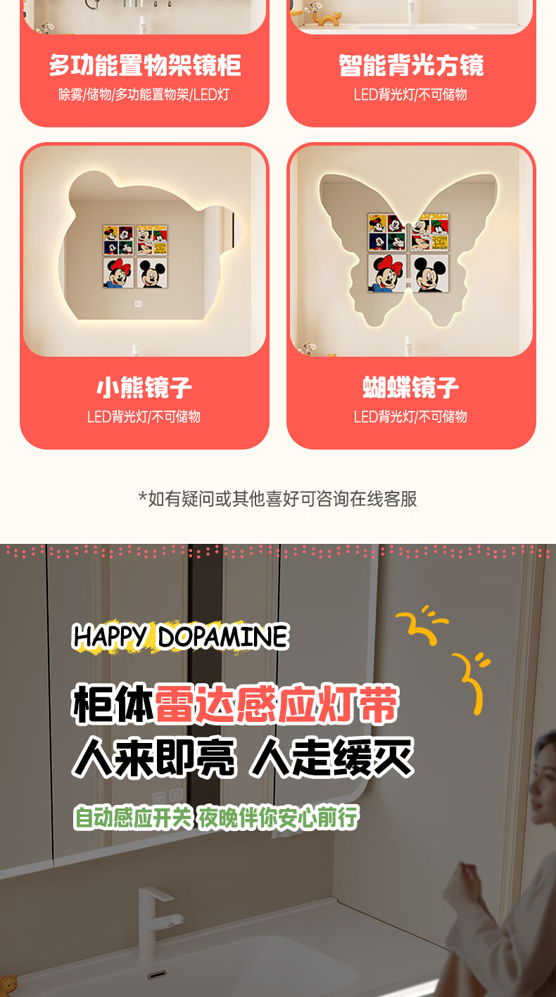 浴美优品多巴胺浴室柜陶瓷一体盆卫生间洗手盆洗脸盆柜组合浴柜洗漱台镜柜 多巴胺60cm+智能圆弧全封镜柜+盆