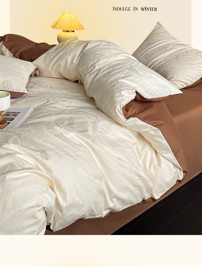 无印良品全棉磨毛提花四件套100%纯棉床单被套轻奢高级感床笠裸睡床上用品 山也海海-月白 【60s新疆长绒棉】 1.8m 床单款 四件套-被套200x230cm
