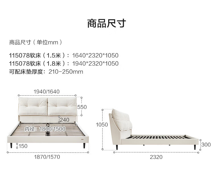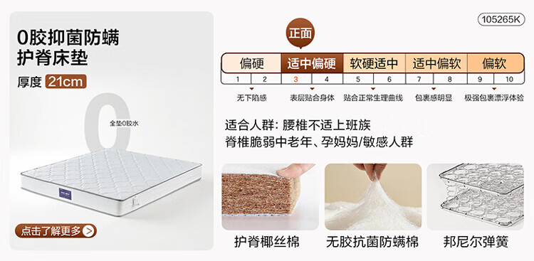 全友家居 独立袋装弹簧乳胶椰棕床垫1.8米x2米席梦思酒店床垫偏硬护脊