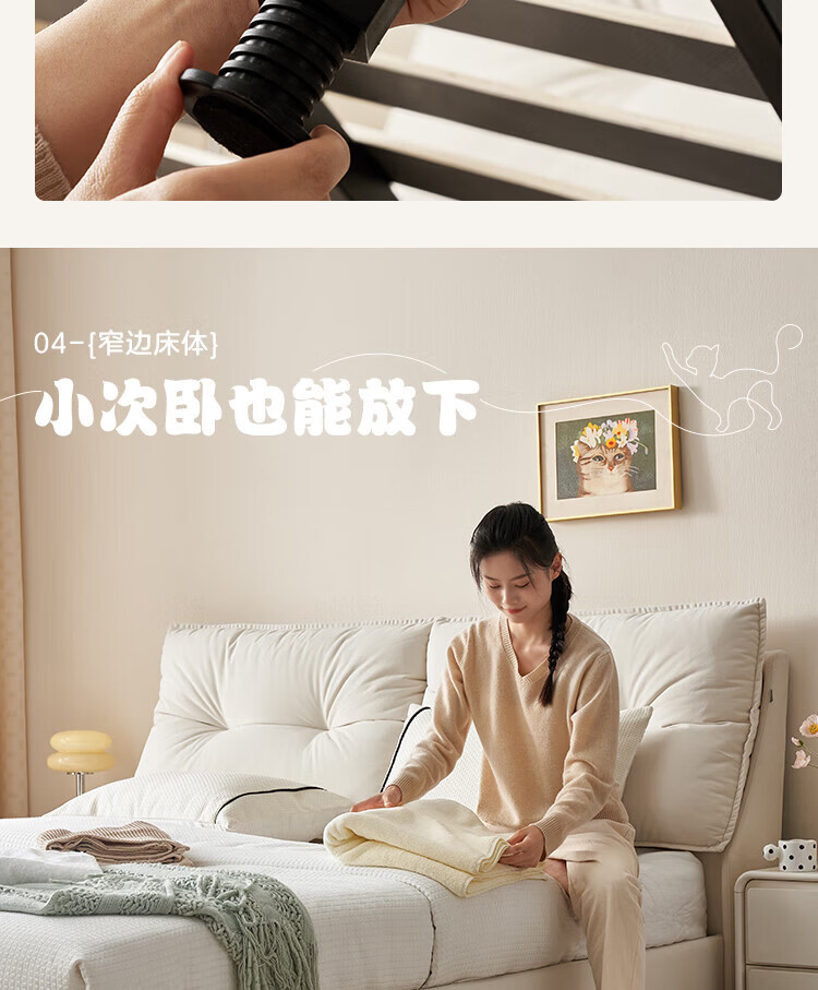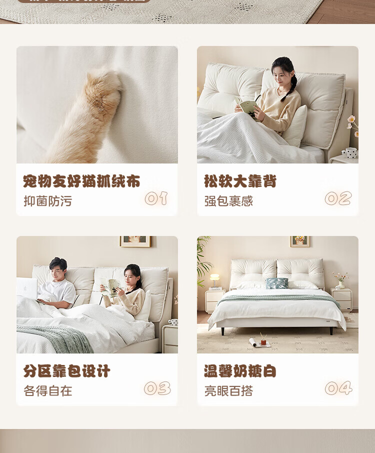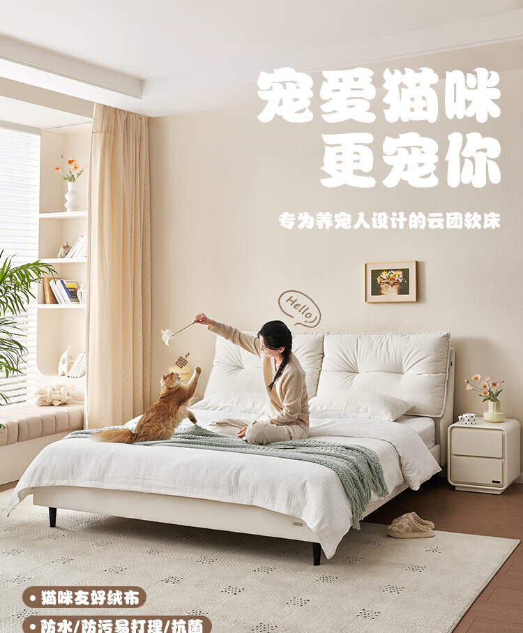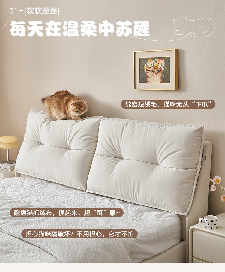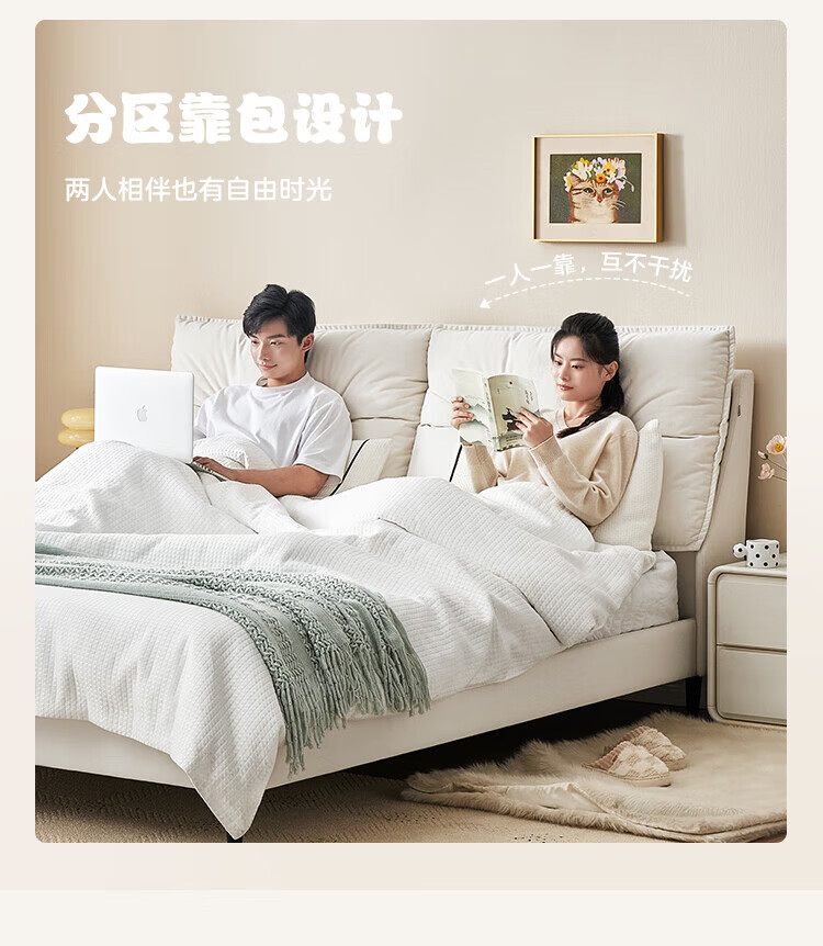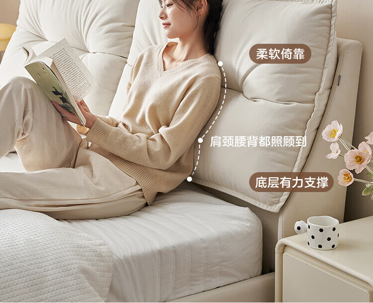顾家家居(KUKA)轻奢风半青皮床双人床卧室羽毛填充B215【心想事橙】半青皮1.8m