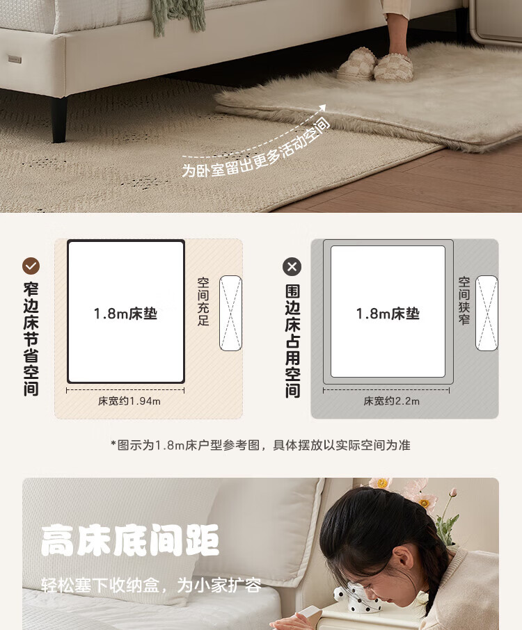 全友家居 现代简约主卧室公主床1.5x2米美式板式床双人大床高脚床婚床