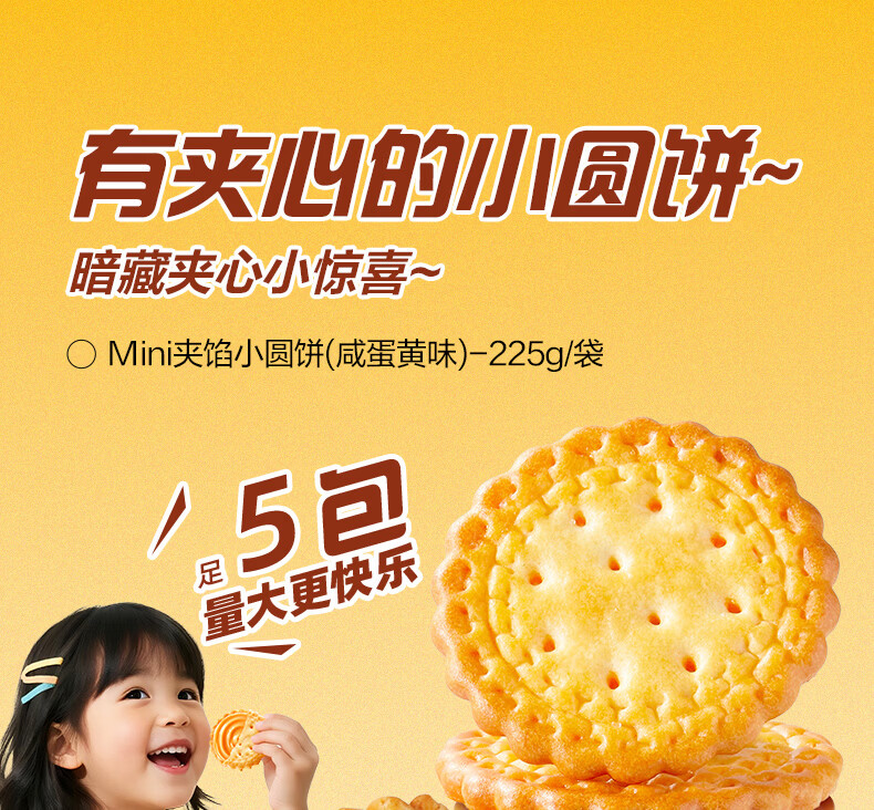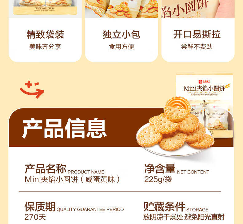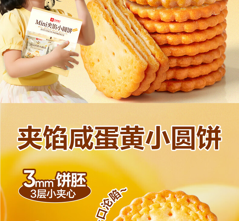 良品铺子Mini夹馅小圆饼225g咸蛋黄饼干夹心饼干代餐下午茶办公室休闲零食
