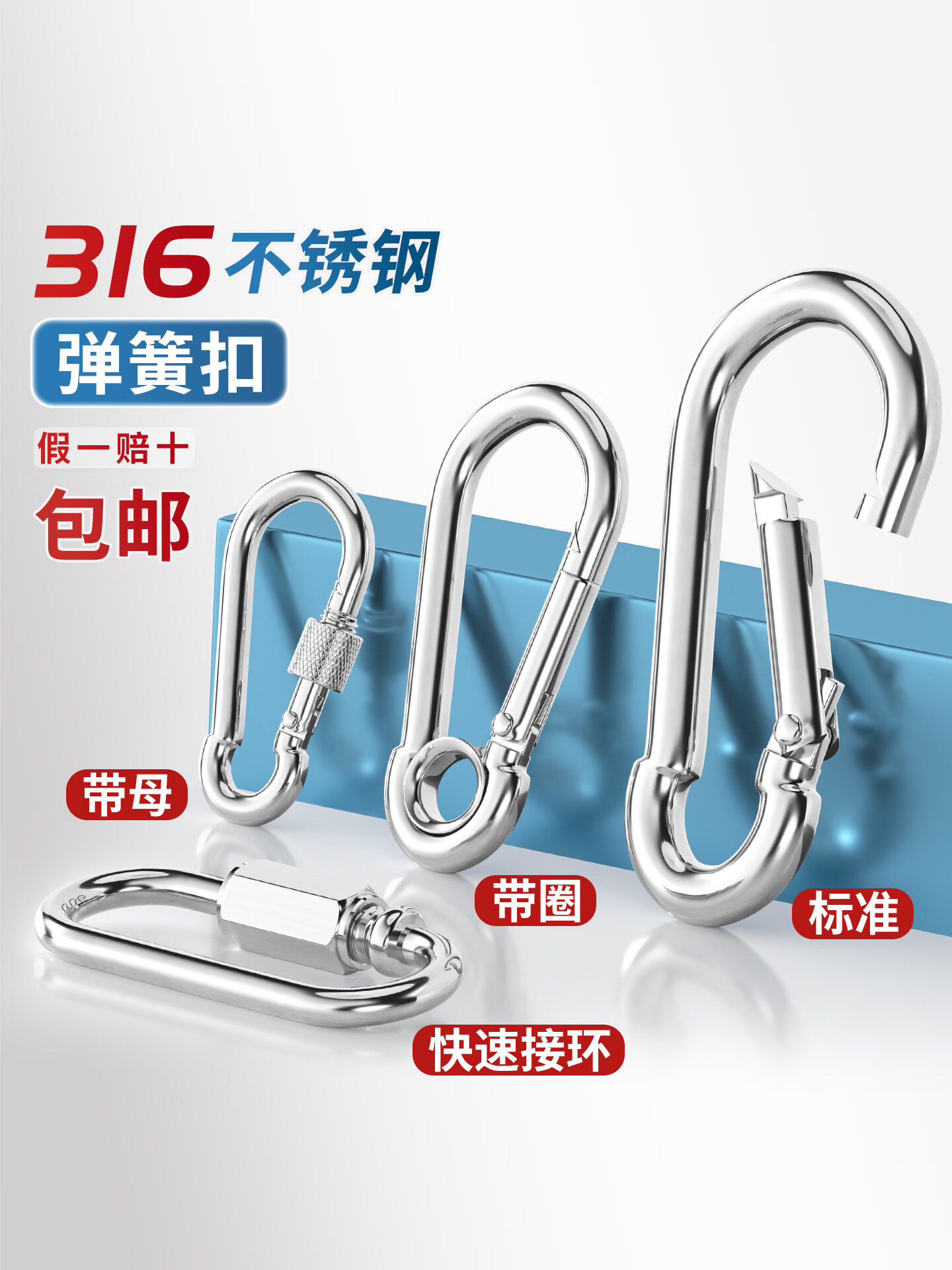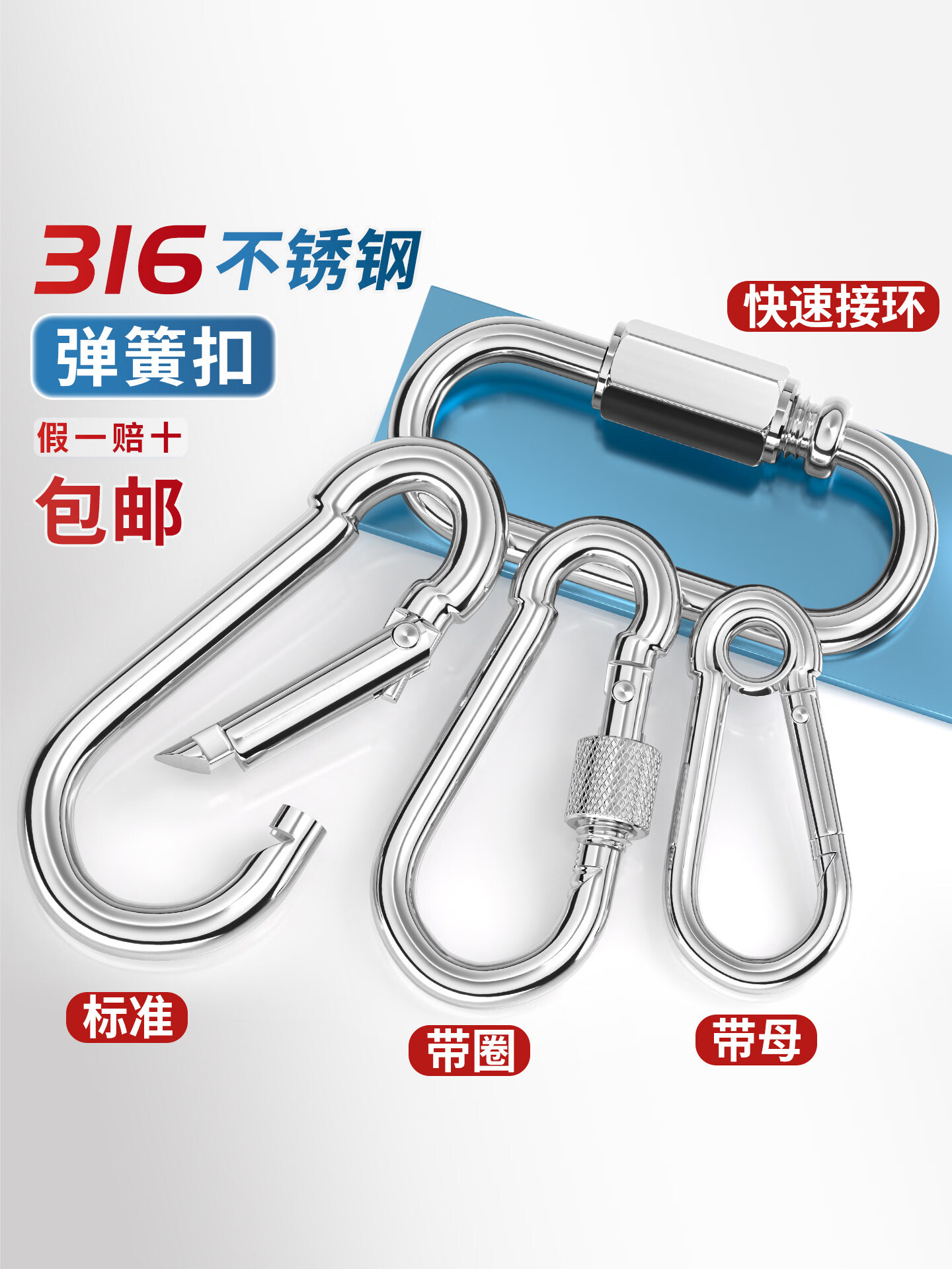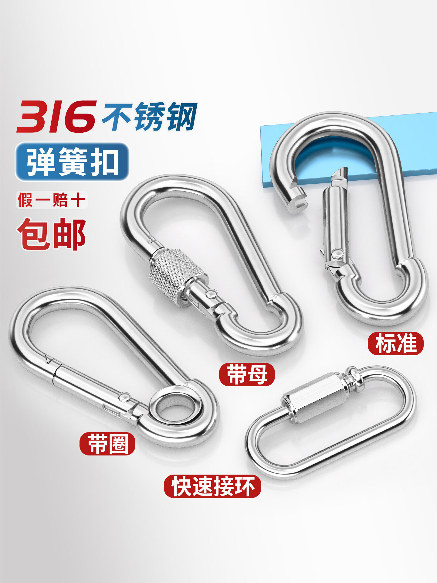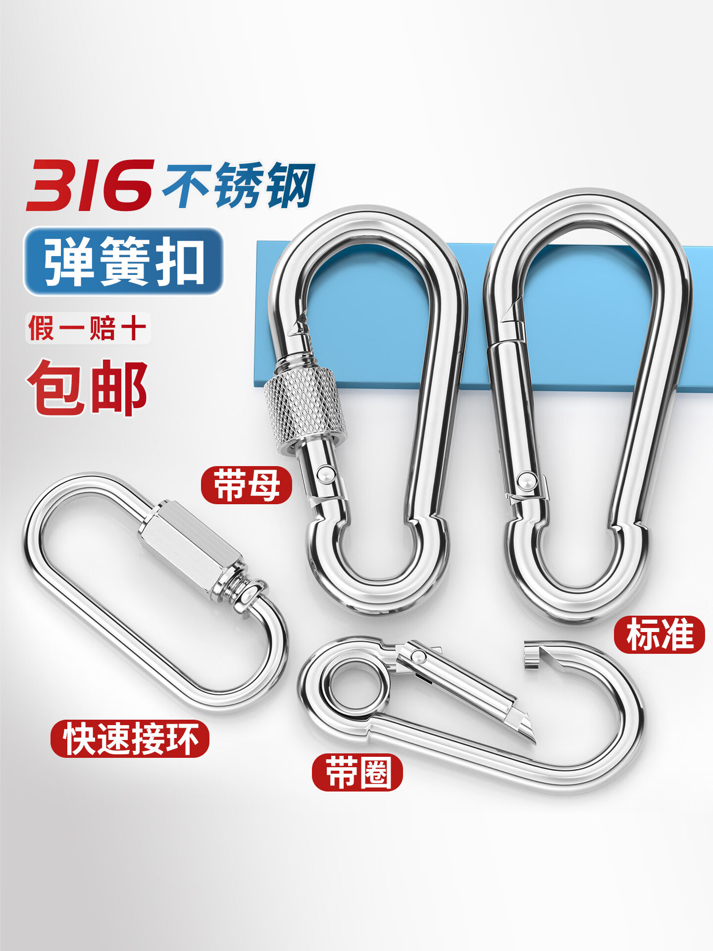 天卓五金316不锈钢弹簧扣登山扣保险扣钥匙扣葫芦扣螺母弹簧带圈扣狗链扣 M4(316标准型)【2只】