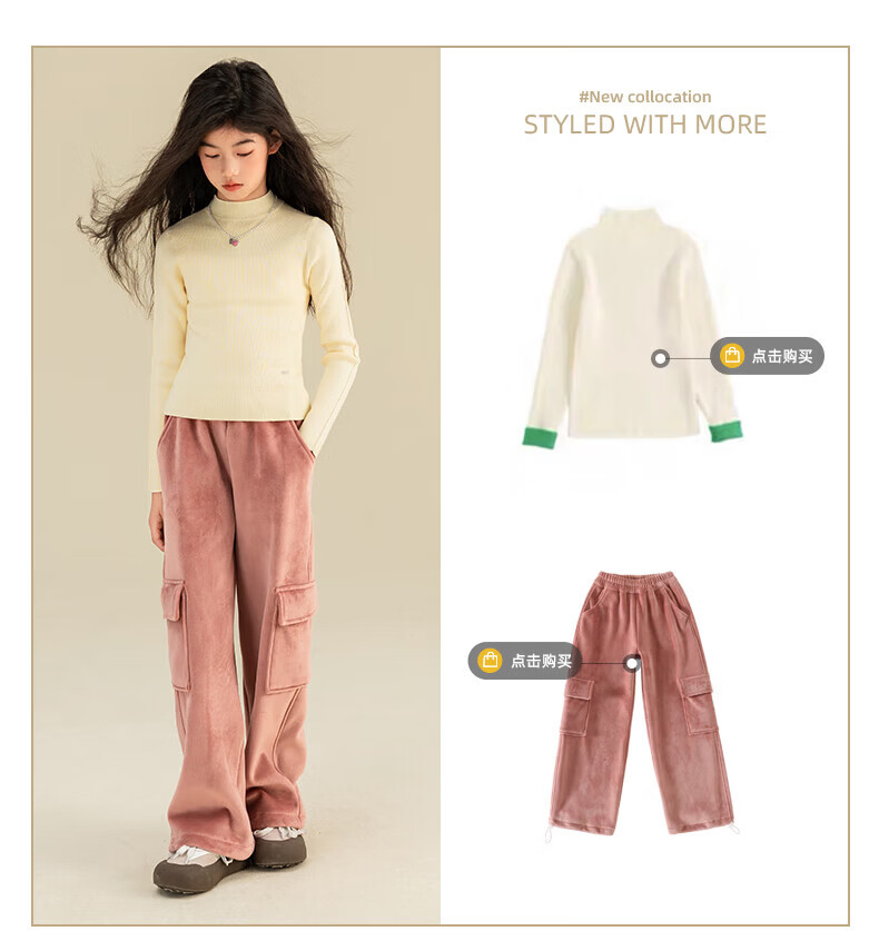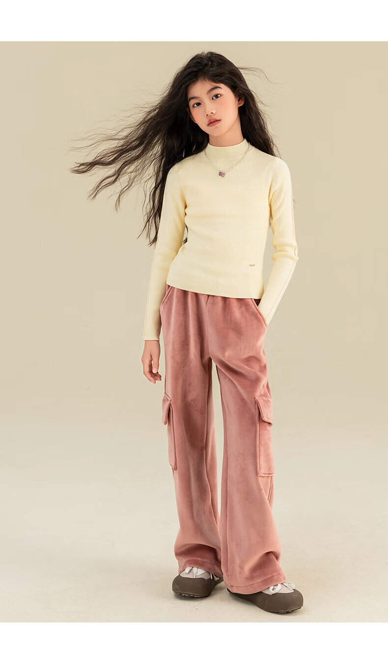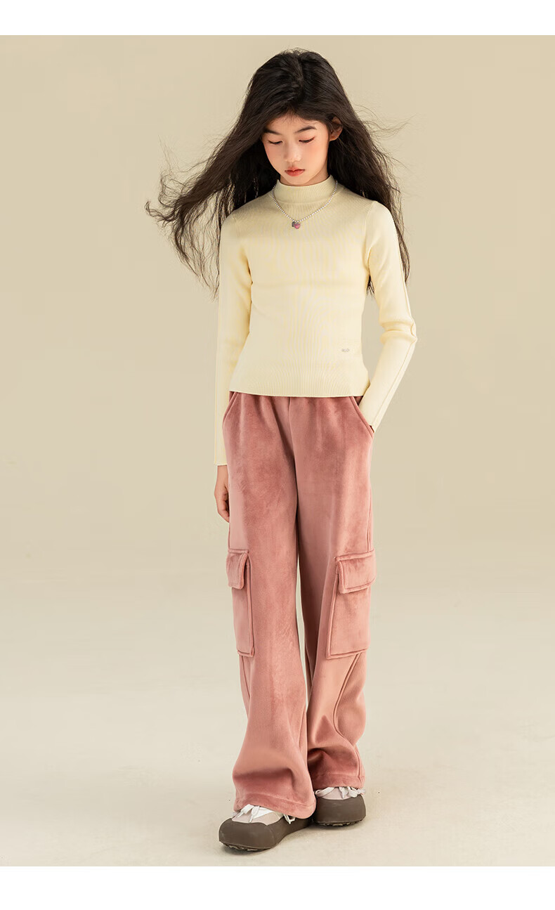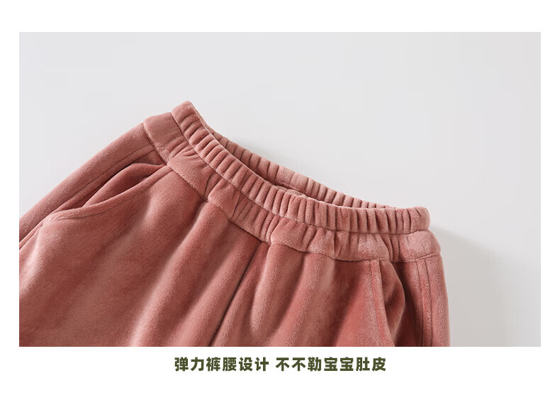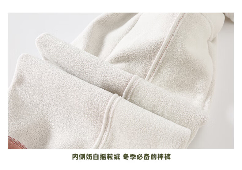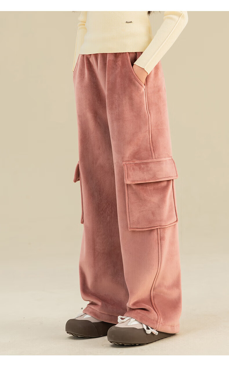 淘町女童裤子加绒秋冬中大童大口袋一体绒粉色宽松女宝工装裤 灰粉色 170
