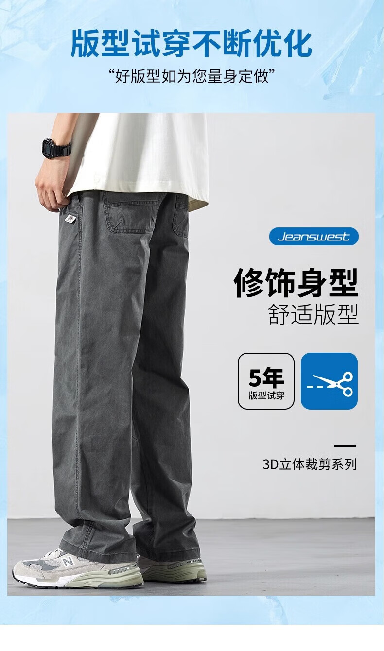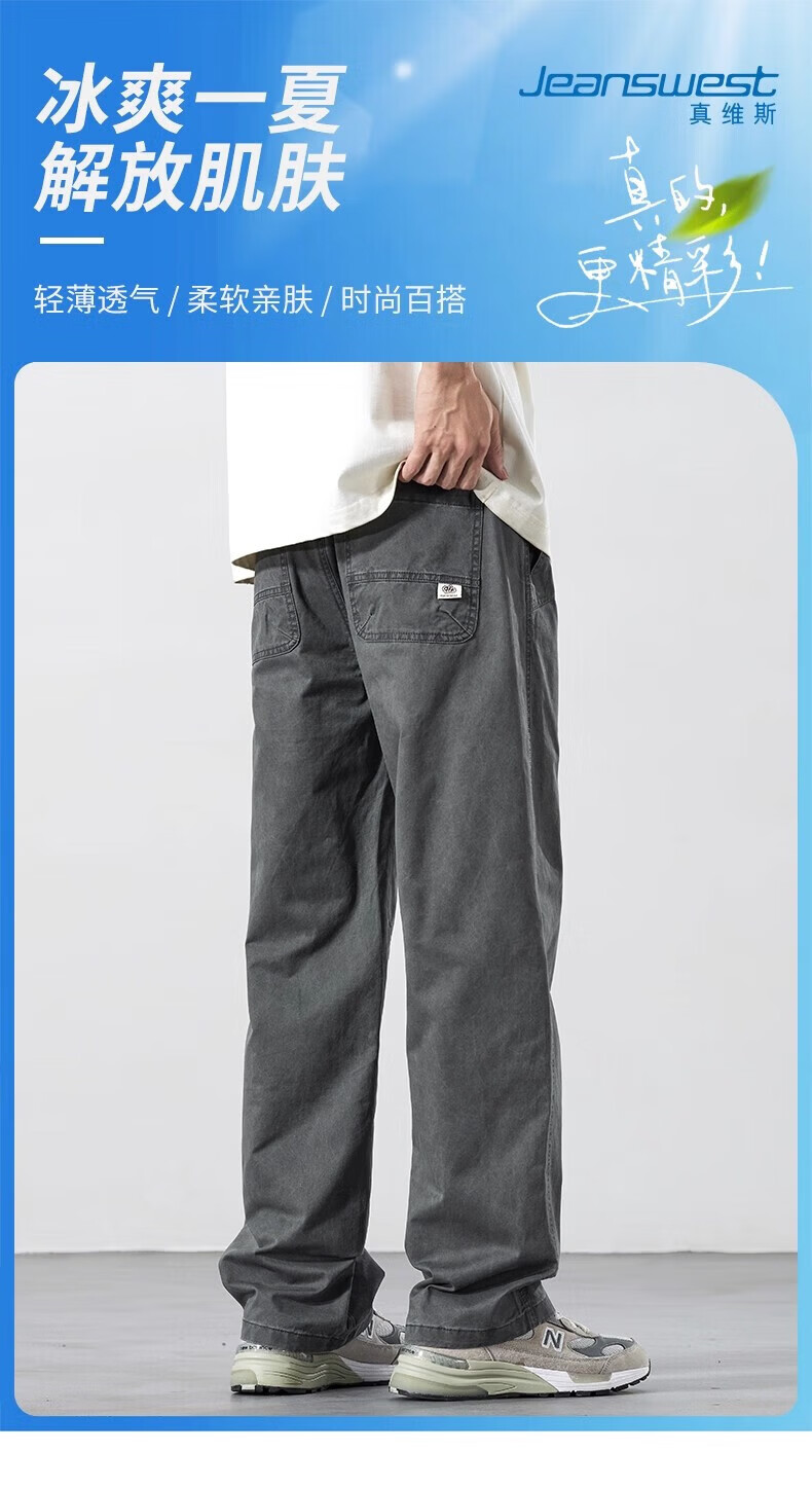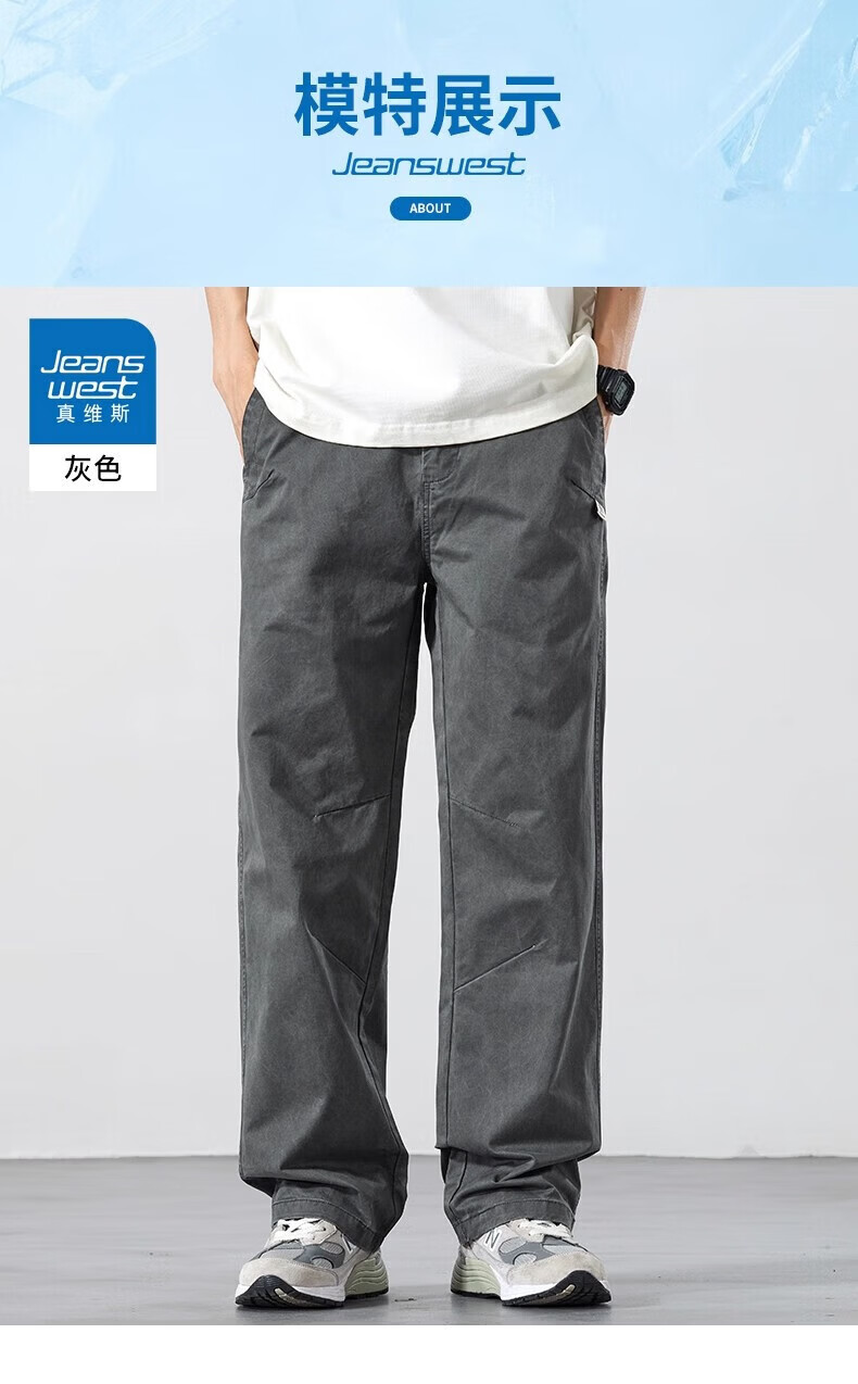 真维斯(Jeanswest)2026新款春夏新款纯棉休闲裤男士宽松直筒百搭薄款运动工装长裤子 灰色【纯棉舒适】 M 【建议90-110斤】