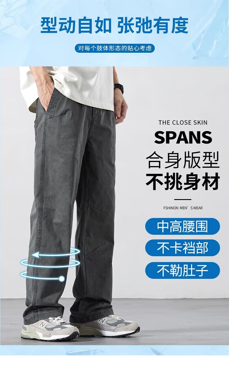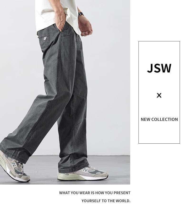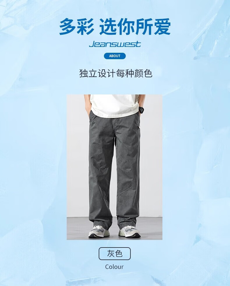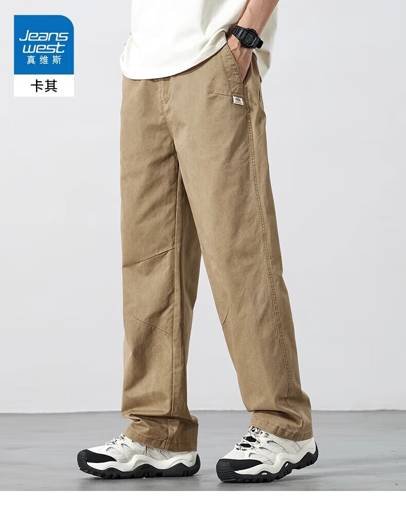 真维斯(Jeanswest)2026新款春夏新款纯棉休闲裤男士宽松直筒百搭薄款运动工装长裤子 灰色【纯棉舒适】 M 【建议90-110斤】