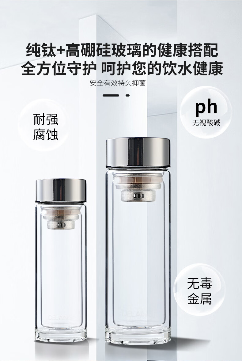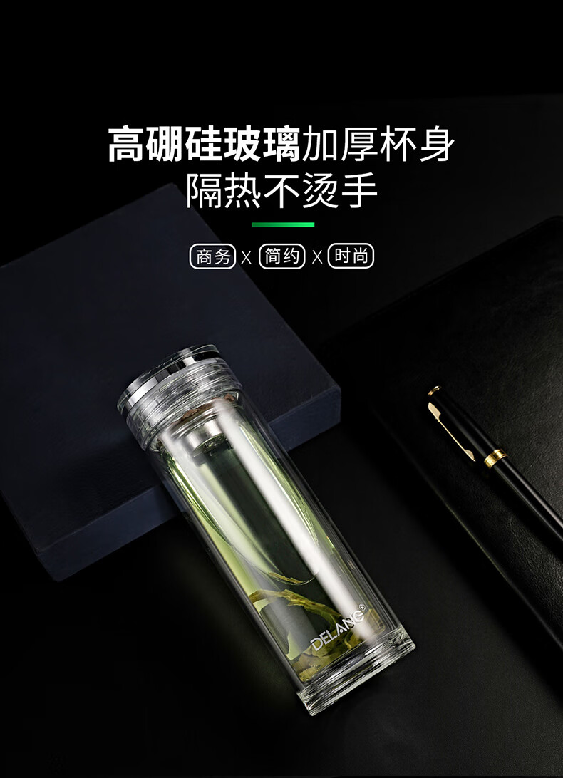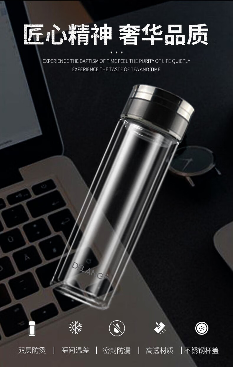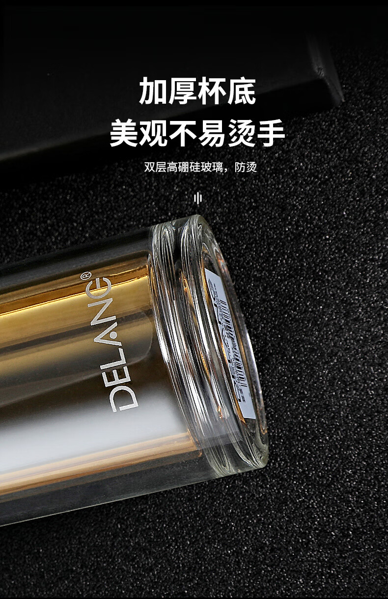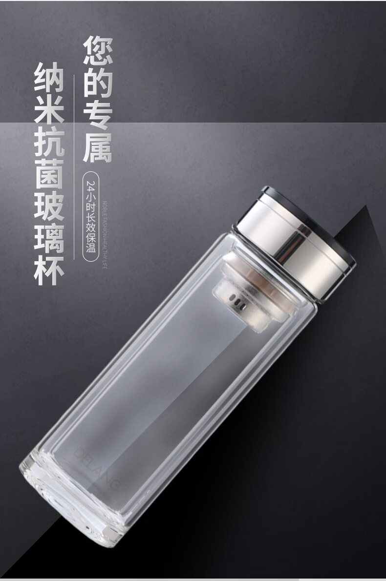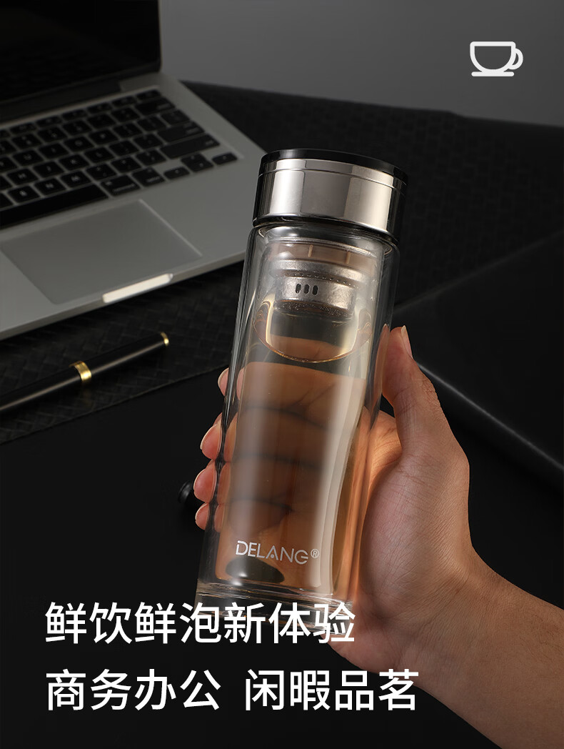 德琅(DELANG)德国品牌水杯双层玻璃杯商务办公玻璃杯 茶水分离杯8001-钢本色-独立茶仓