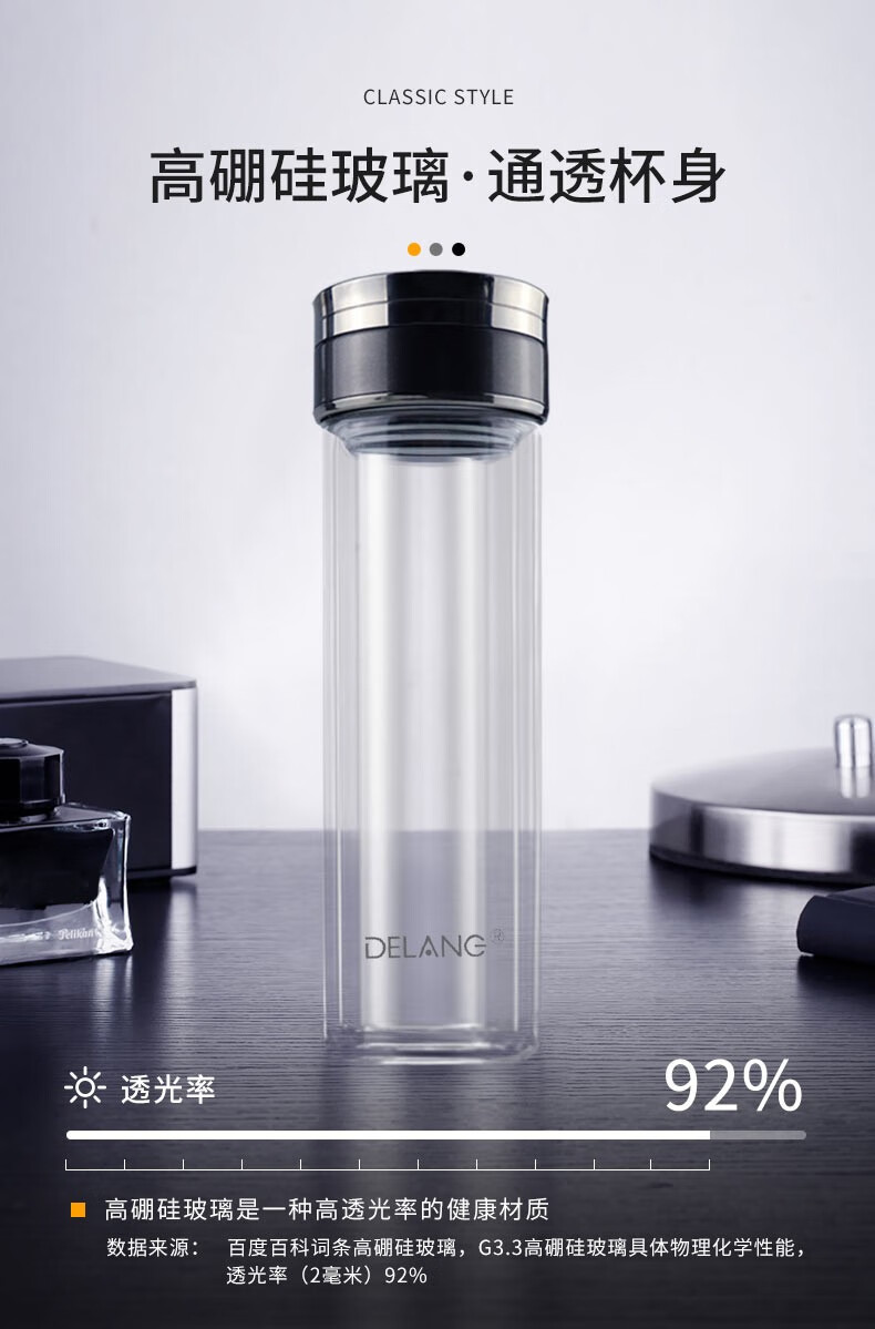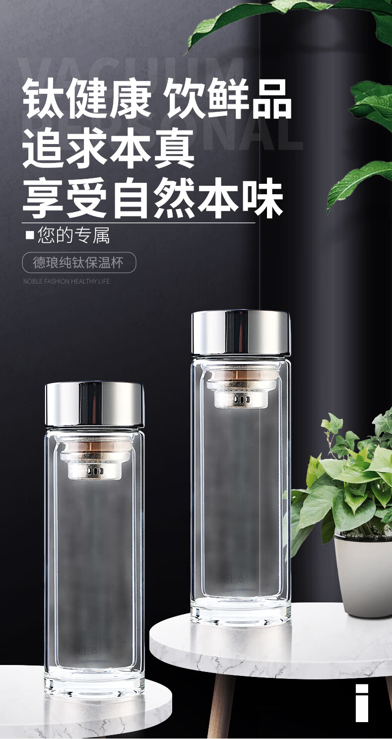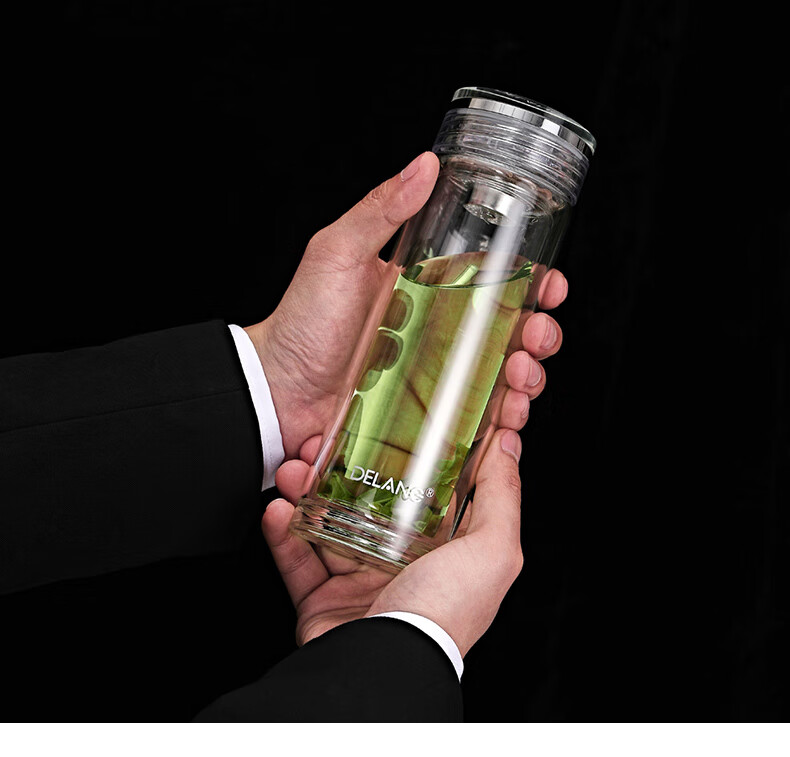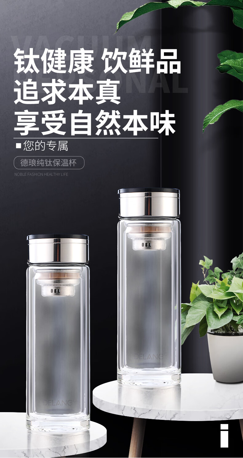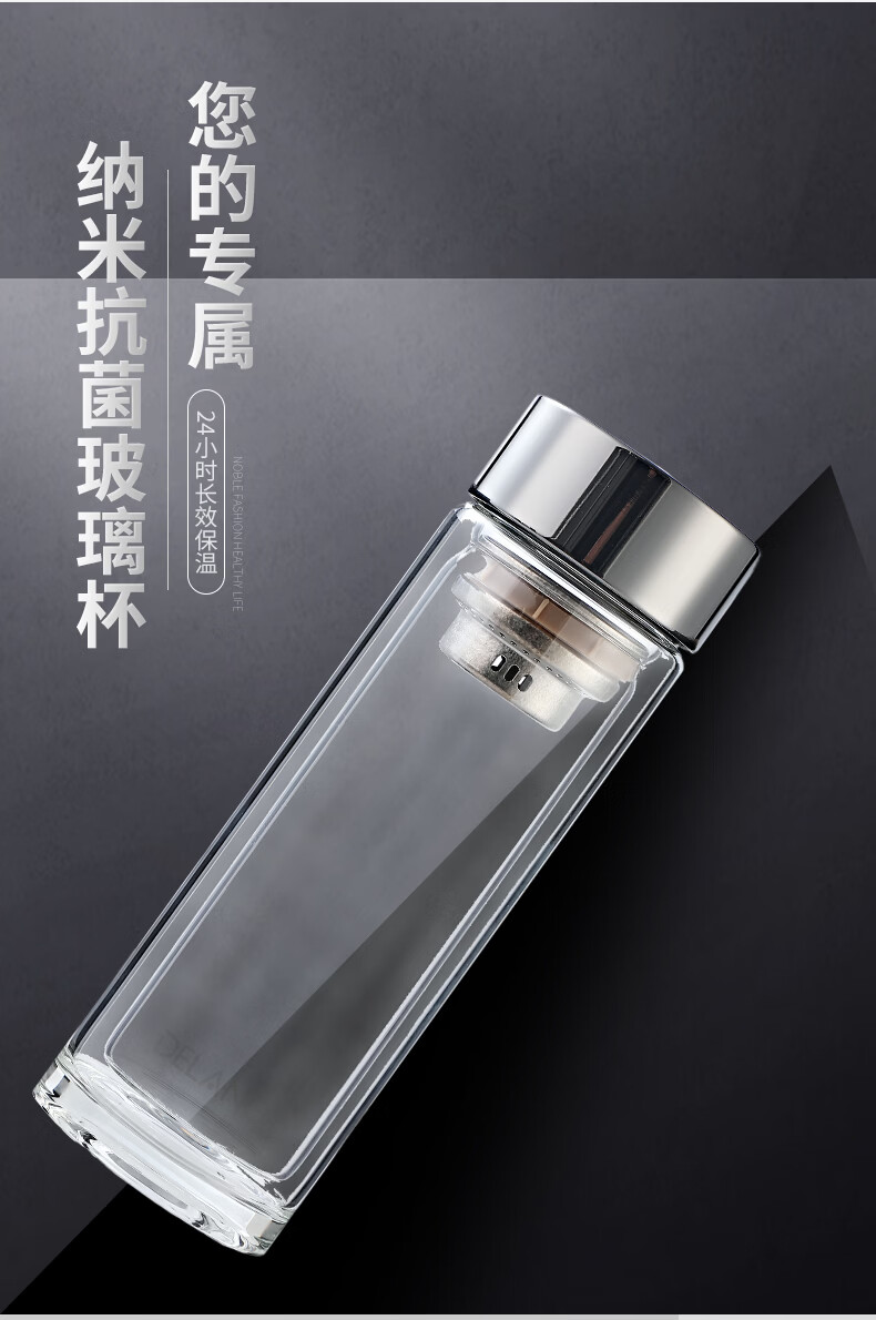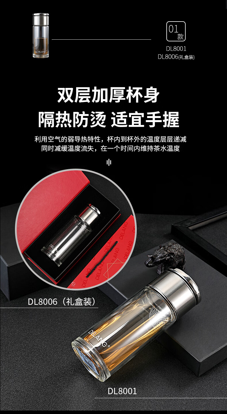 德琅(DELANG)德国品牌水杯双层玻璃杯商务办公玻璃杯 茶水分离杯8001-钢本色-独立茶仓