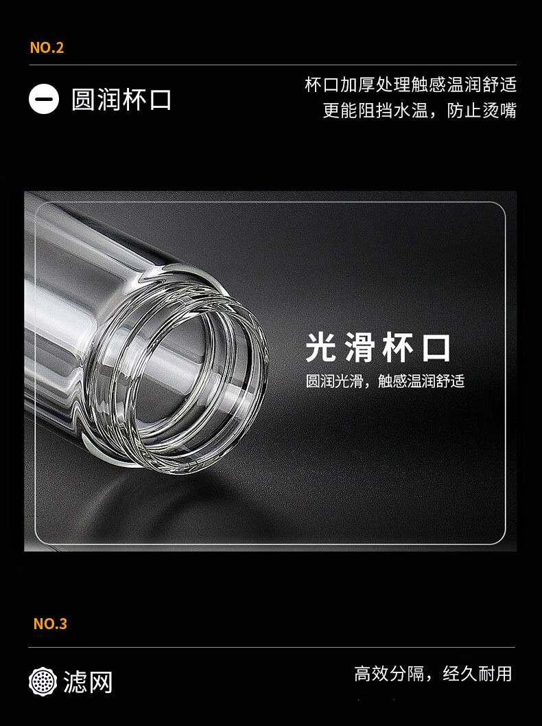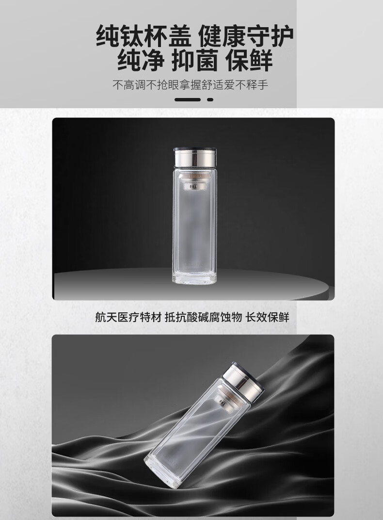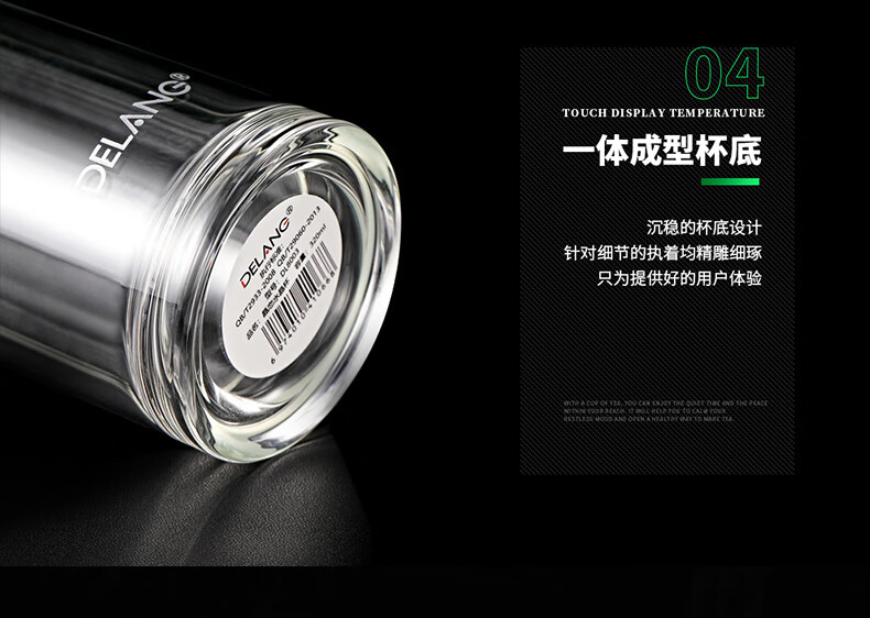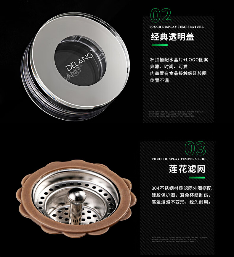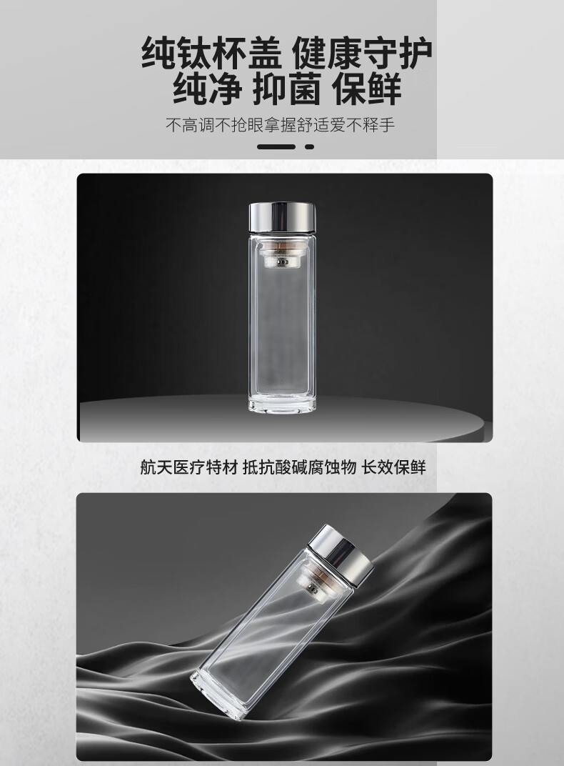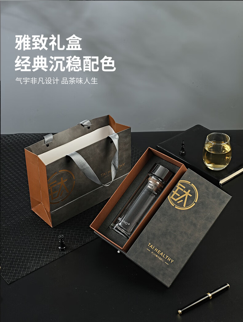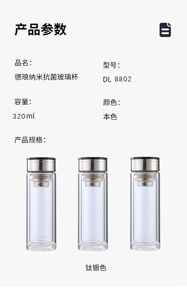 德琅(DELANG)德国品牌水杯双层玻璃杯商务办公玻璃杯 茶水分离杯8001-钢本色-独立茶仓