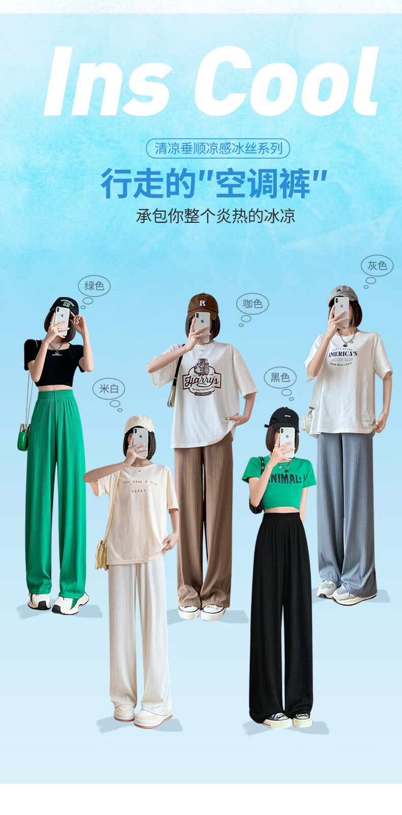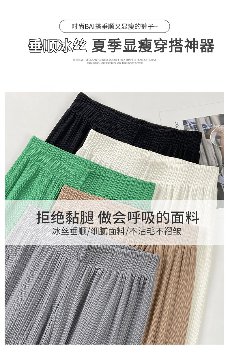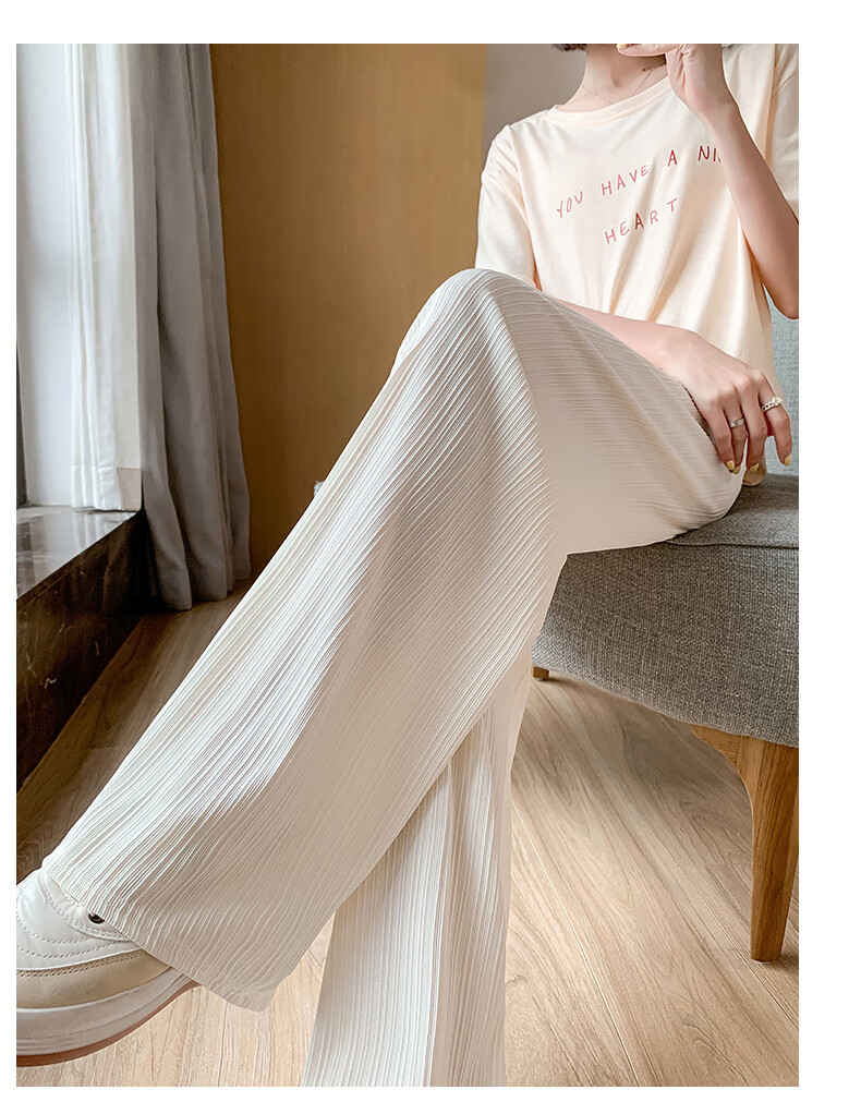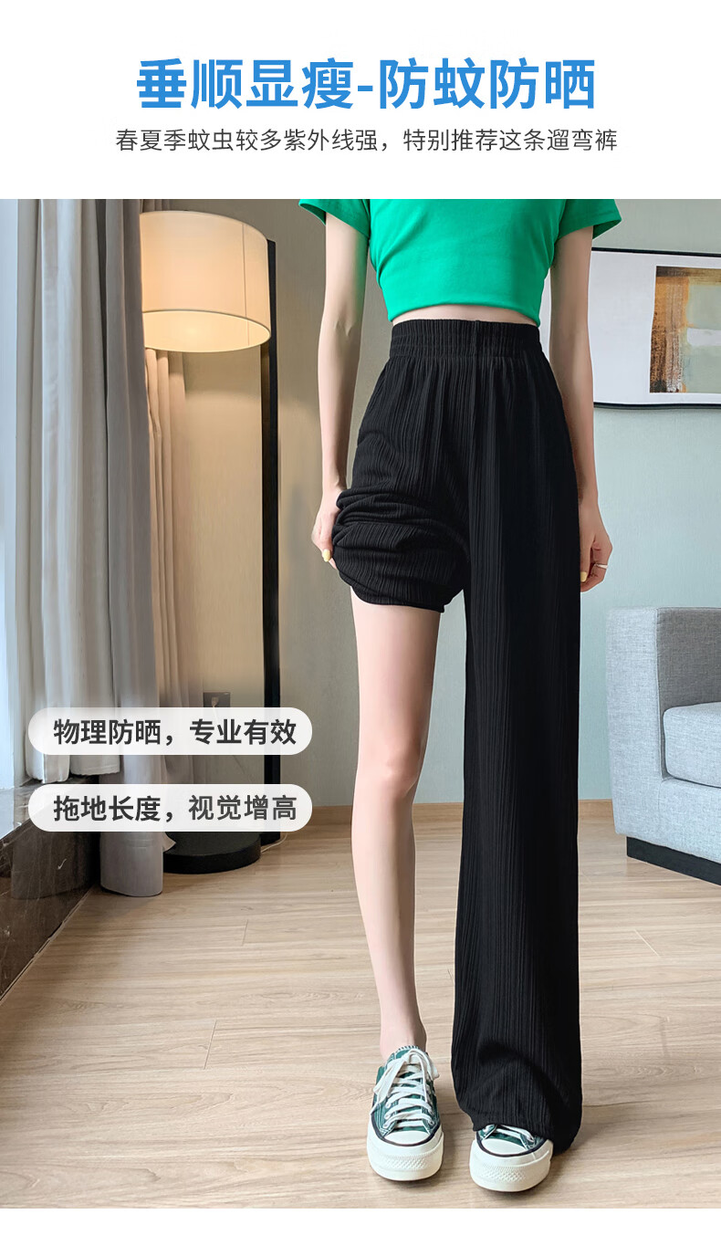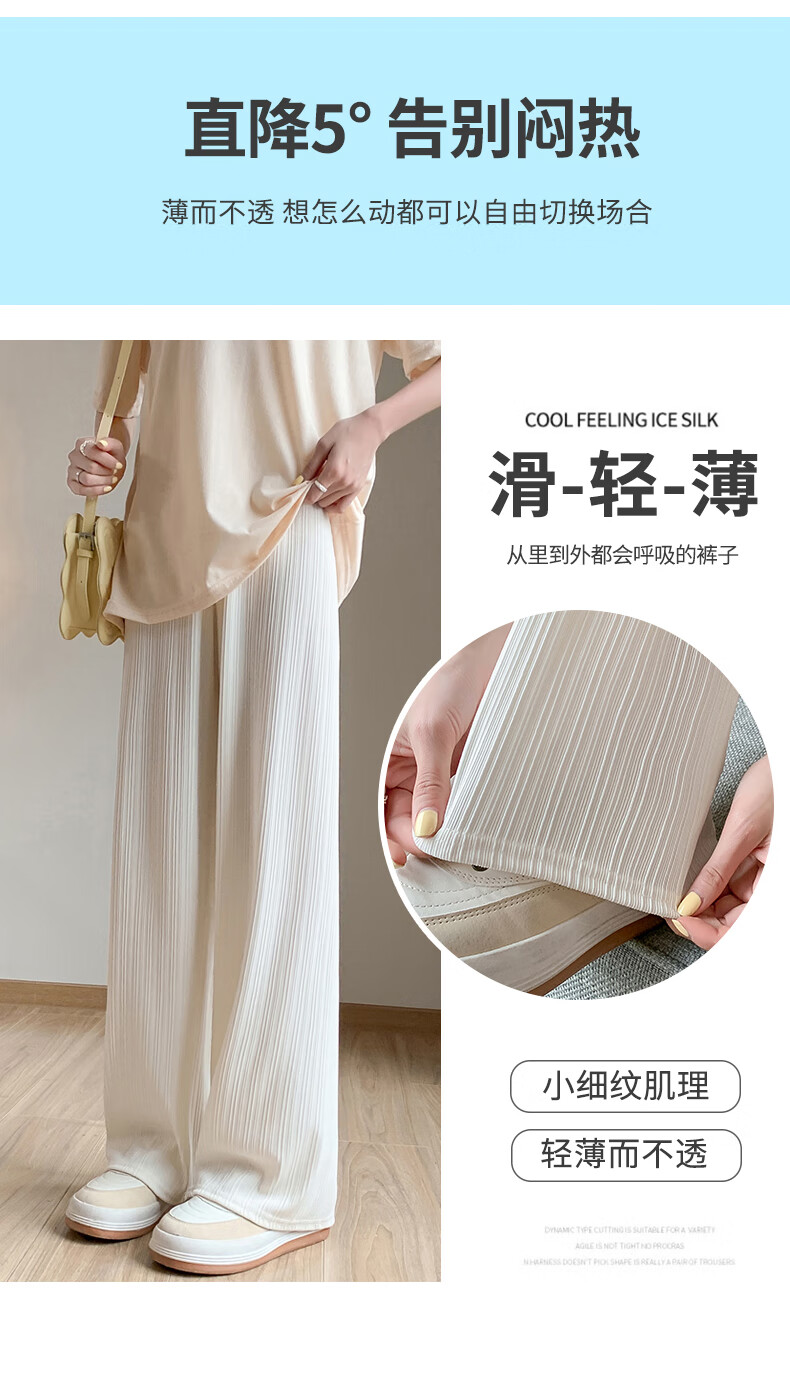 华婷露(Huatinglu)冰丝窄版阔腿裤女夏季薄款2025新款雪纺高腰直筒防晒仙女凉凉裤子 米白色 M (适合155-158cm,95-110斤)